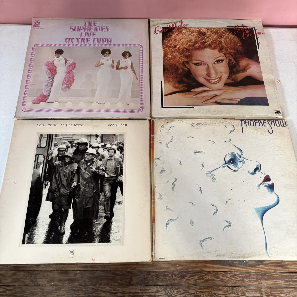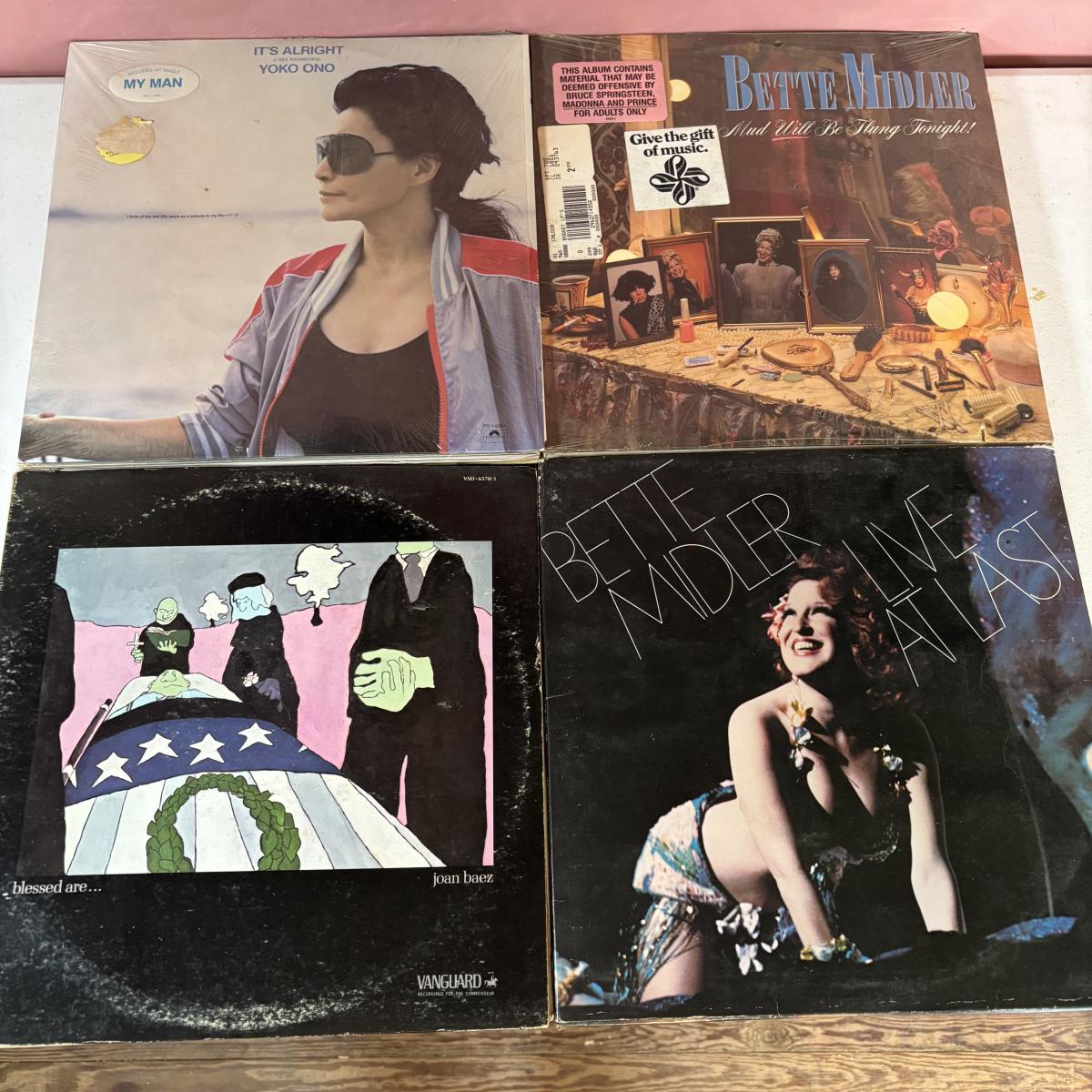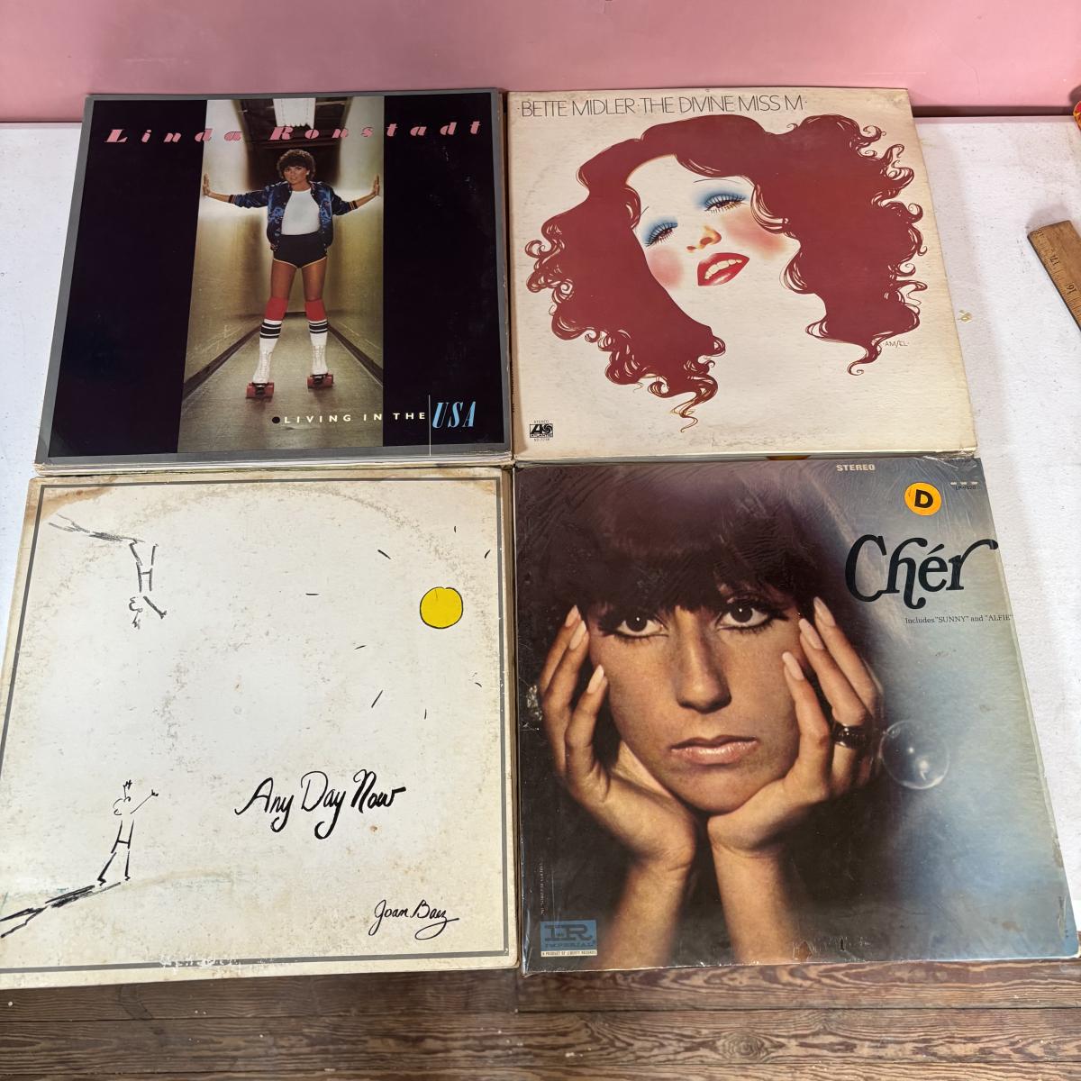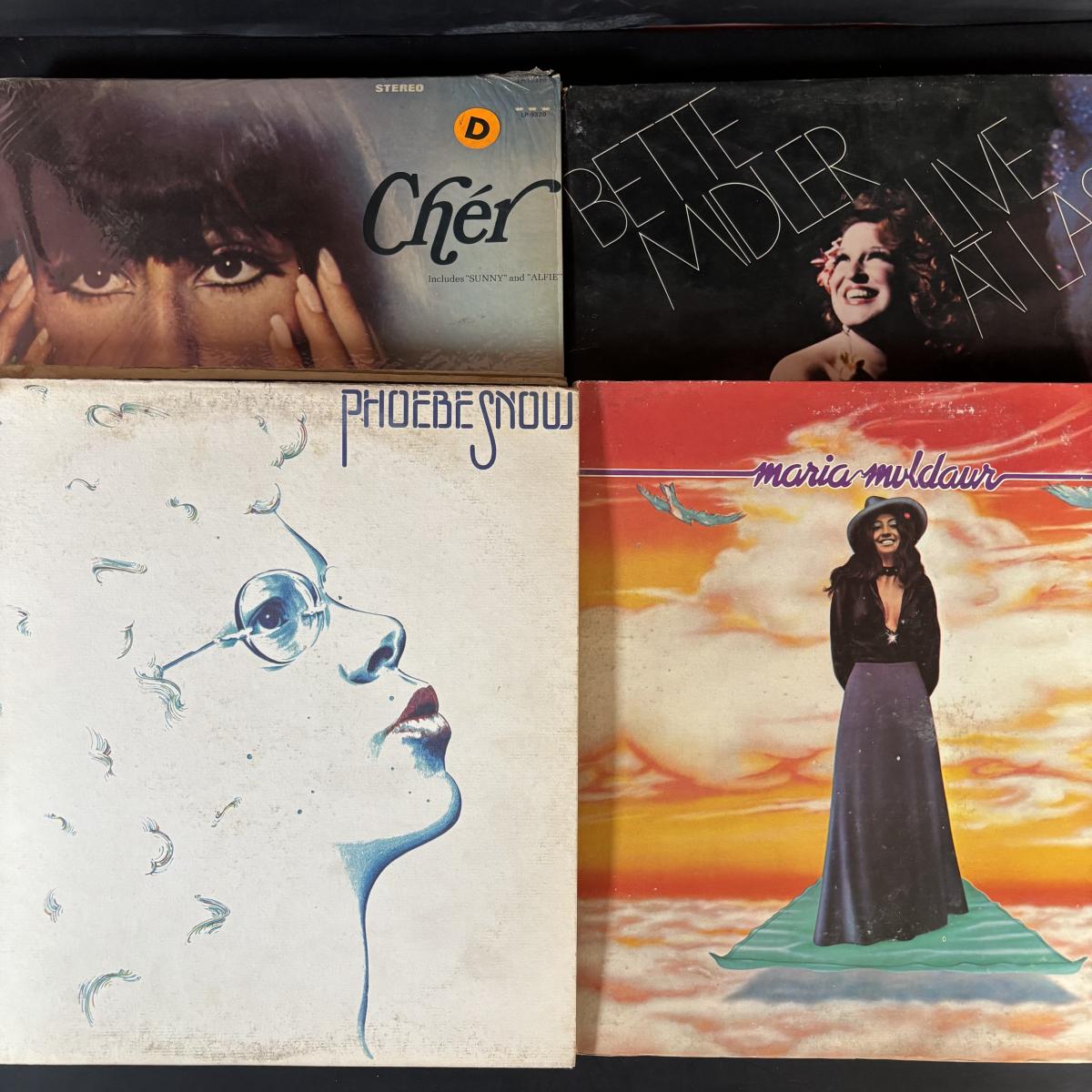 LOT 443: Ladies of Music & Entertainment LP Collection: Cher, Bette Midler, Aretha Franklin,Phobe Snow, Maria Muldaur, Yoko Ono, Linda Ronstadt, The Supremes, Judy Collins. Roberta Flack & Joan Baez