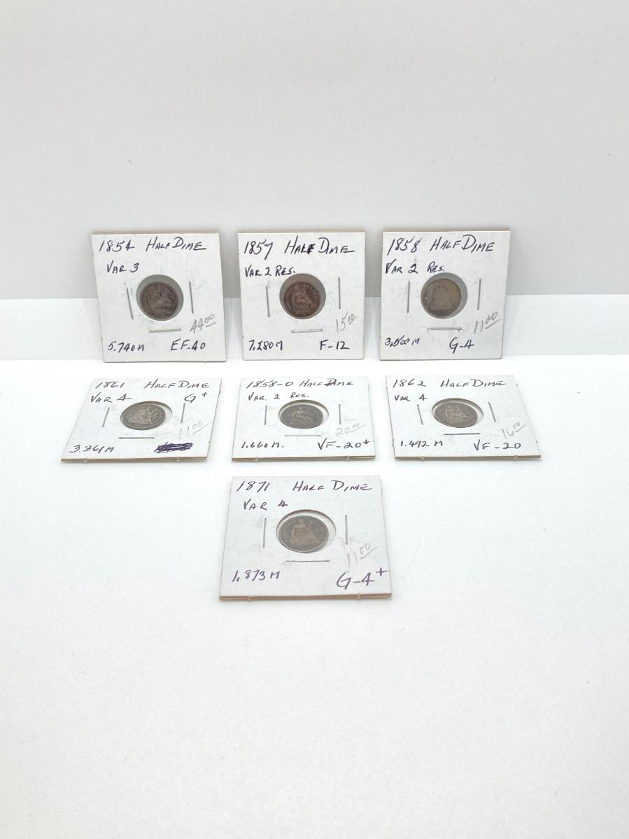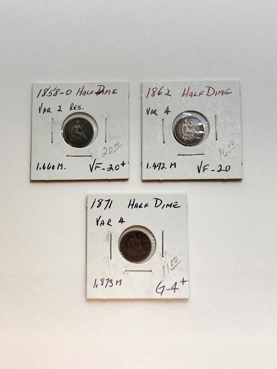 LOT 475: 1854 to 1871 U.S. Half Dime Silver Coins