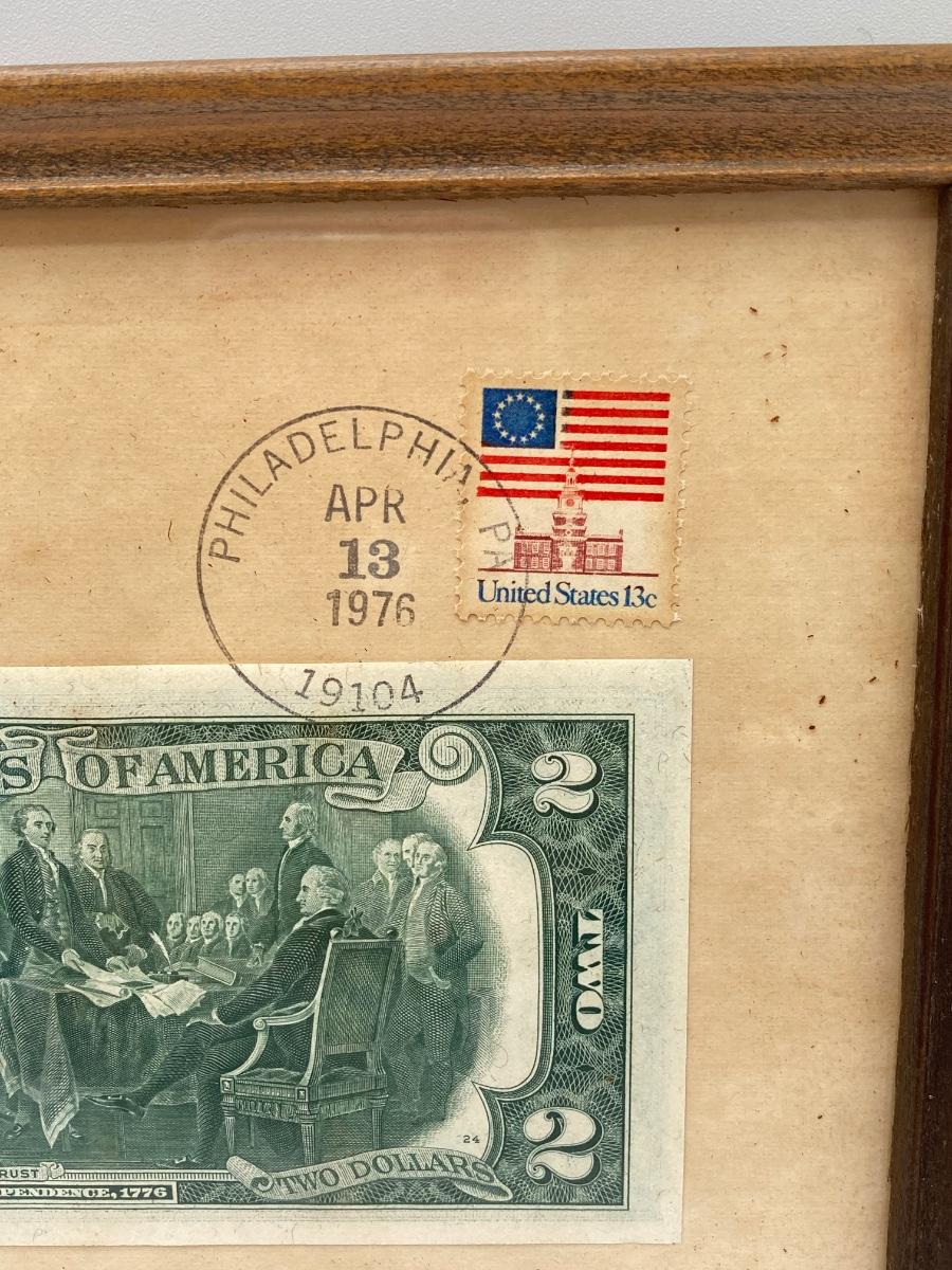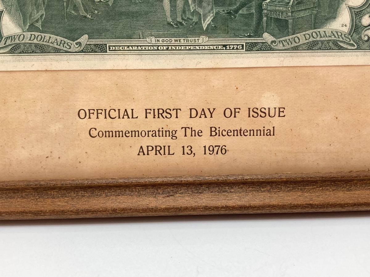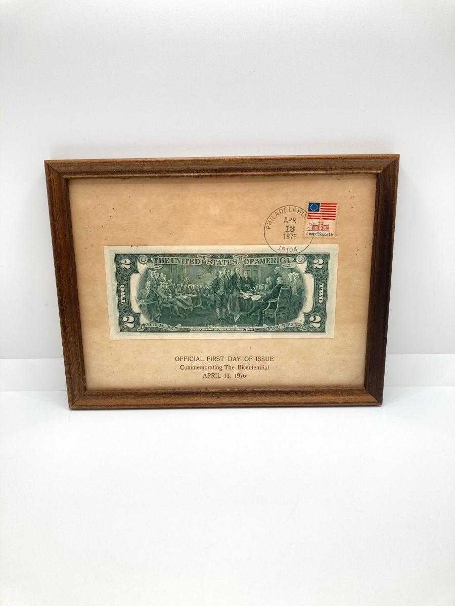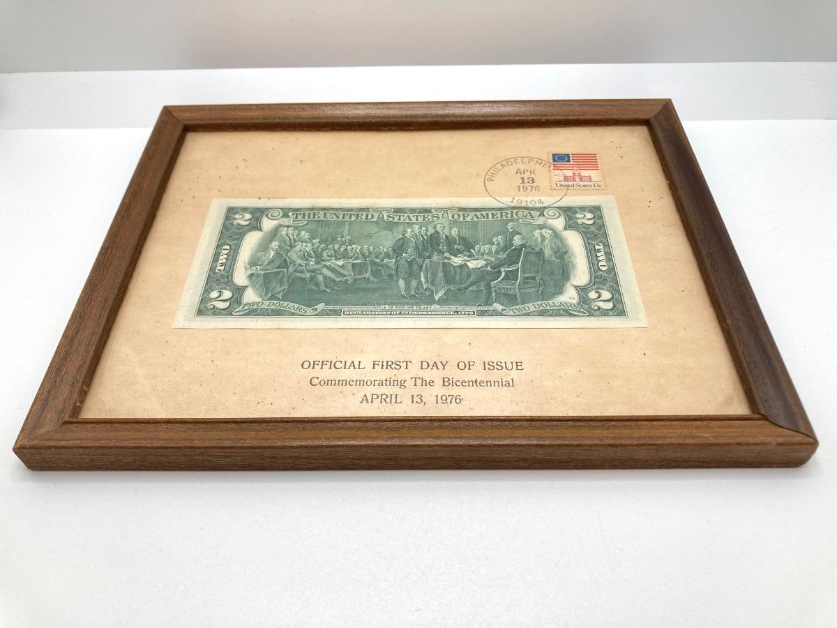 LOT 477: First Day of Issue Commemorating The Bicentennial April 13, 1976 Two Dollar Bill, U.S. Eisenhower One Dollar Coins and Commemorative U.S. Quarters