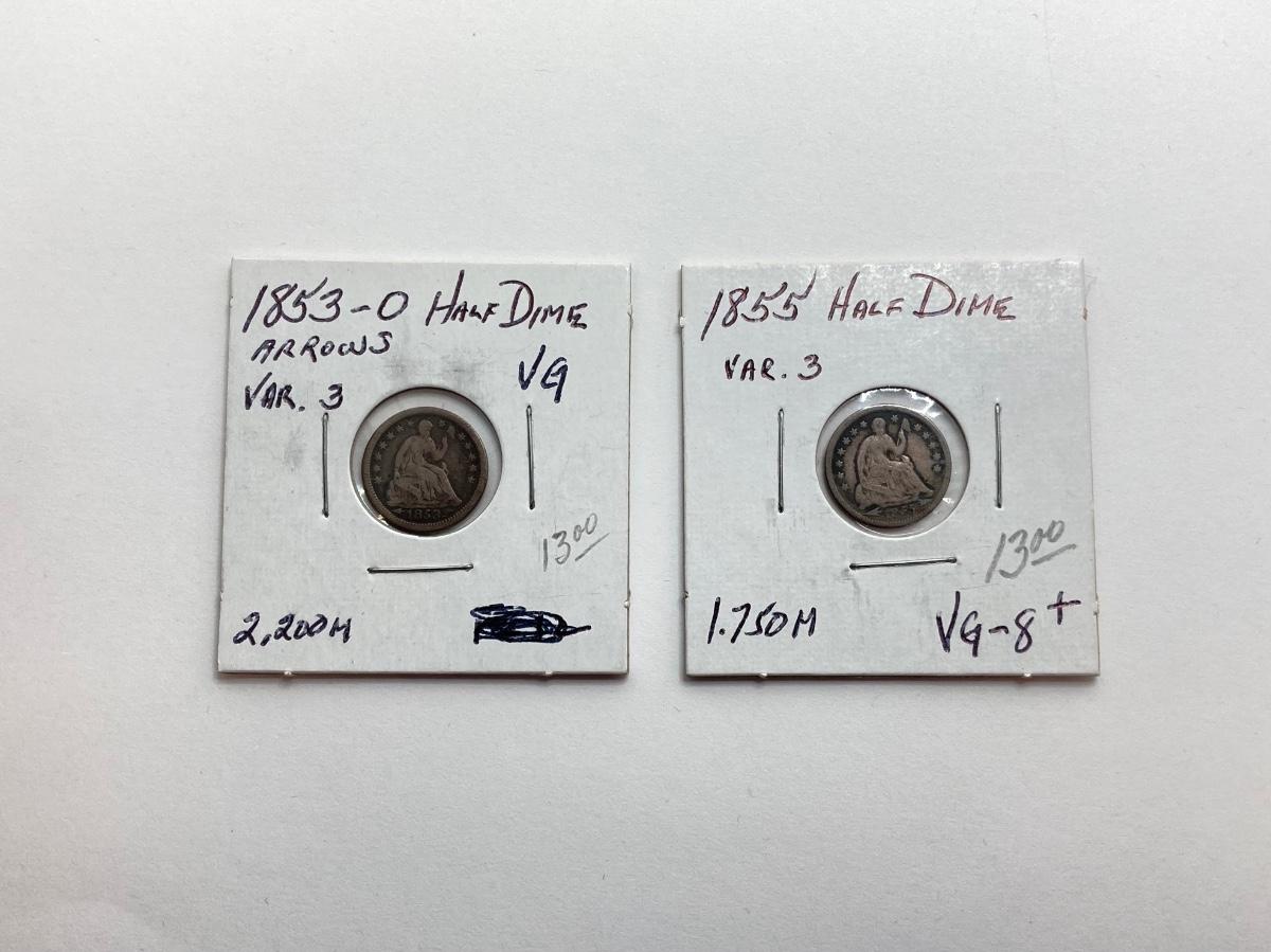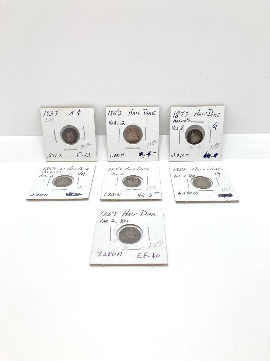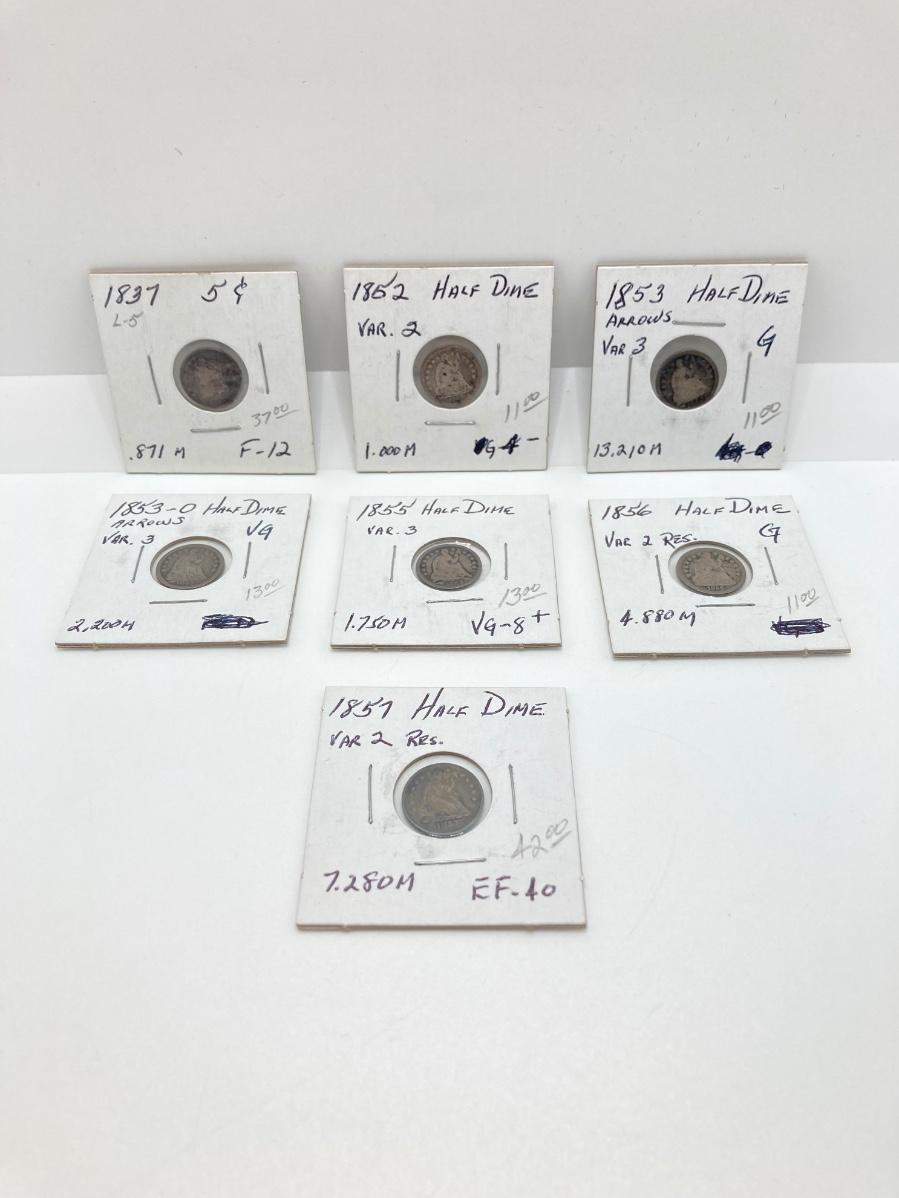LOT 478: Collection of Vintage 1837 to 1857 U.S. Half Dime Coins