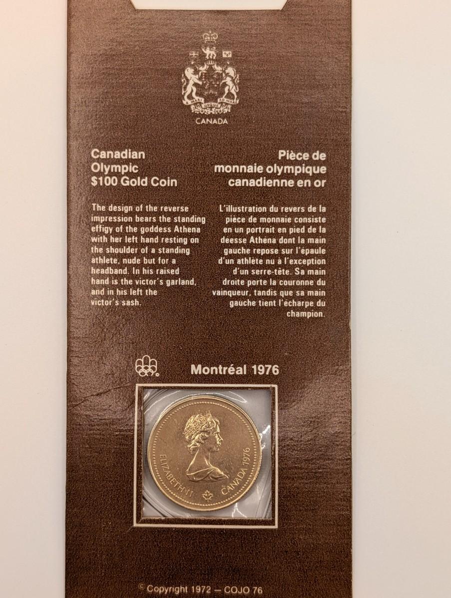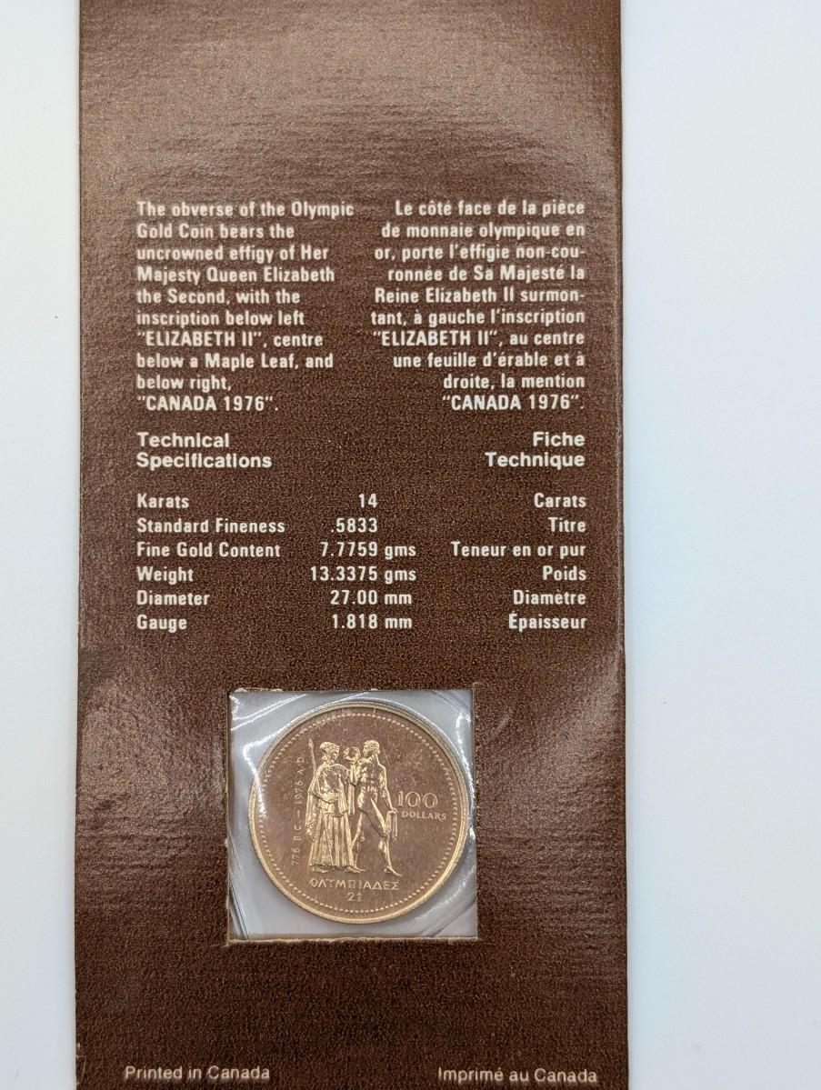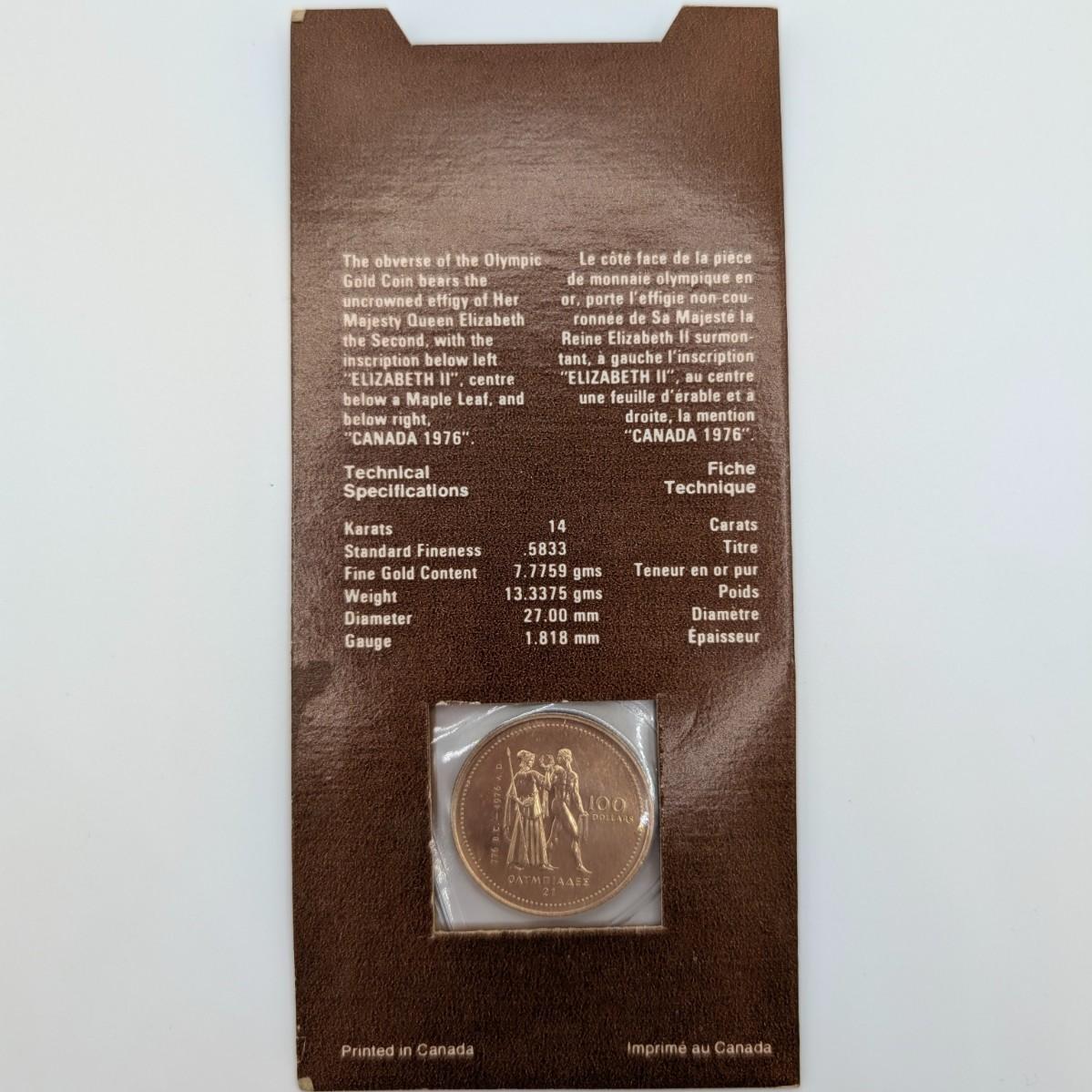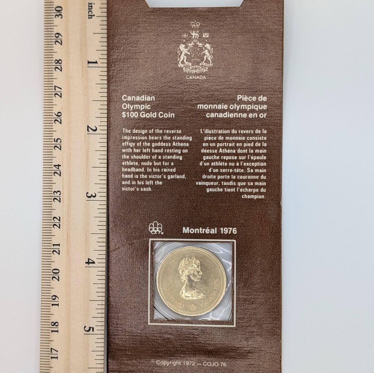 LOT: 480J Montreal 1976 Canadian Olympic 14K Gold, $100.00 Coin, (13.3g)