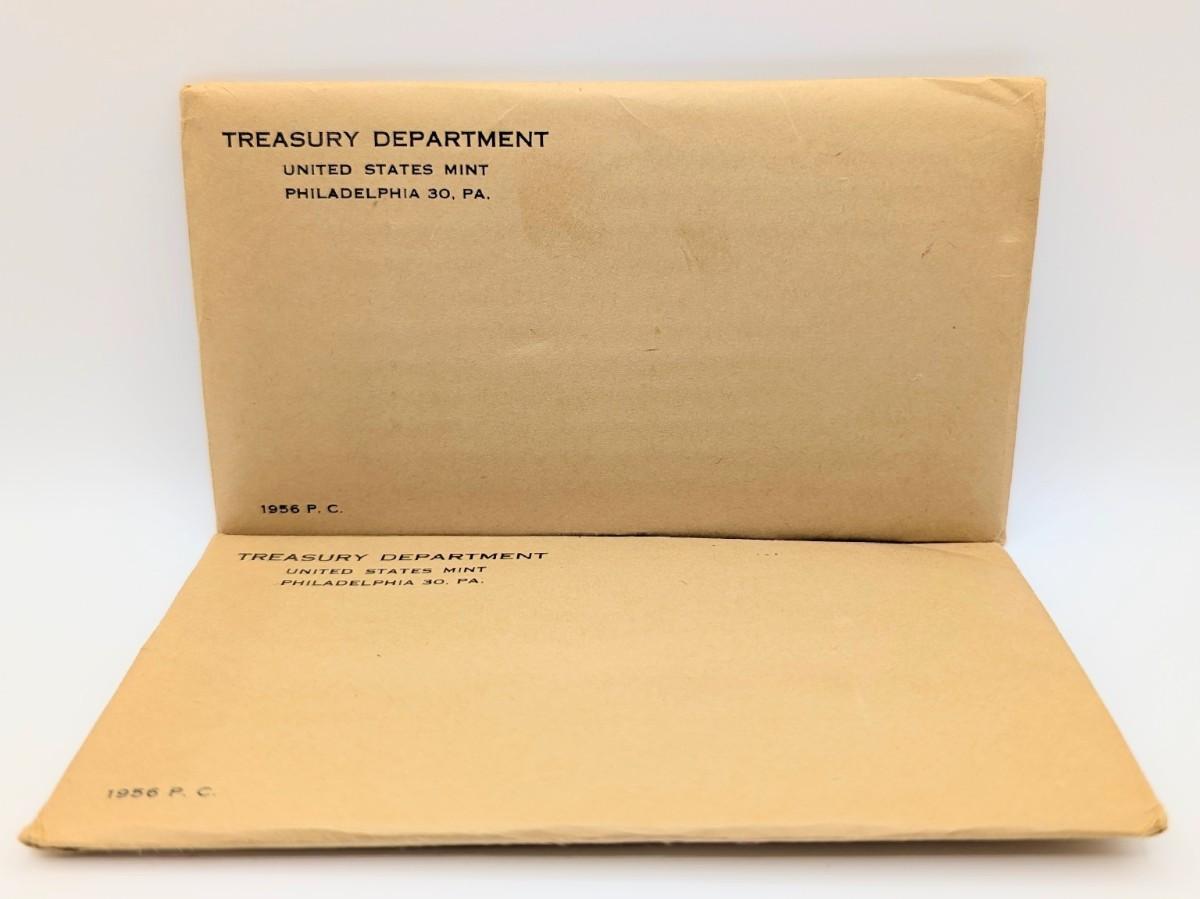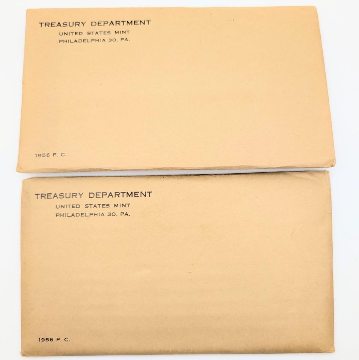 LOT 481J Two 1956 United States Mint, Philadelphia, PA Proof Sets, In Original Flat Pack, Sealed Envelopes