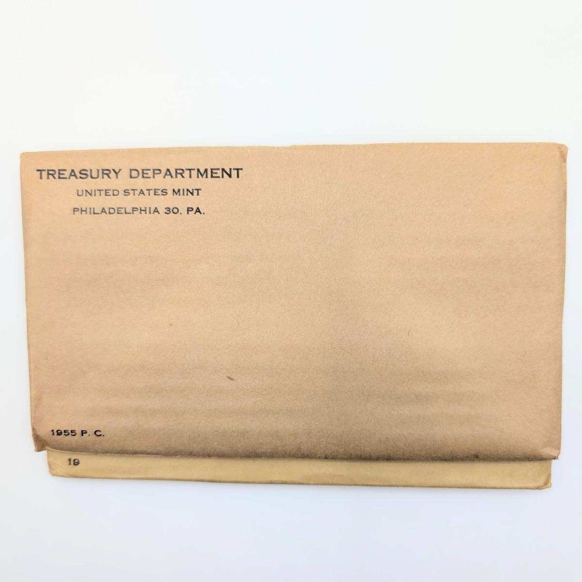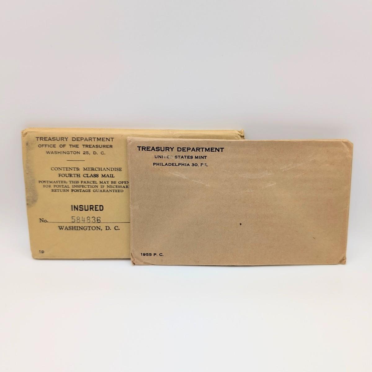 LOT 484J: Two 1955 United States Mint, Philadelphia, PA, Proof Sets, In original Flat Pack, Sealed Envelopes