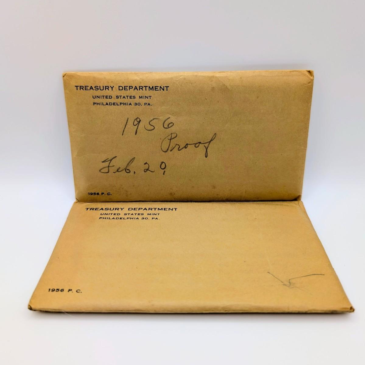 LOT 485J: Two 1956 United States Mint, Philadelphia, PA, Proof Sets, In original Flat Pack Sealed Envelopes