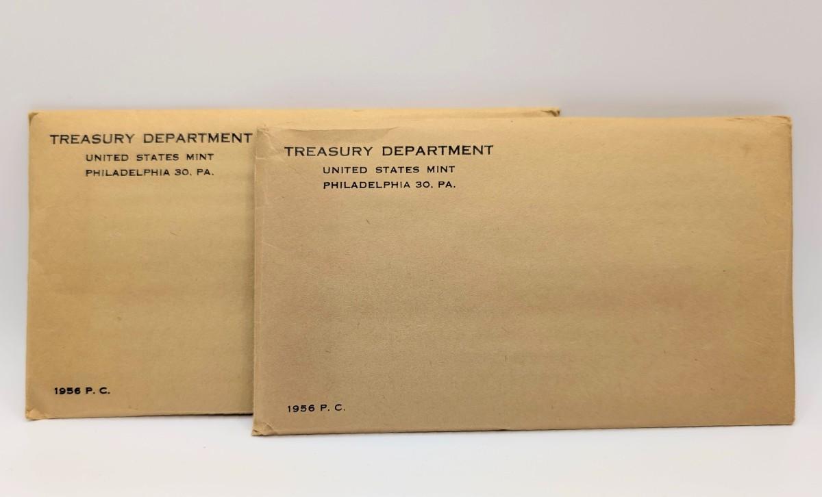 LOT 488J: Two 1956 United States Mint, Philadelphia, PA, In Original Flat Pack Sealed Envelopes