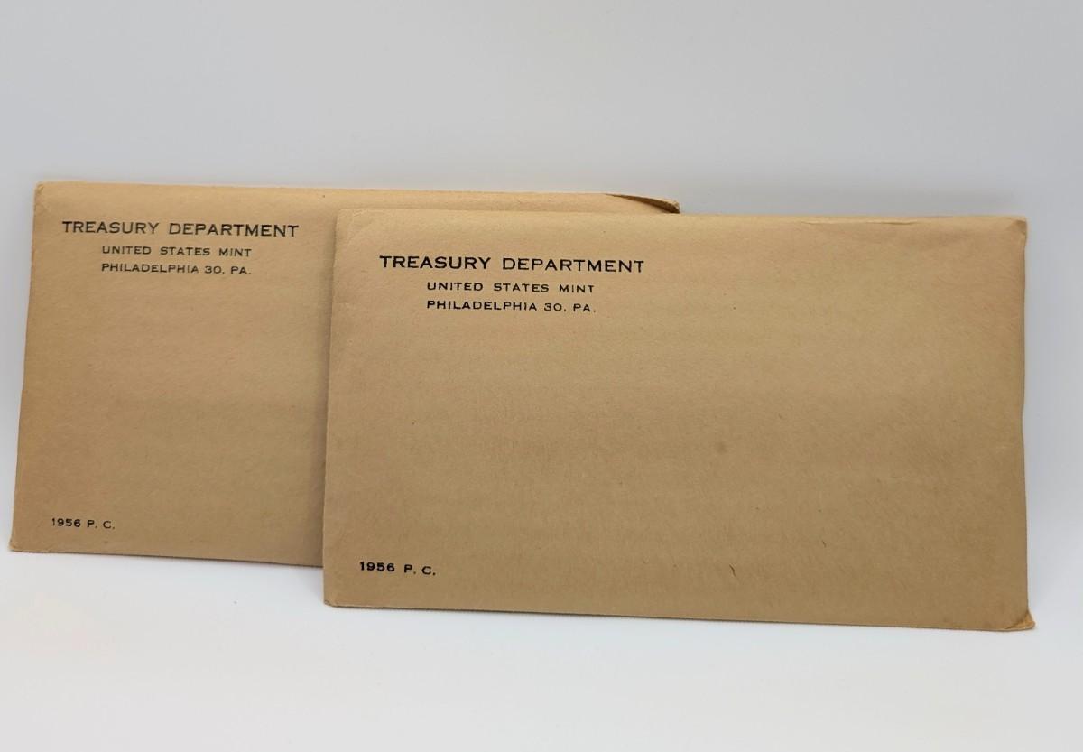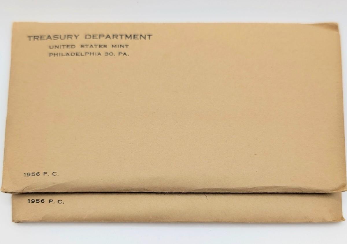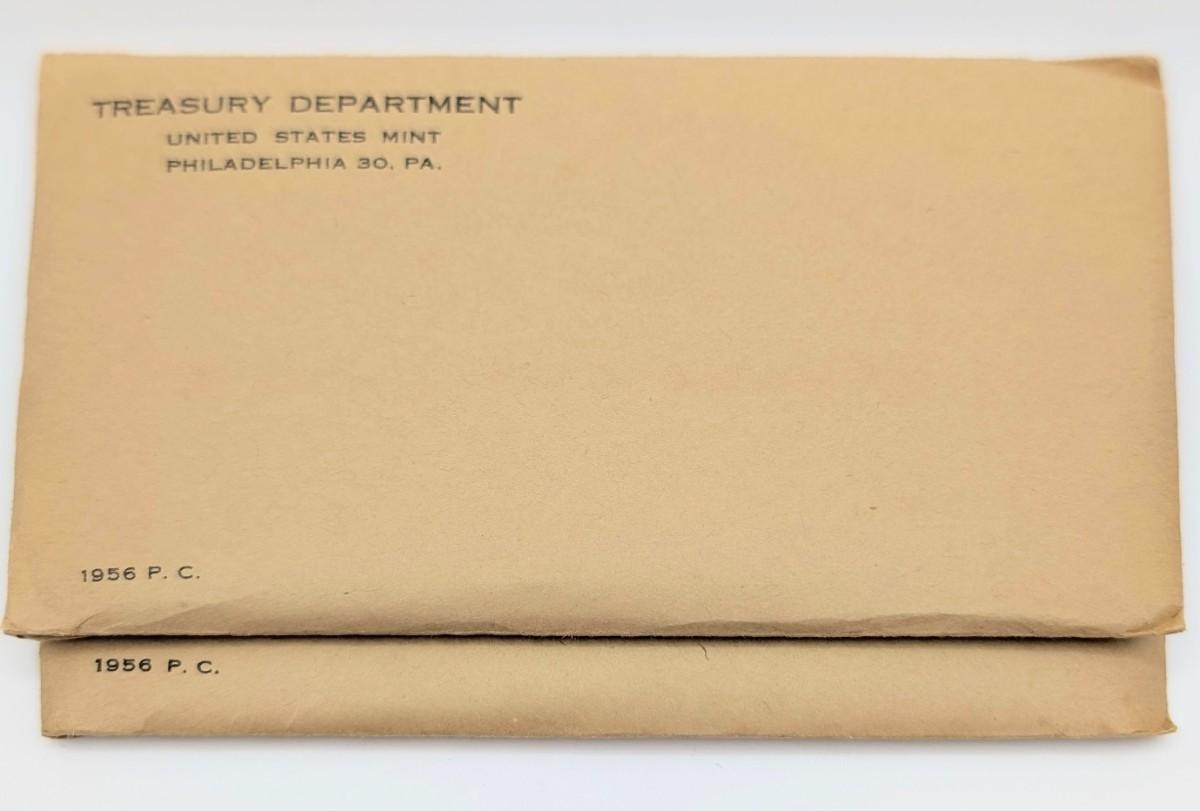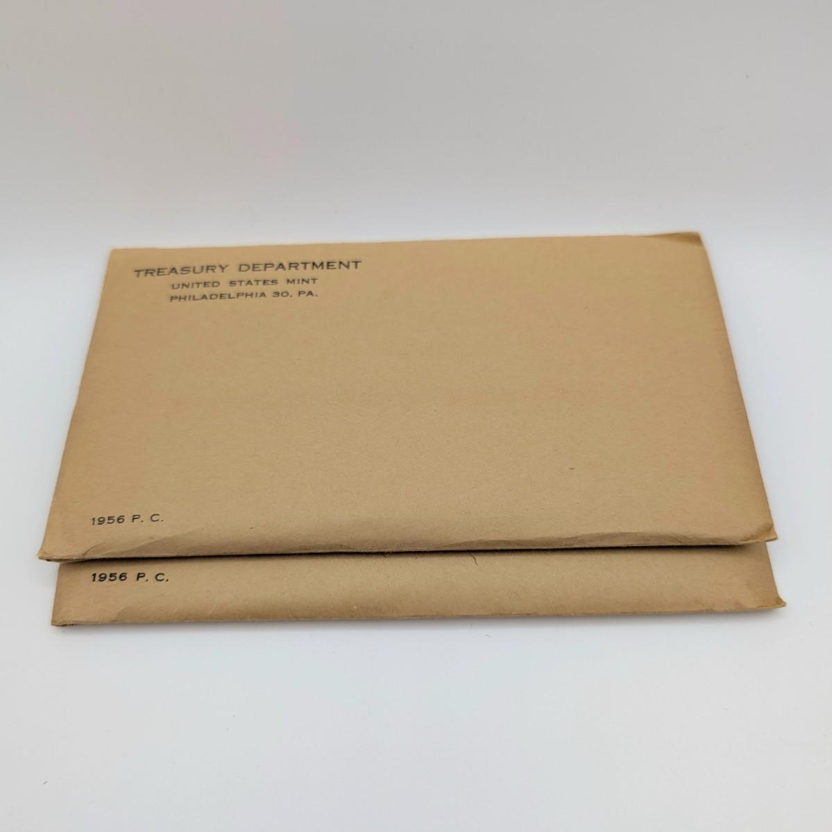 LOT 489J: Two 1956 United States Mint, Philadelphia, PA, Proof Sets, In Original Flat Pack Sealed Envelopes