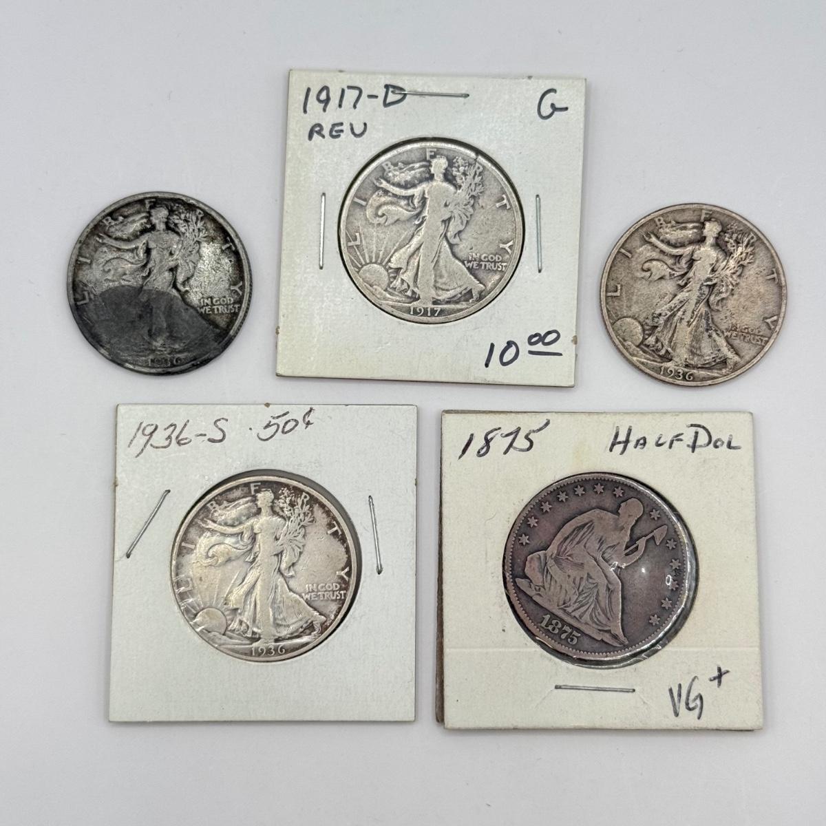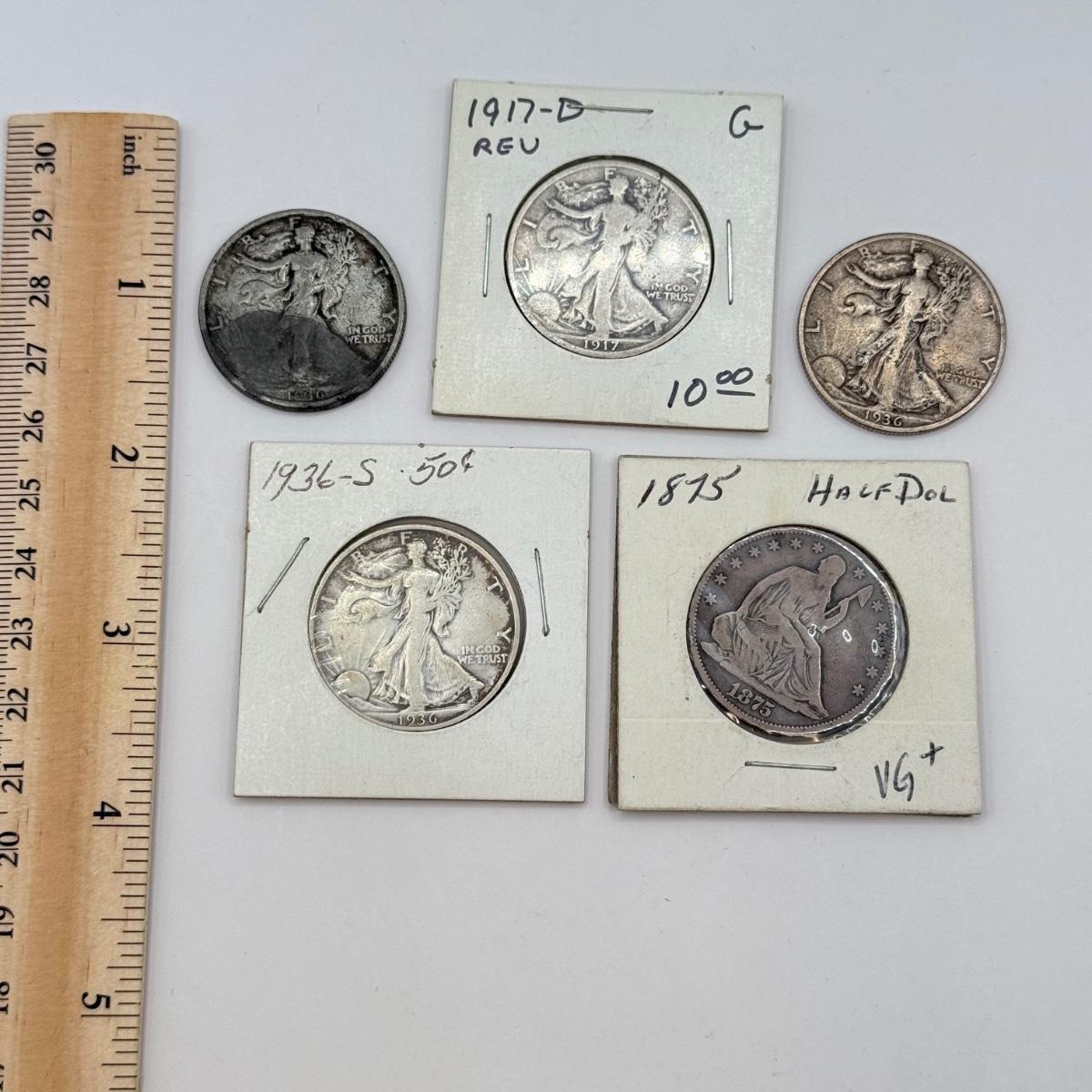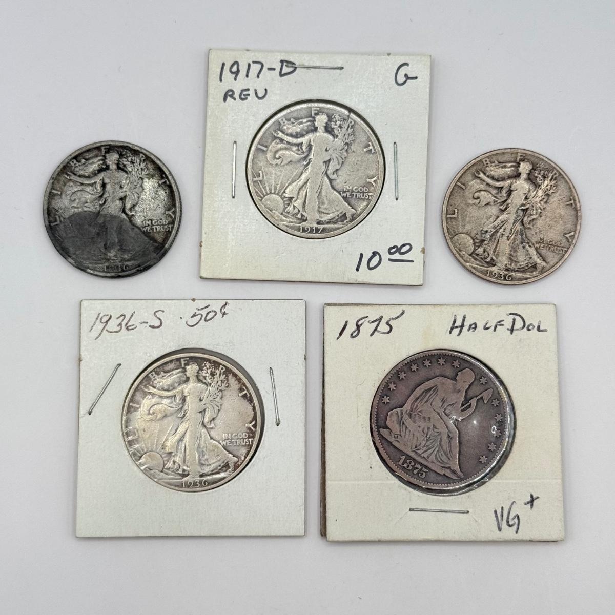 LOT 502J: US Seated Liberty Half Dollar Coins: 1936-S, 1917-D & 1875