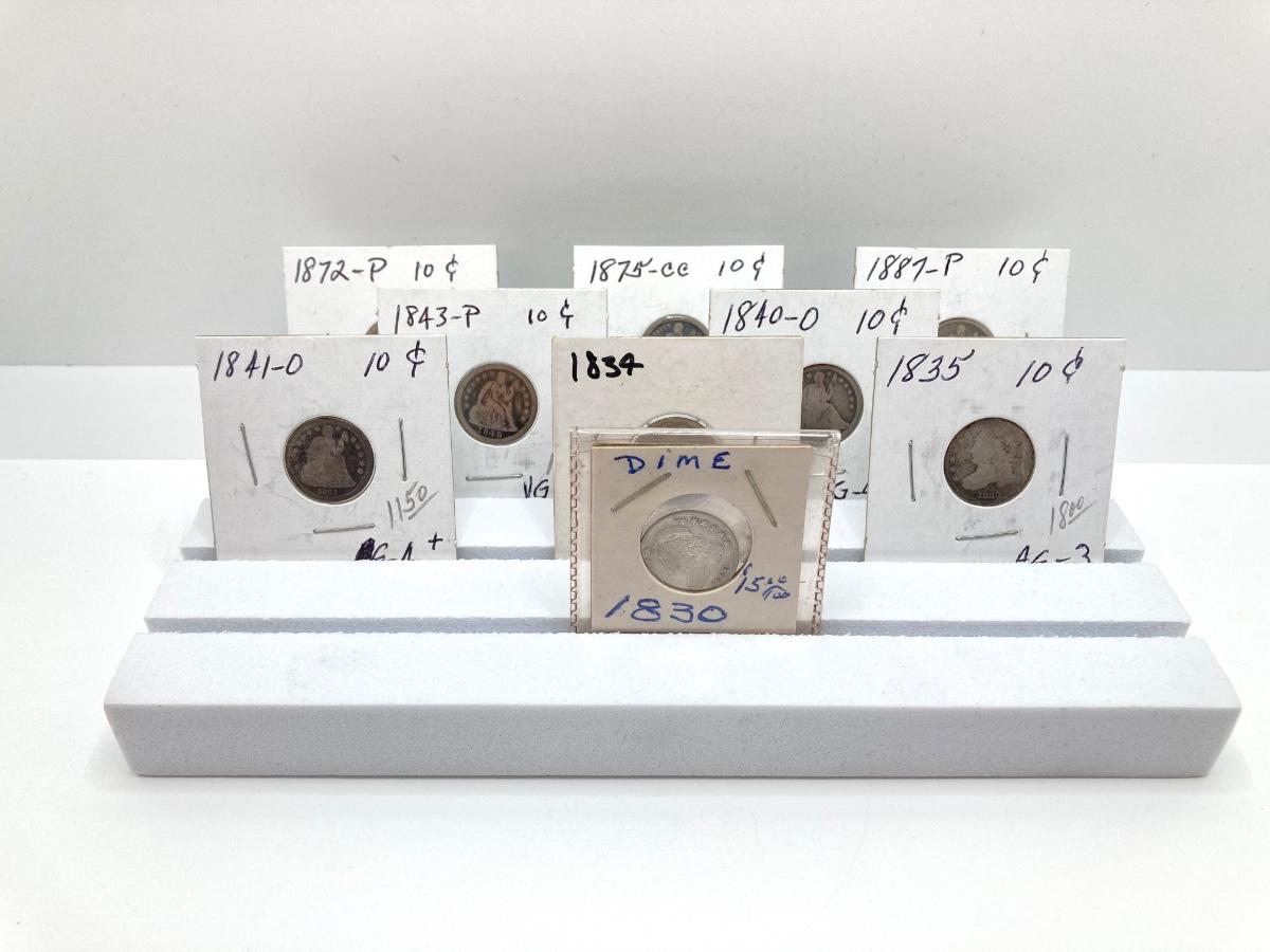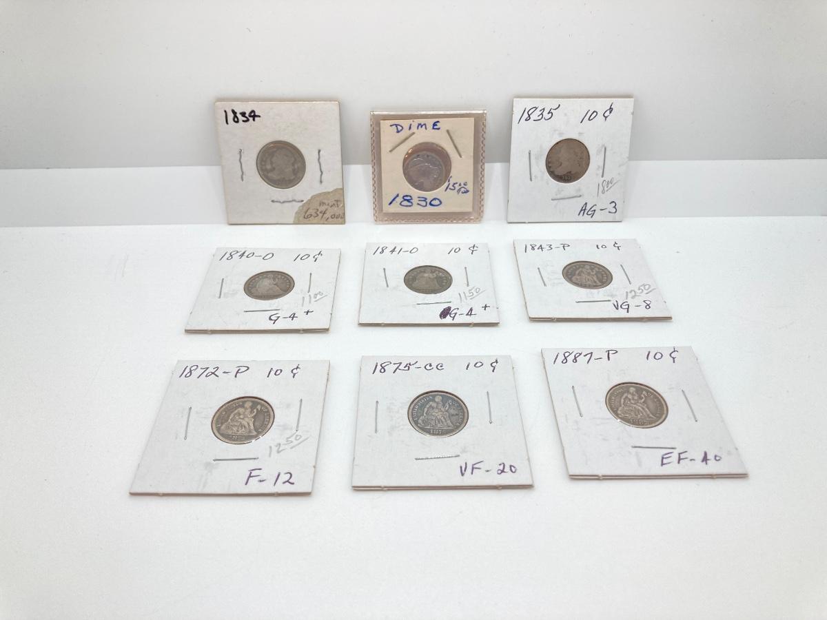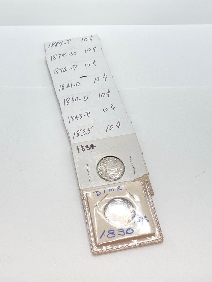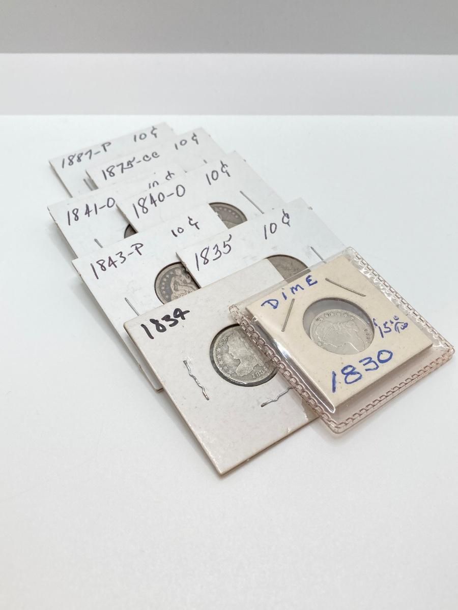 LOT 525: Antique U.S. Silver Dimes Dated from 1830 to 1887