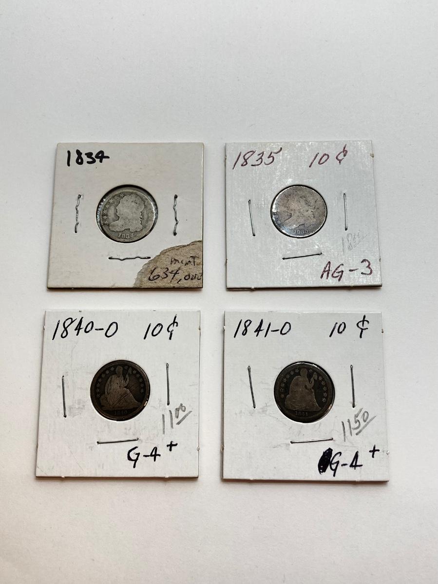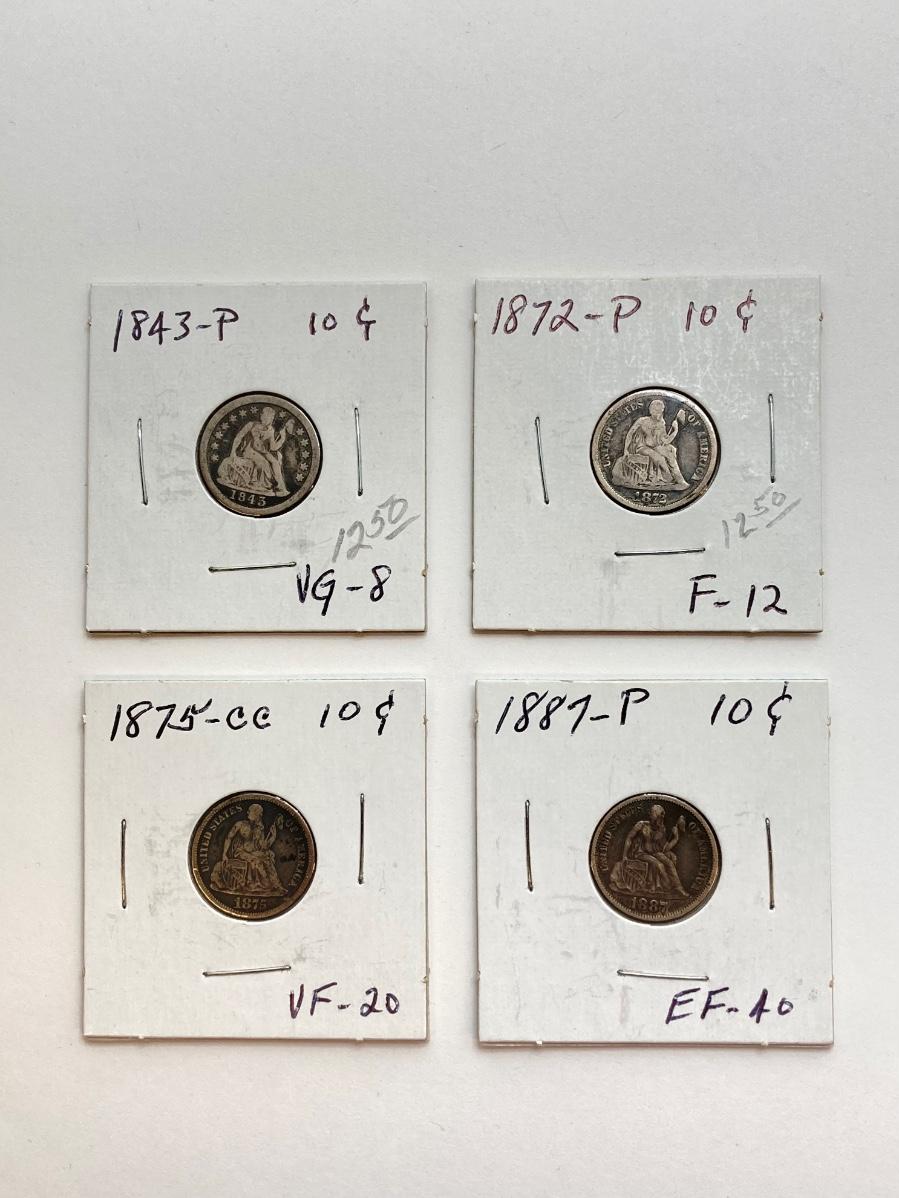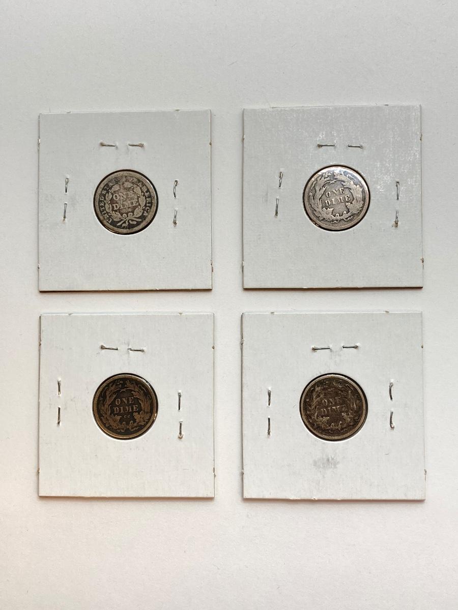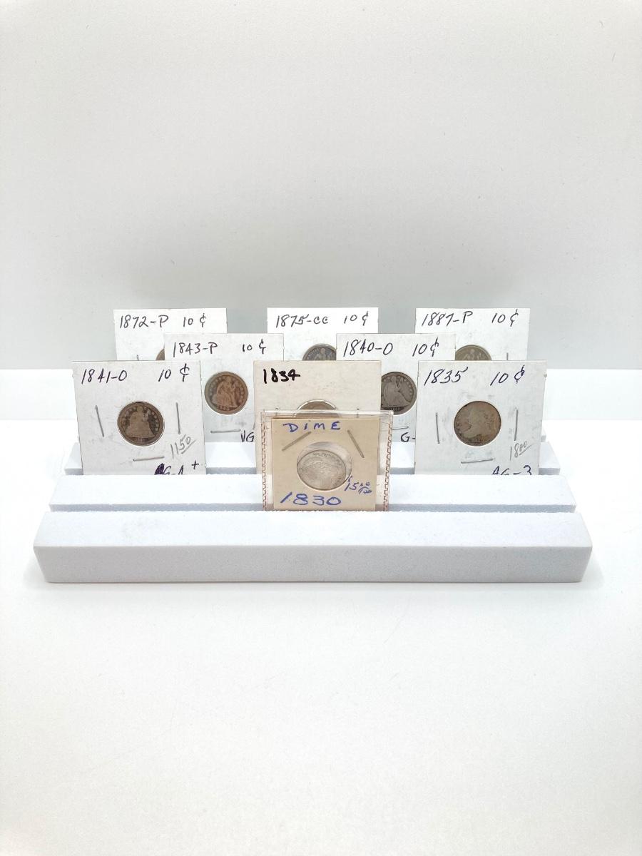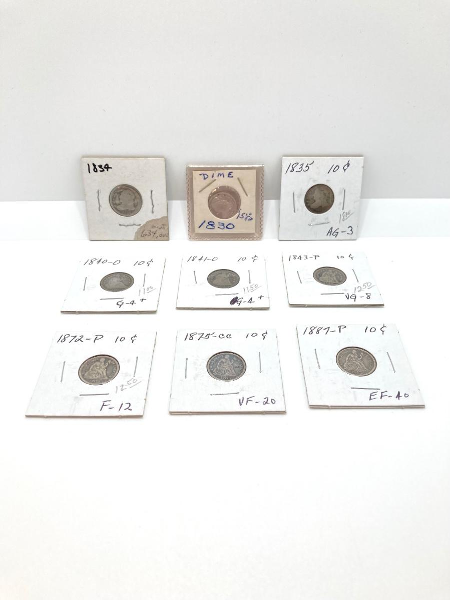 LOT 525: Antique U.S. Silver Dimes Dated from 1830 to 1887