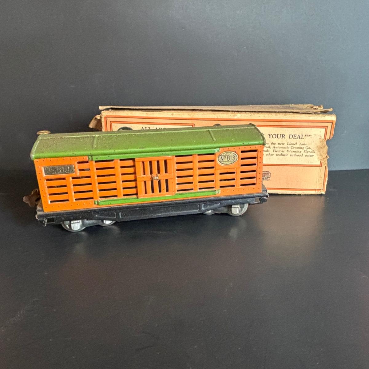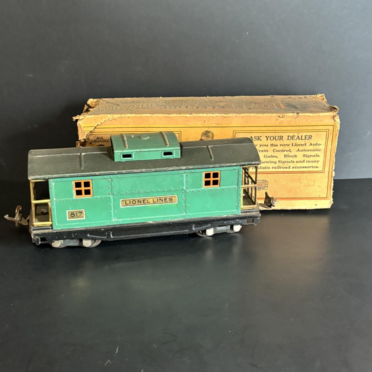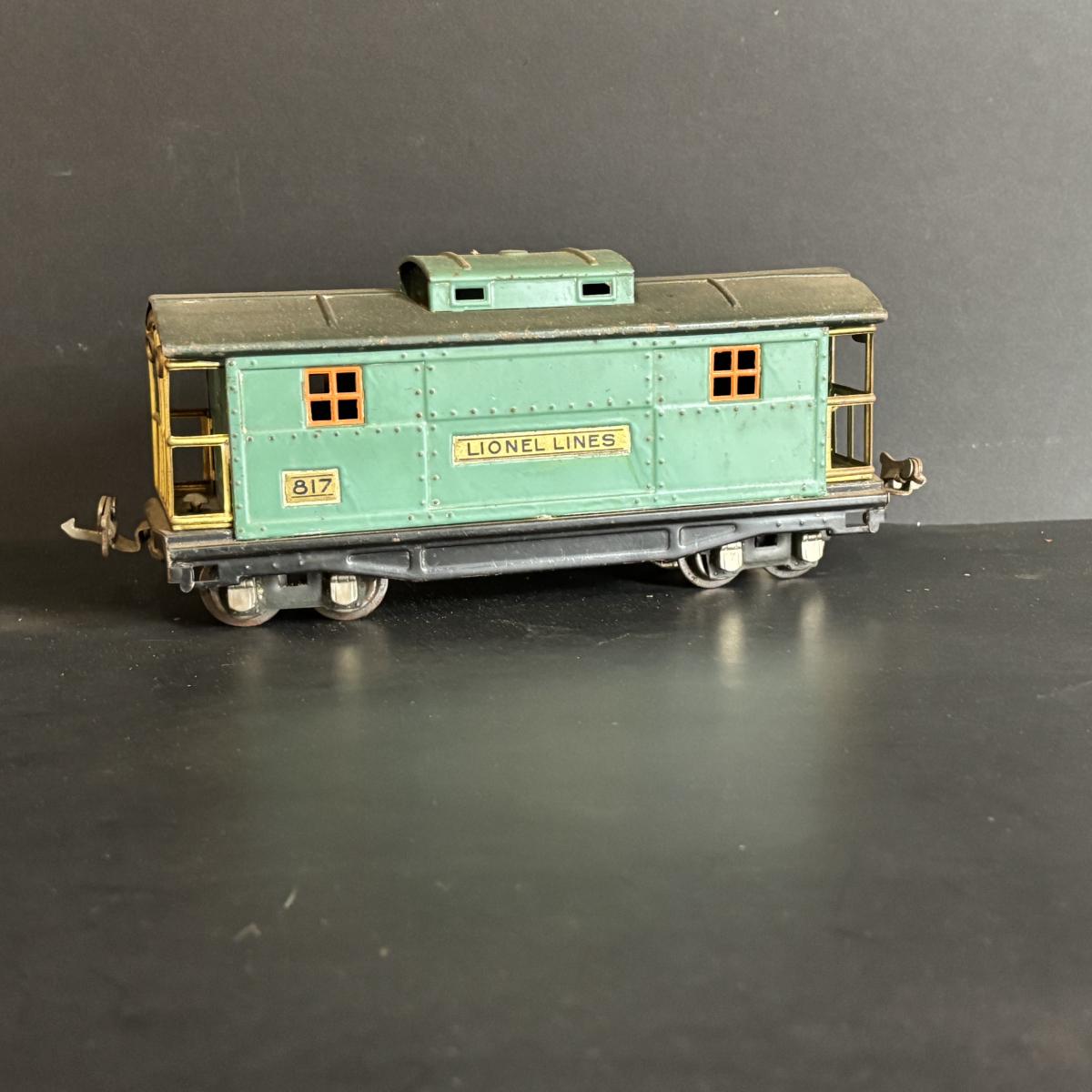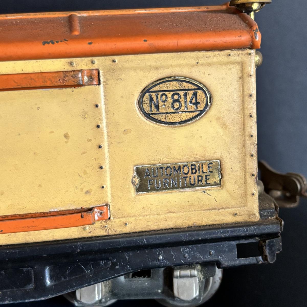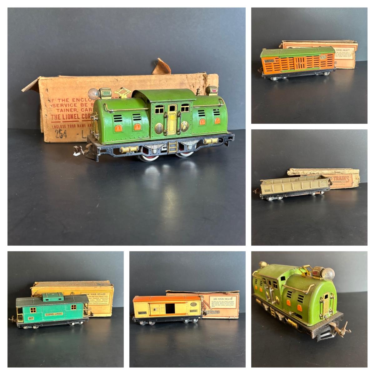 LOT 639: Antique HO Lionel Lines Train Cars & Engine: Engine No 254Gondola Car No. 812, Cattle Car No. 813, Automobile Furniture No. 814, Caboose No.817