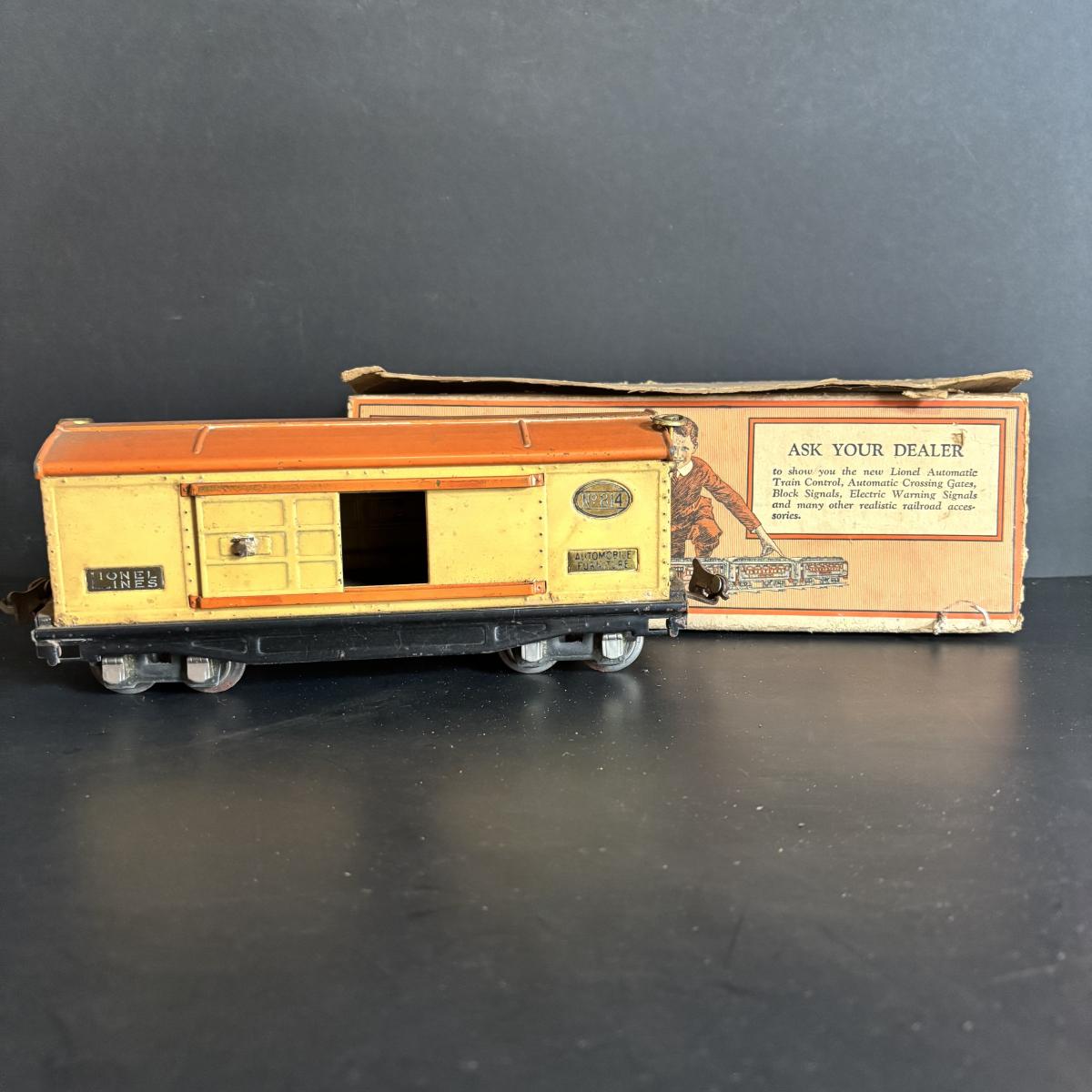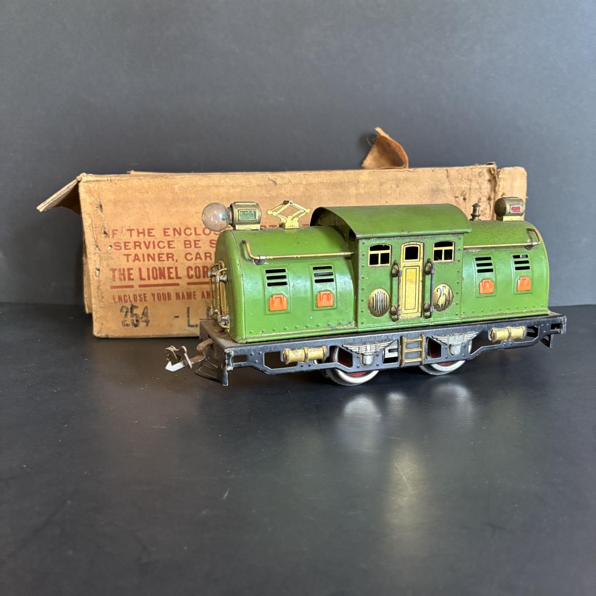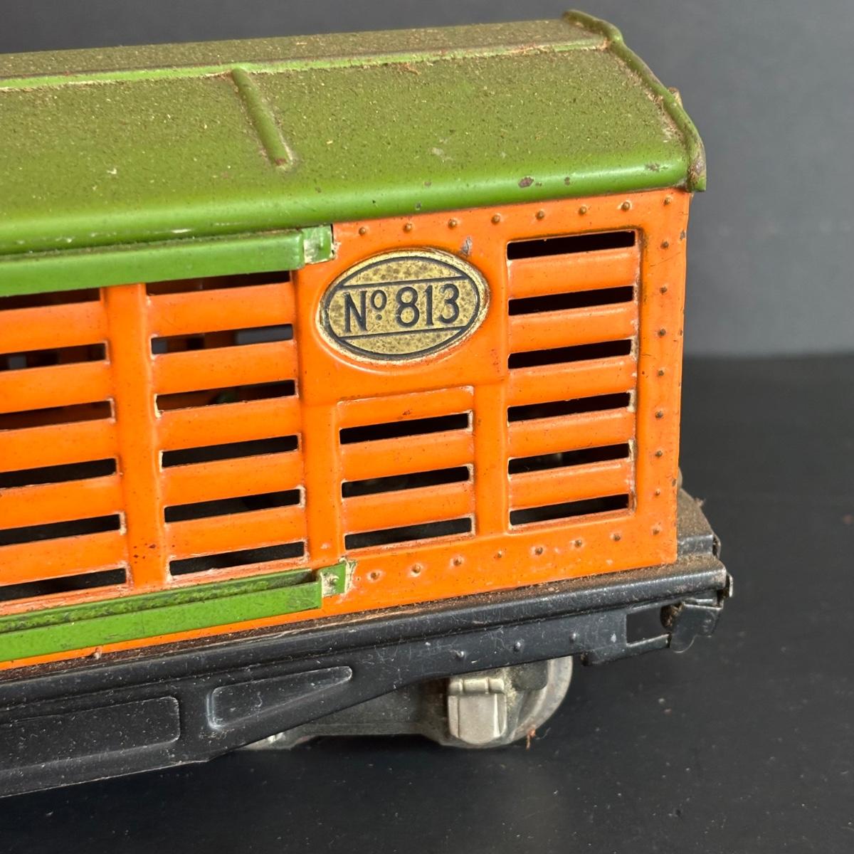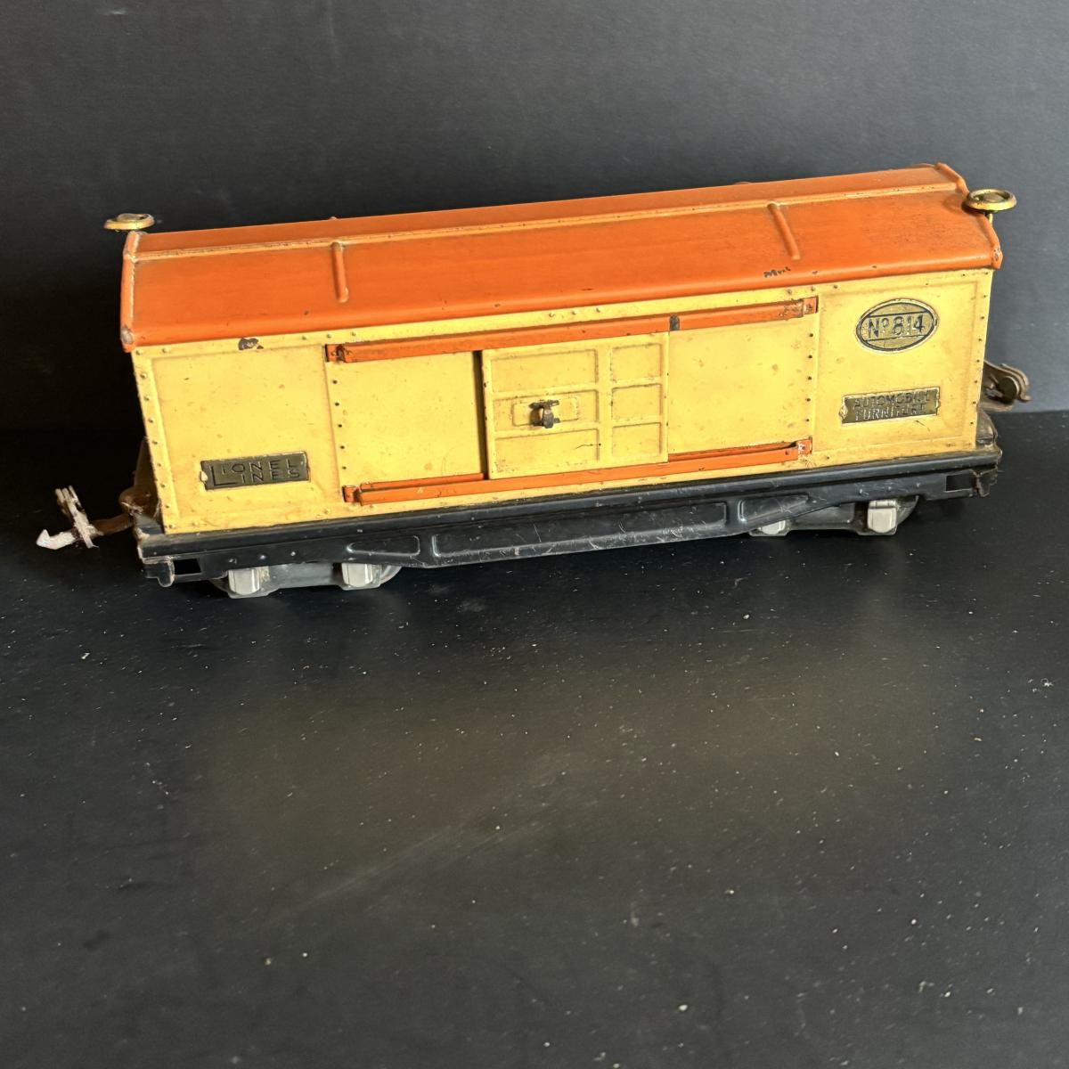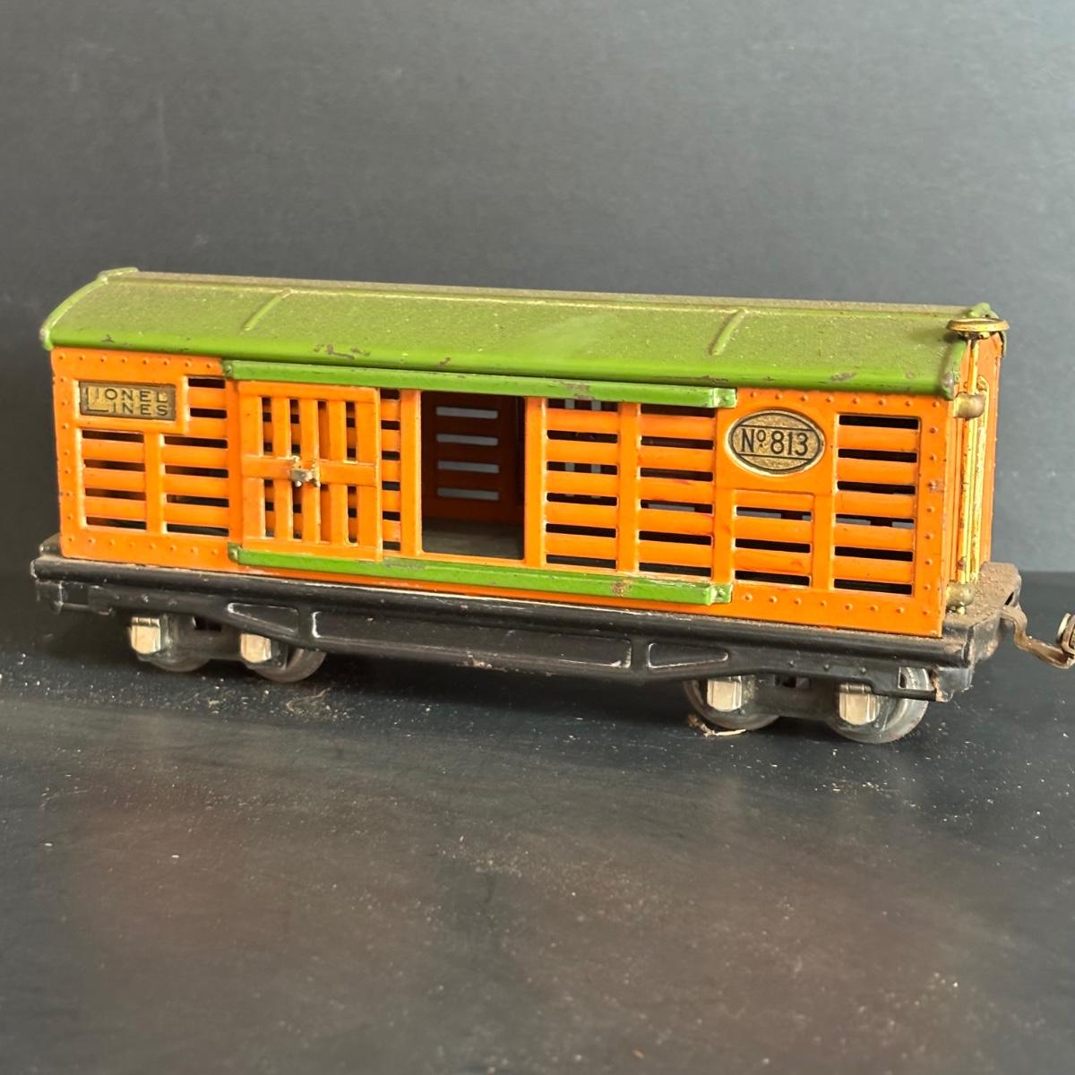 LOT 639: Antique HO Lionel Lines Train Cars & Engine: Engine No 254Gondola Car No. 812, Cattle Car No. 813, Automobile Furniture No. 814, Caboose No.817
