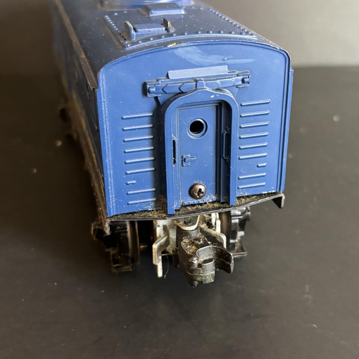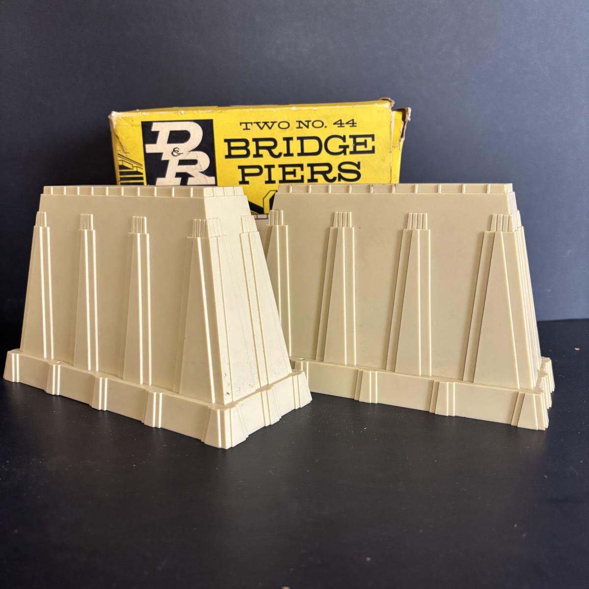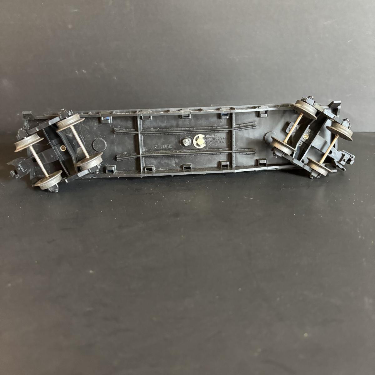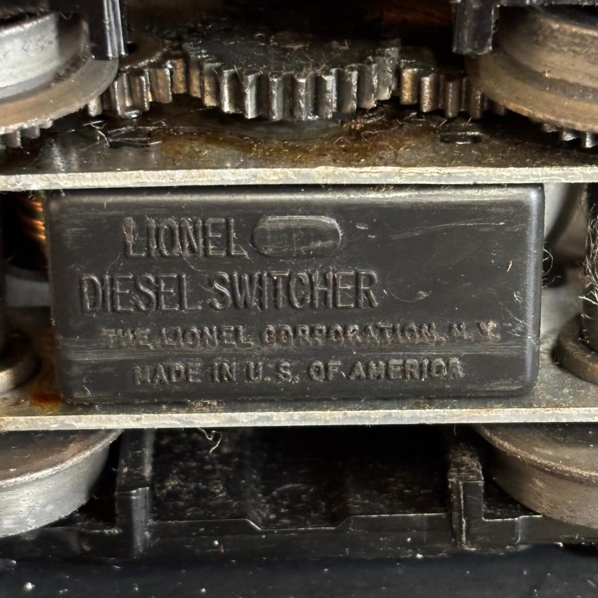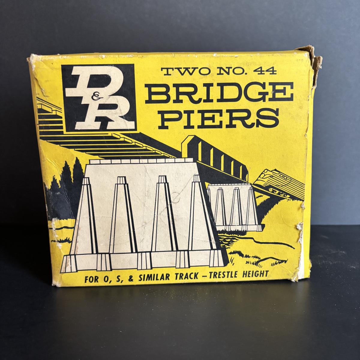 LOT 640: Lionel Chesapeake & Ohio No 225 Engine, Flatbed Train Car No 6630. Metal Bridge, D & R Bridge Piers, Lionel No. 110 Trestle Set, Cardboard Billboards & Empty Lionel Train Box