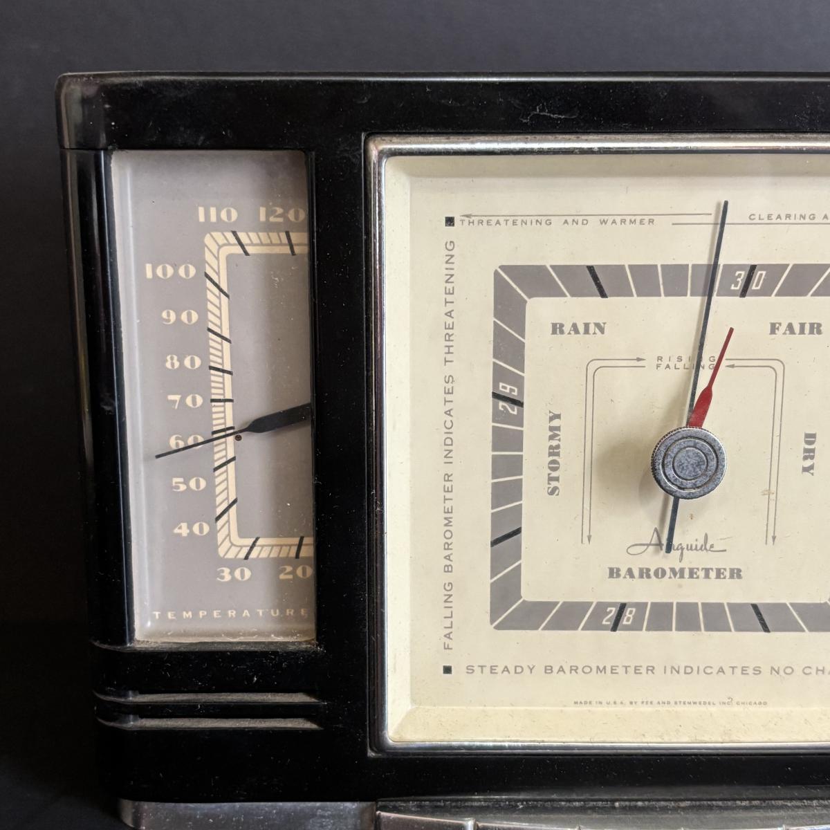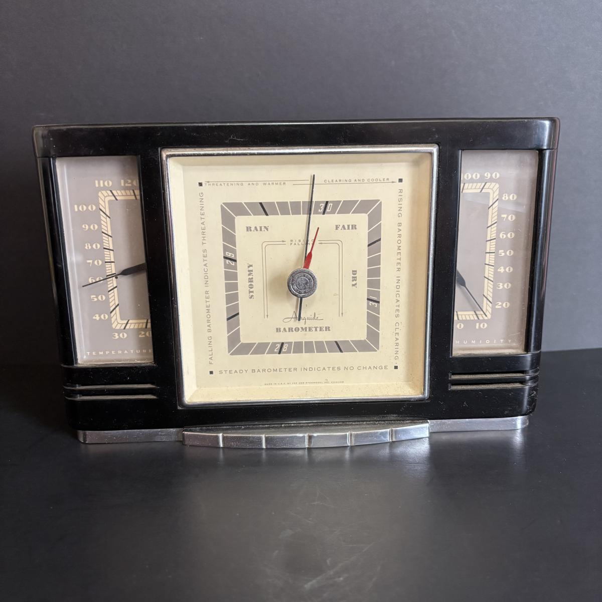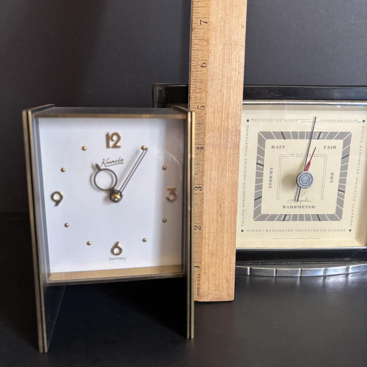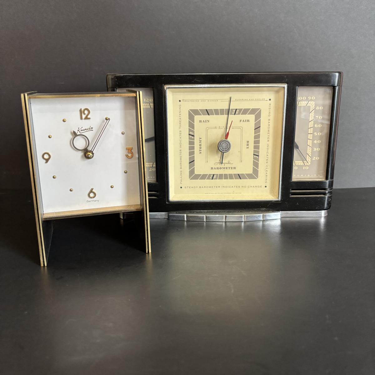 LOT 643: Vintage Airguide Weather Station by Fee & Stemwedel & Vintage Art Deco Kundo Alarm Clock