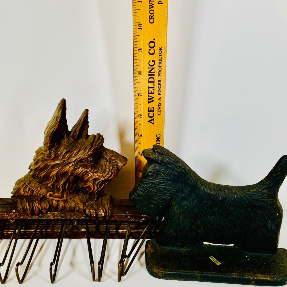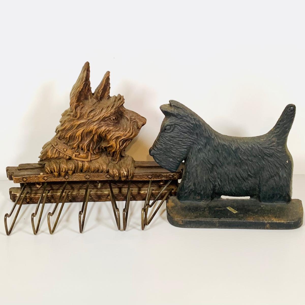 LOT 657: Cast Iron Scotty Dog Book End and a Vintage Scotty Dog Tie Rack