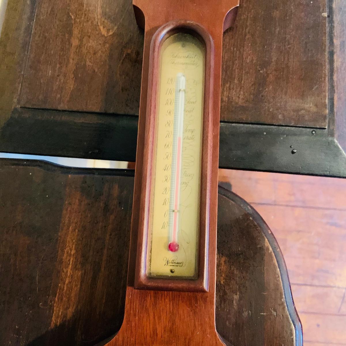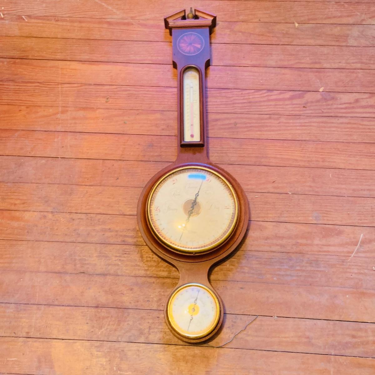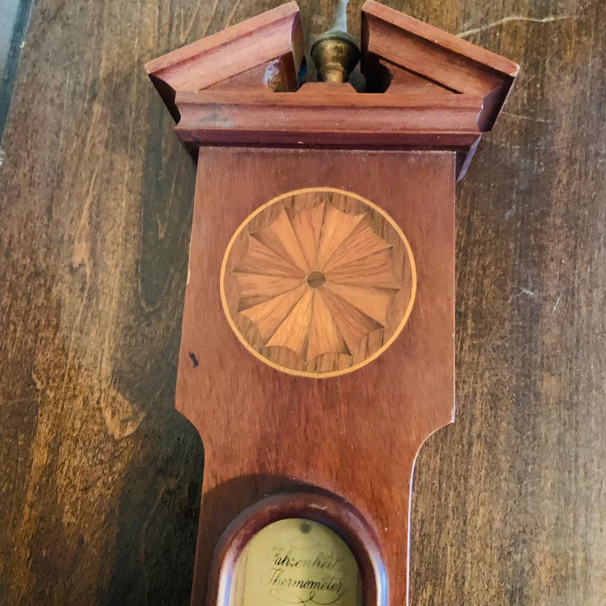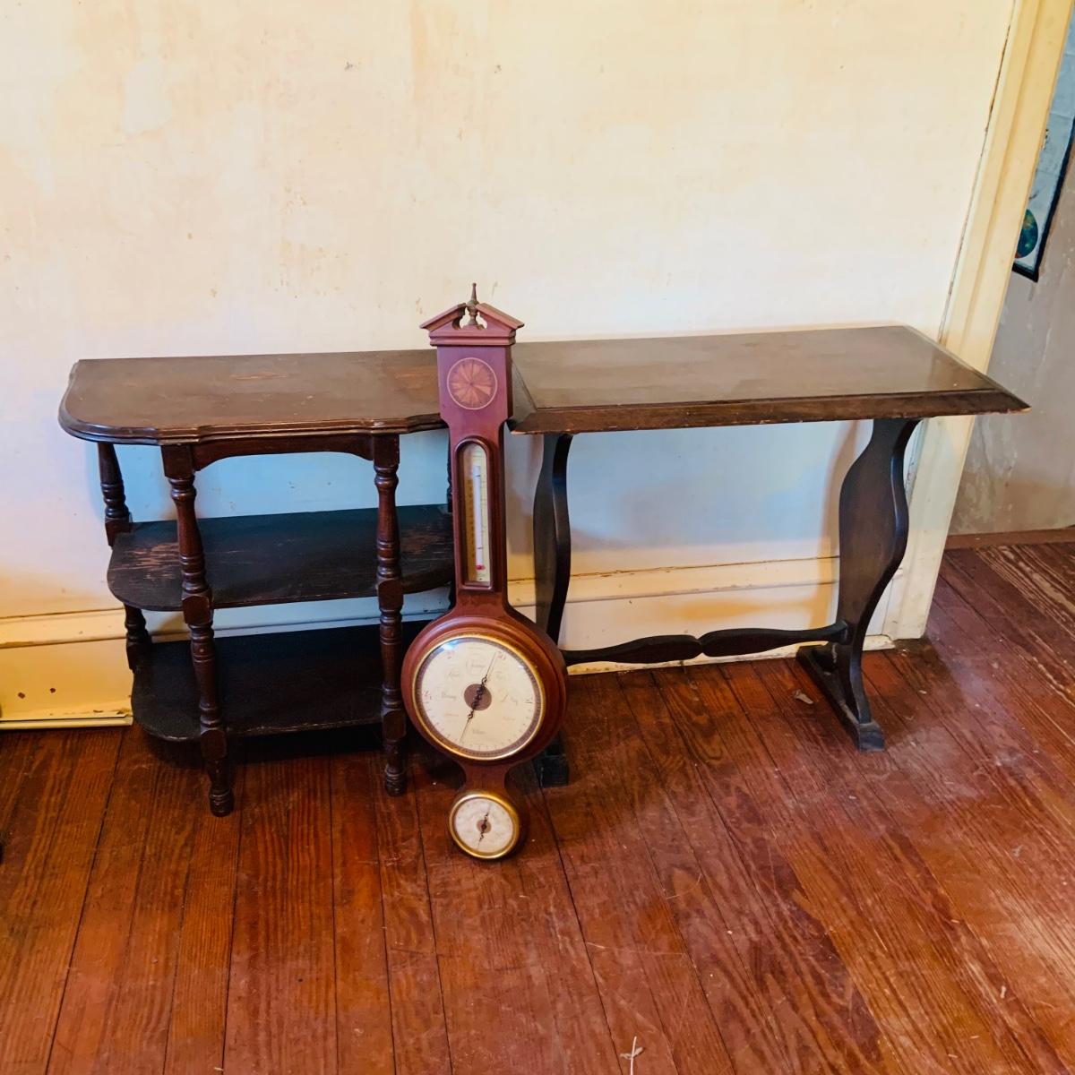 LOT 668: Wooden Side Table and a Banjo Barometer