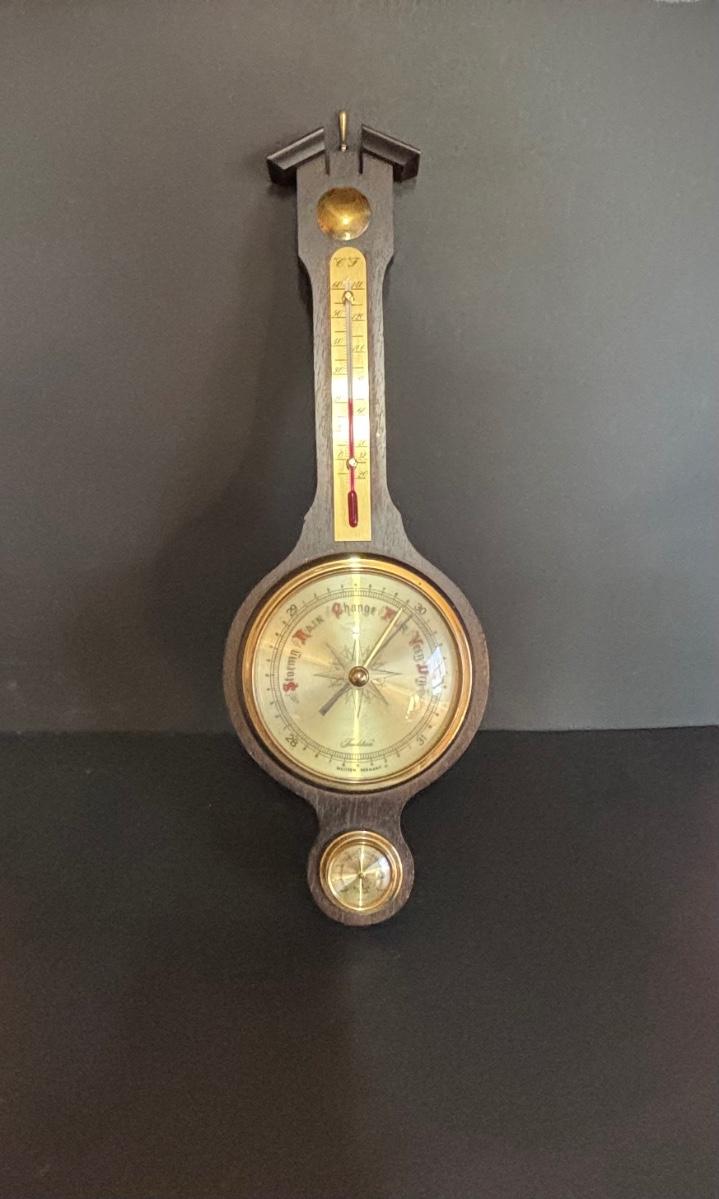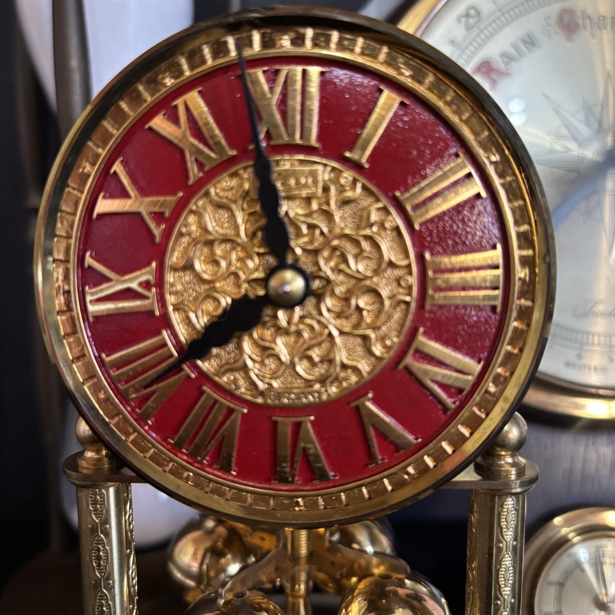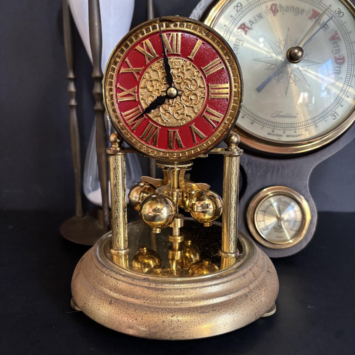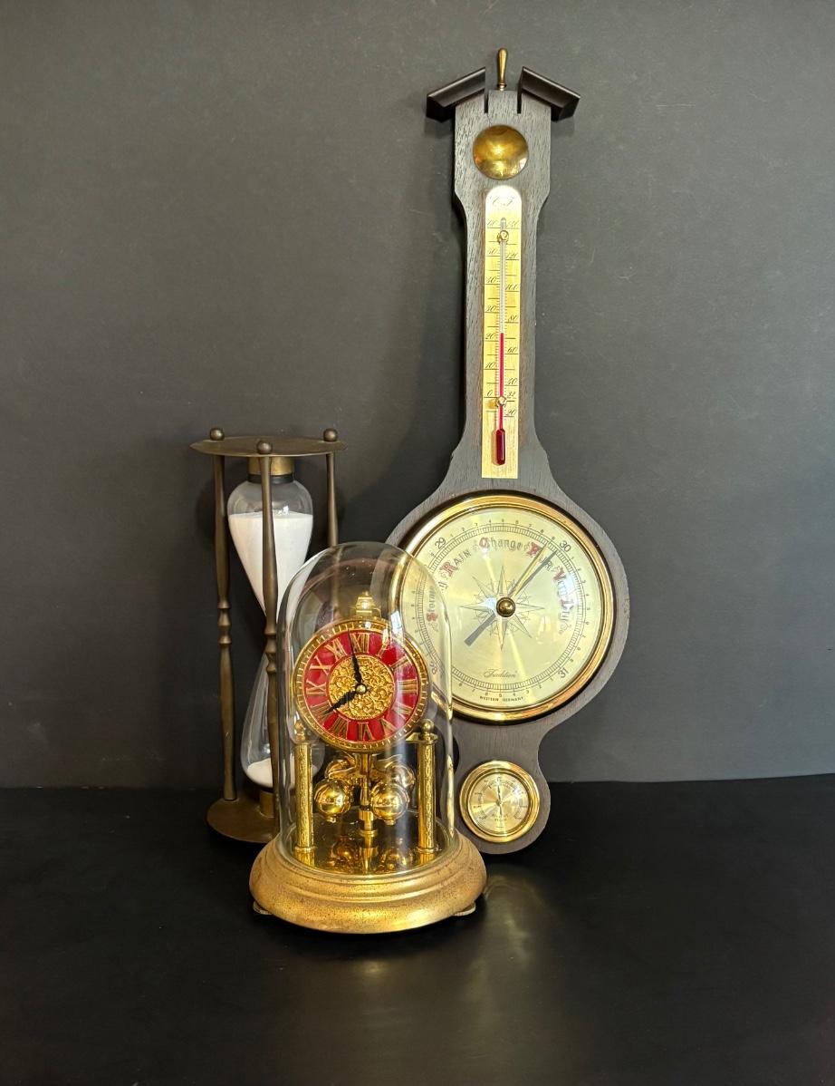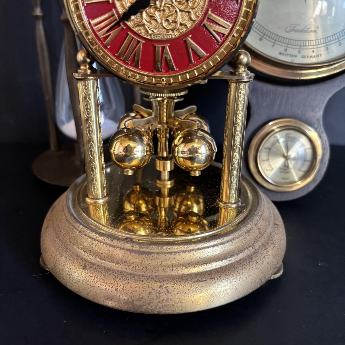 LOT 707: Kern Anniversary Clock, Brass Hourglass & Traditions Barometer