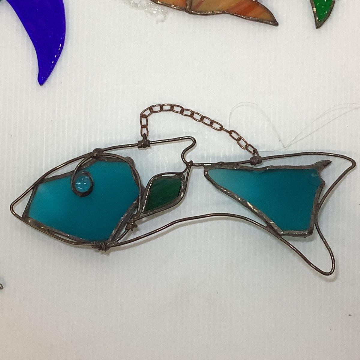 Lot 1124 Lot of Stained Glass Fish, Hummingbird, Pelican