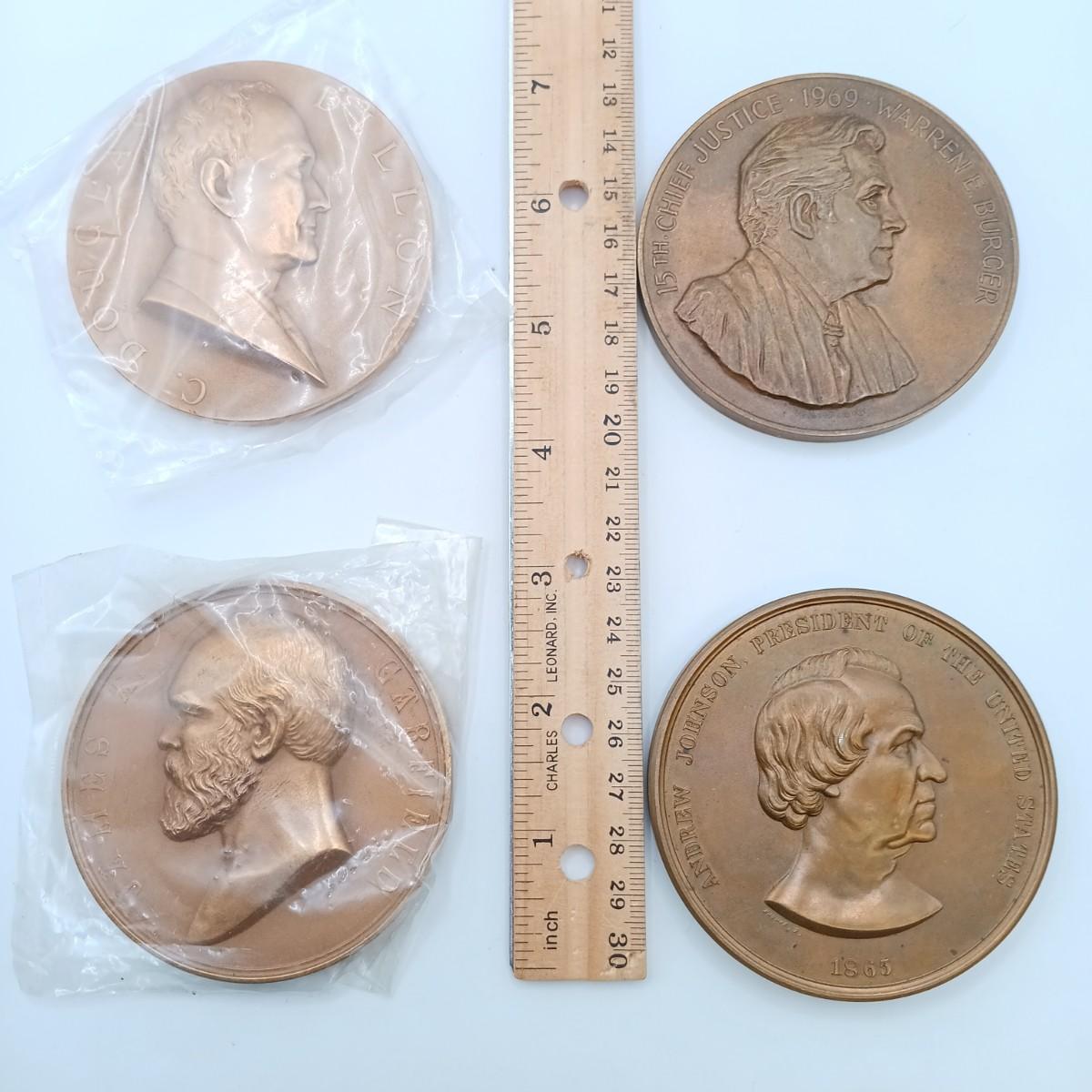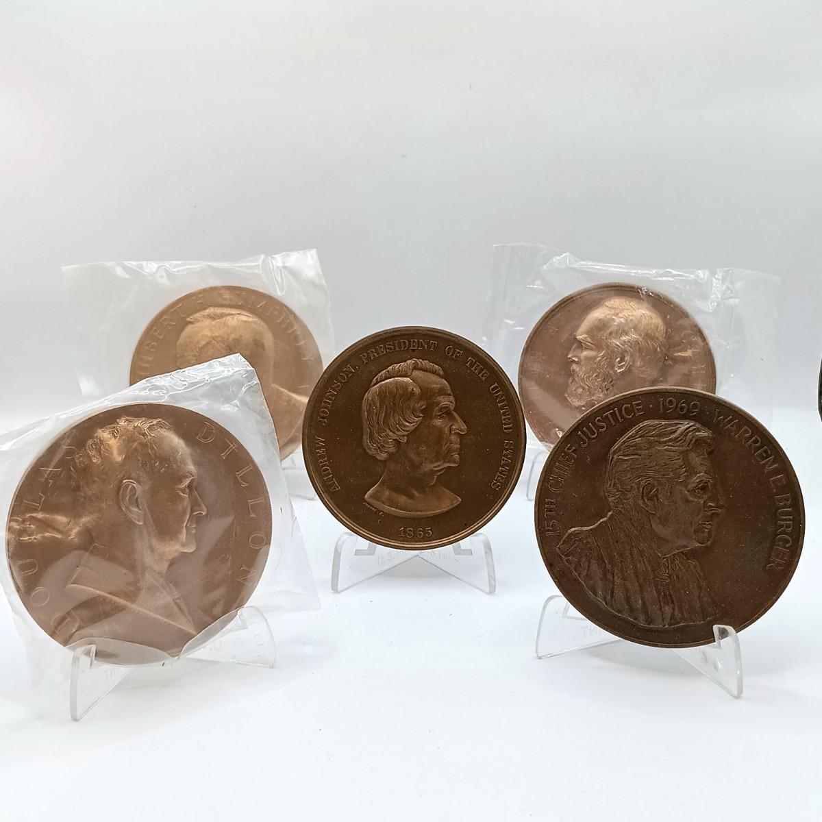 LOT 7: Set of 5 Metal Medallions- Warren E. Burger, Hubert H. Humphrey, Andrew Johnson & More