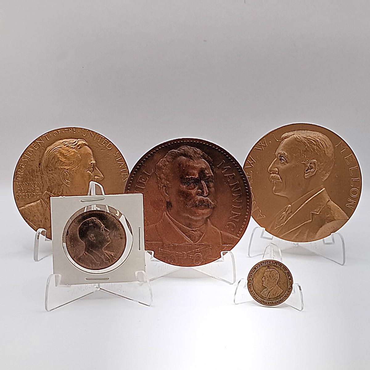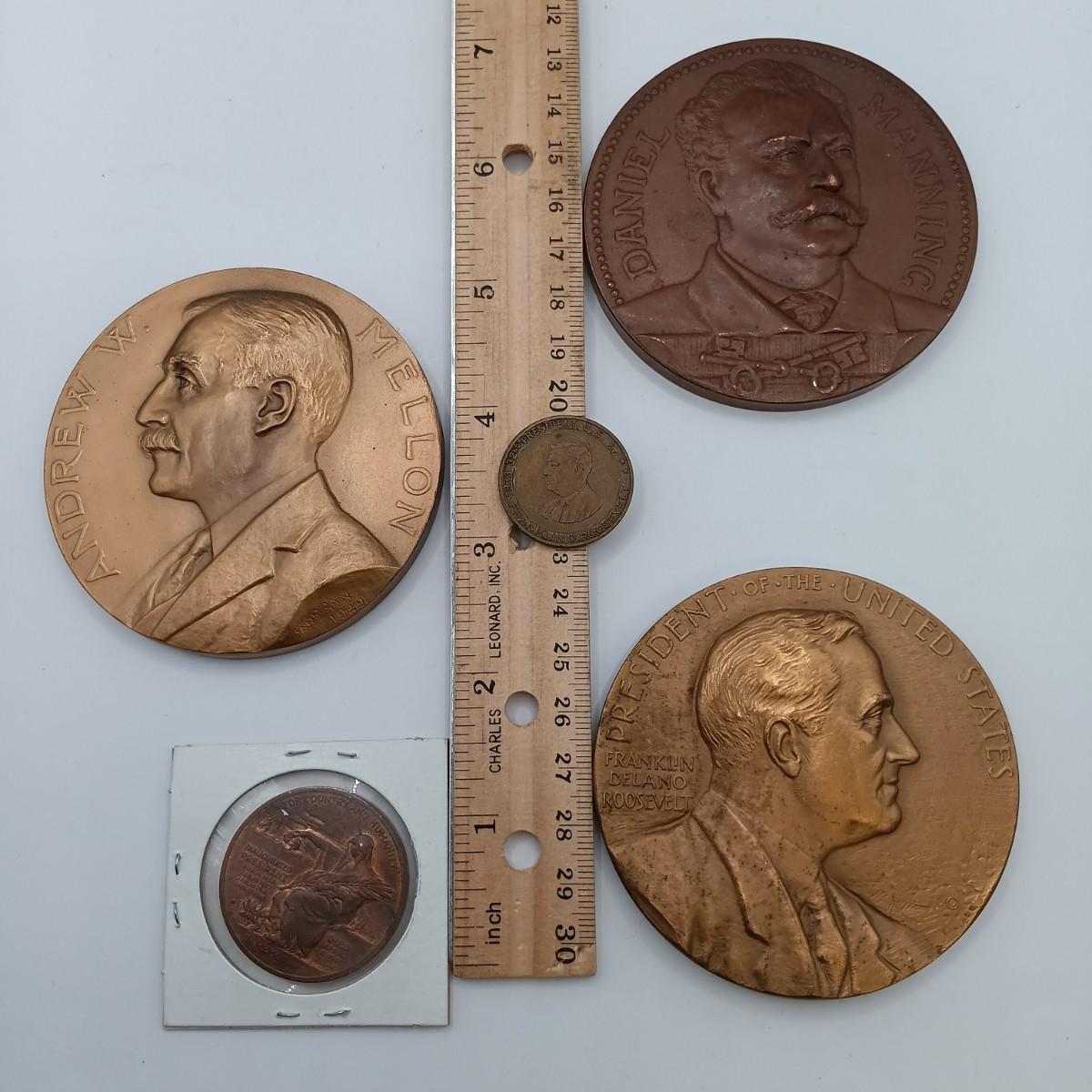 LOT 8: Set of 5 Metal Medallions- Franklin D. Roosevelt, Daniel Manning & More