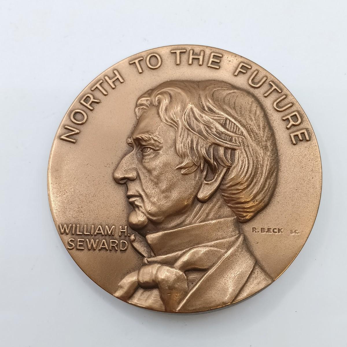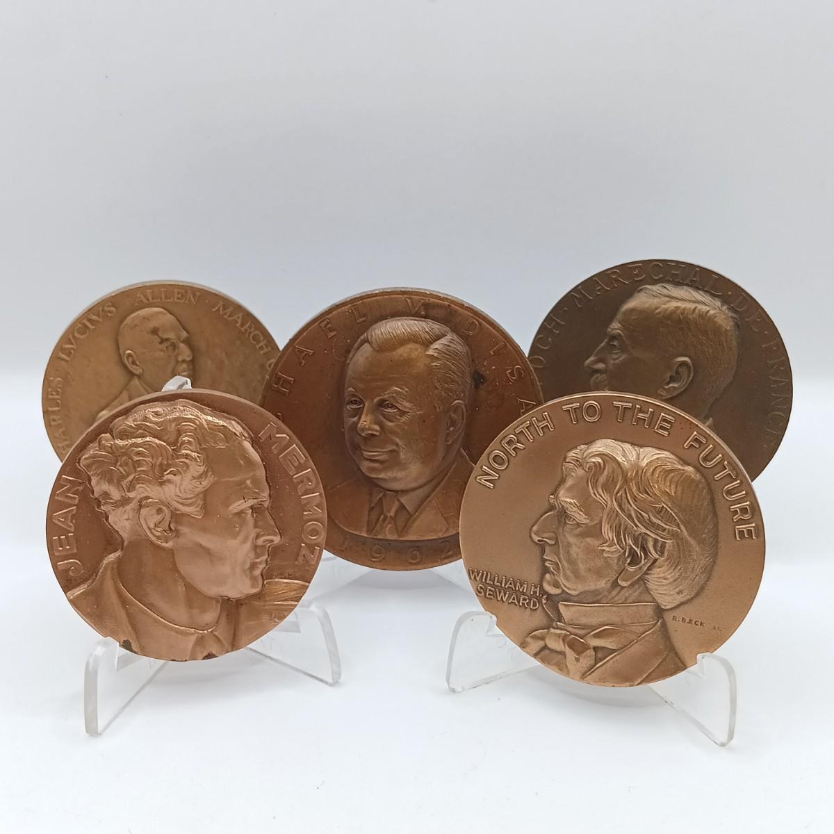 LOT 11: Set of 5 Metal Medallions- Jean Mermoz, Marshal Foch, William H. Seward & More
