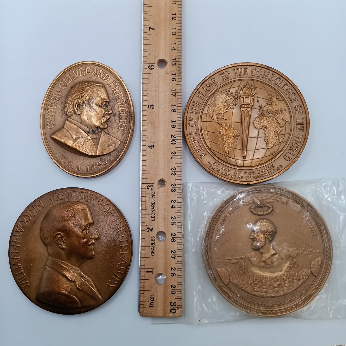 LOT 15: Set of 5 Metal Medallions- Cyrus W. Field Atlantic Telegraph, Simon Wiesenthal, Grover Cleveland & More