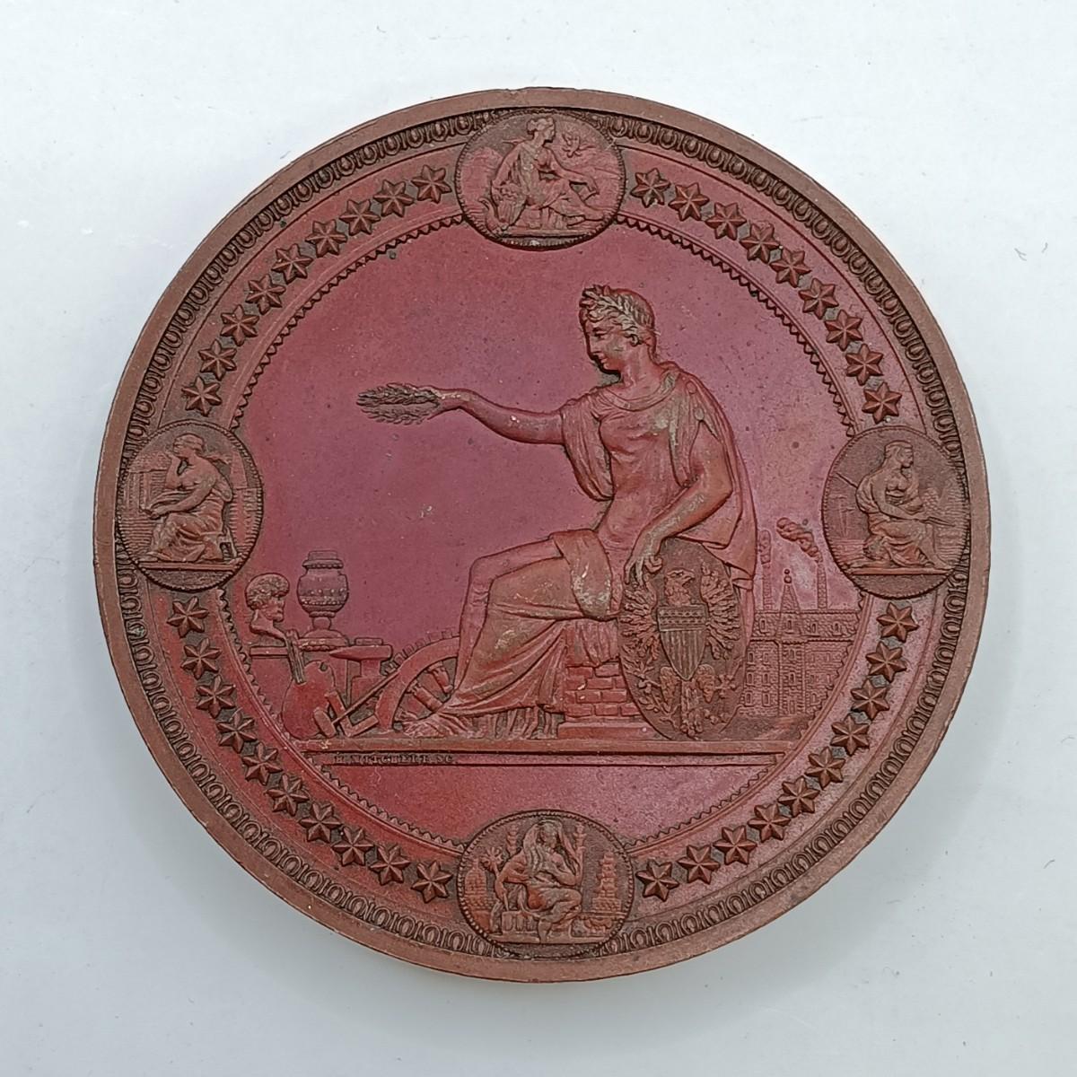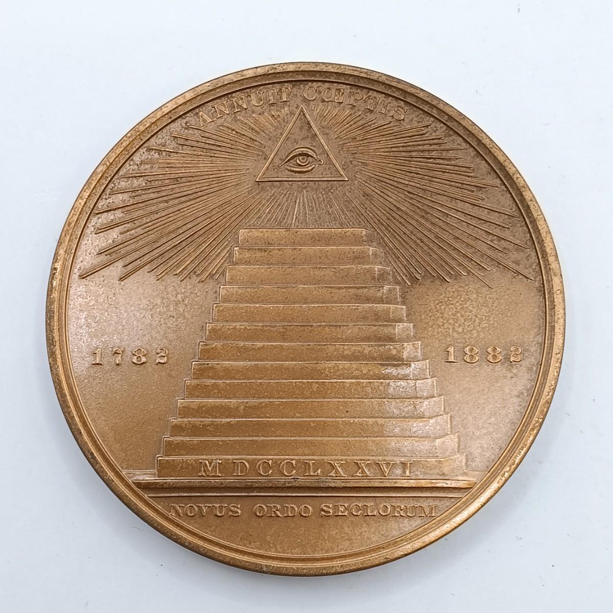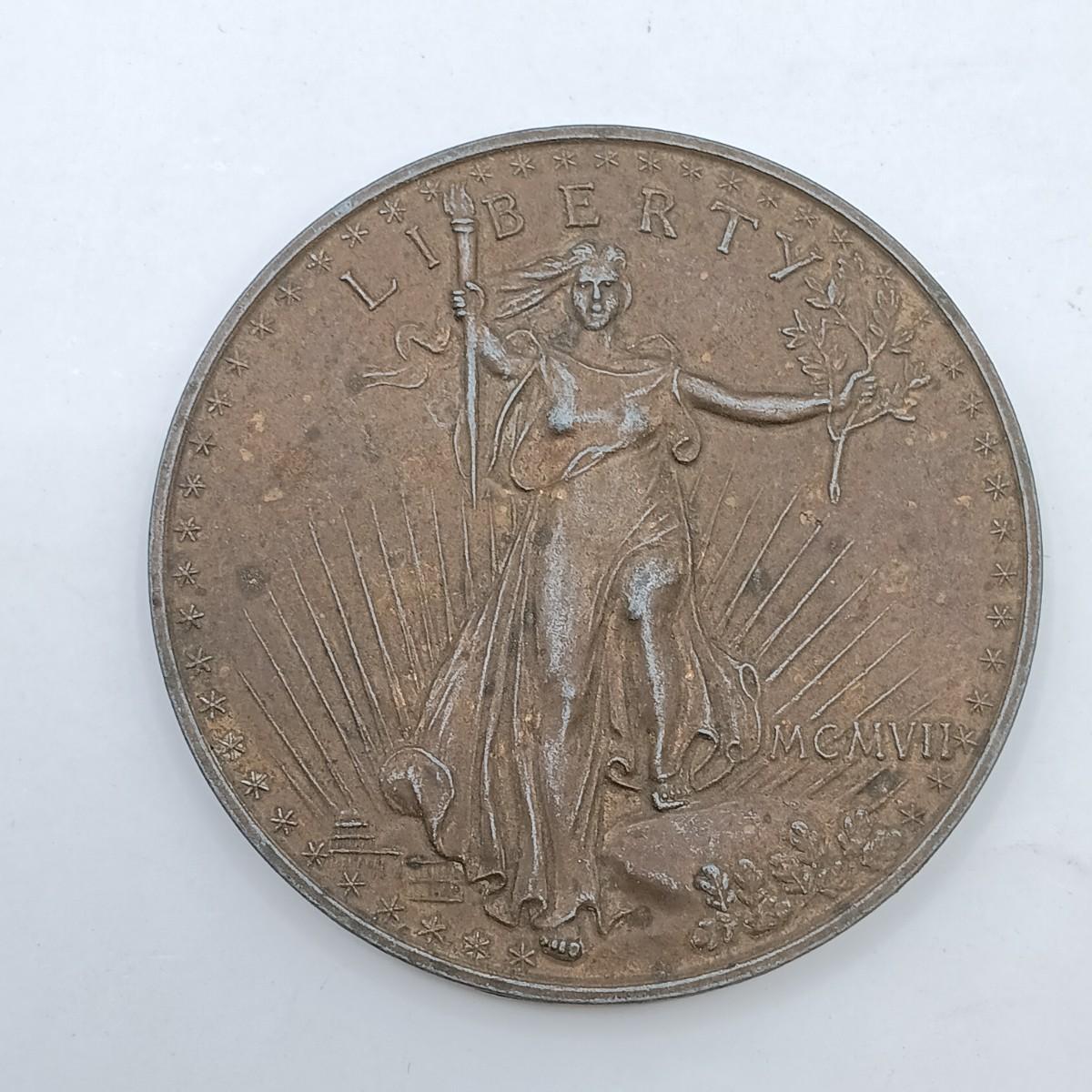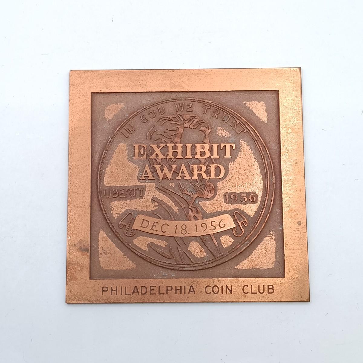 LOT 16: Set of 4 Metal Medallions with Coin Club Plaque- Philadelphia Centennial Exposition, Leslie M. Shaw & More