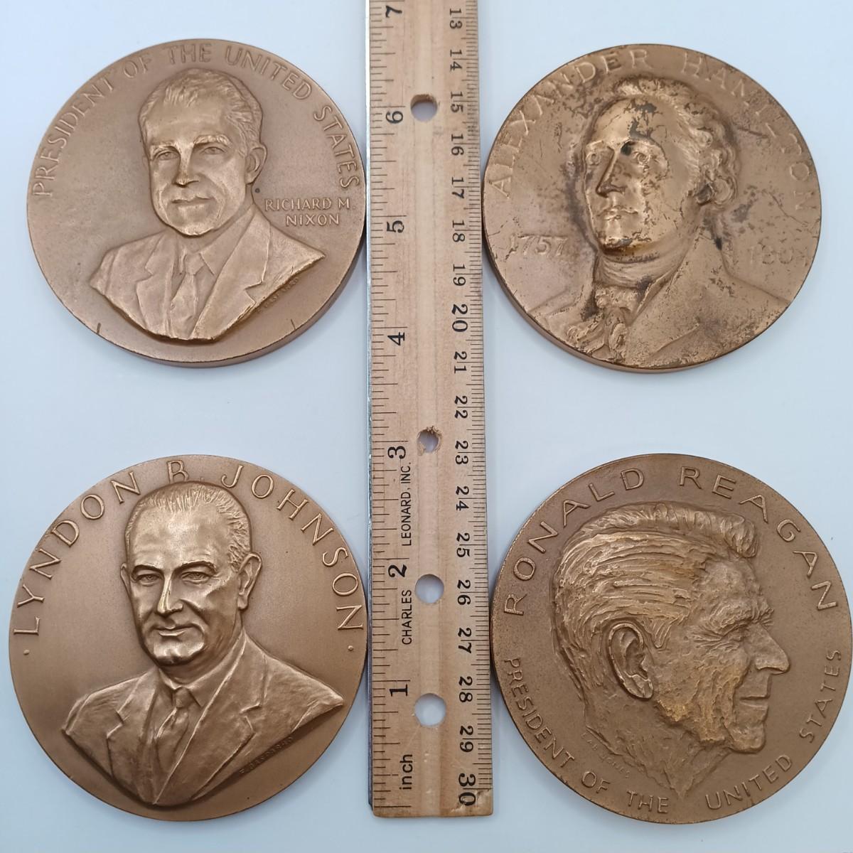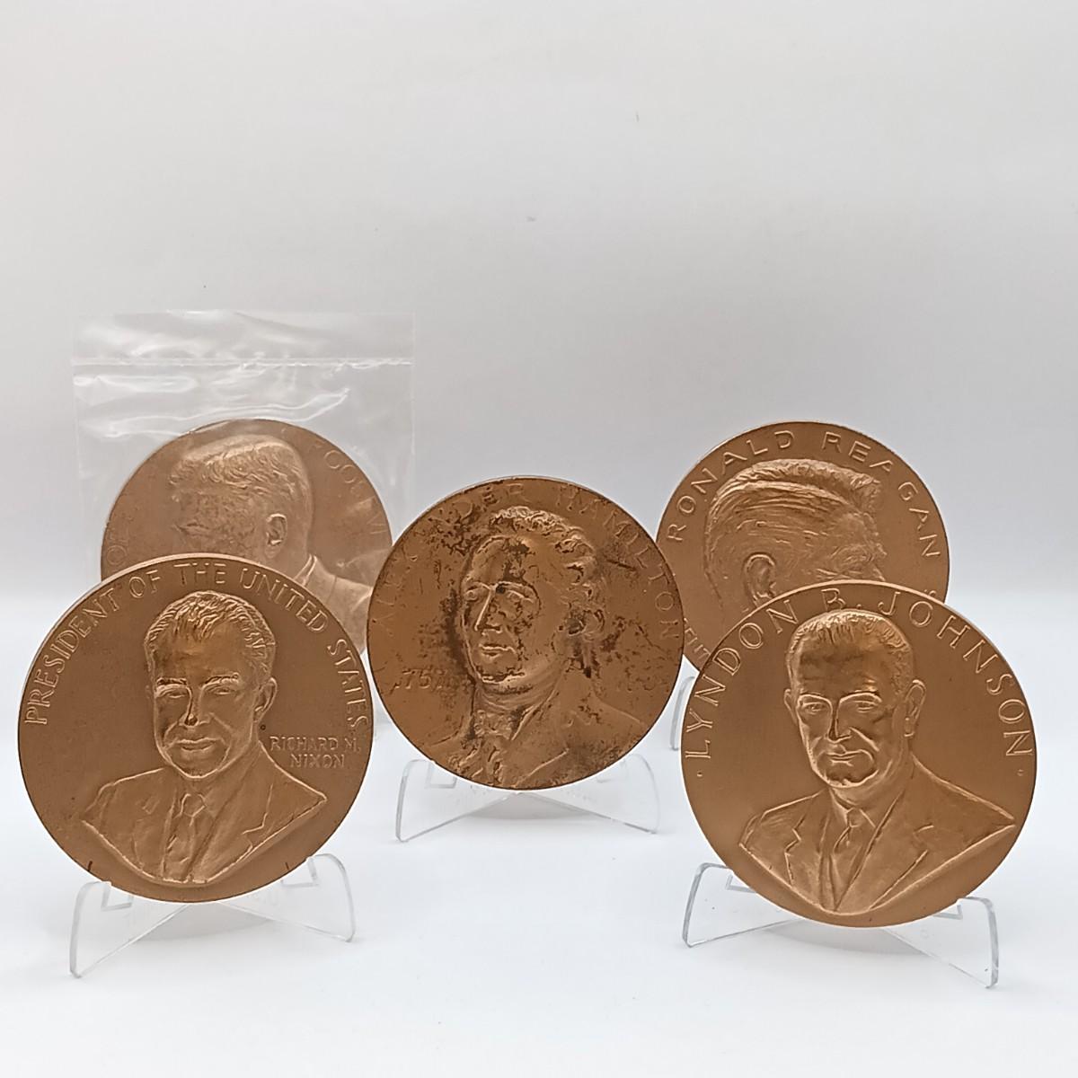 LOT 18: Set of 5 Metal Medallions- Alexander Hamilton, Theodore Roosevelt & More