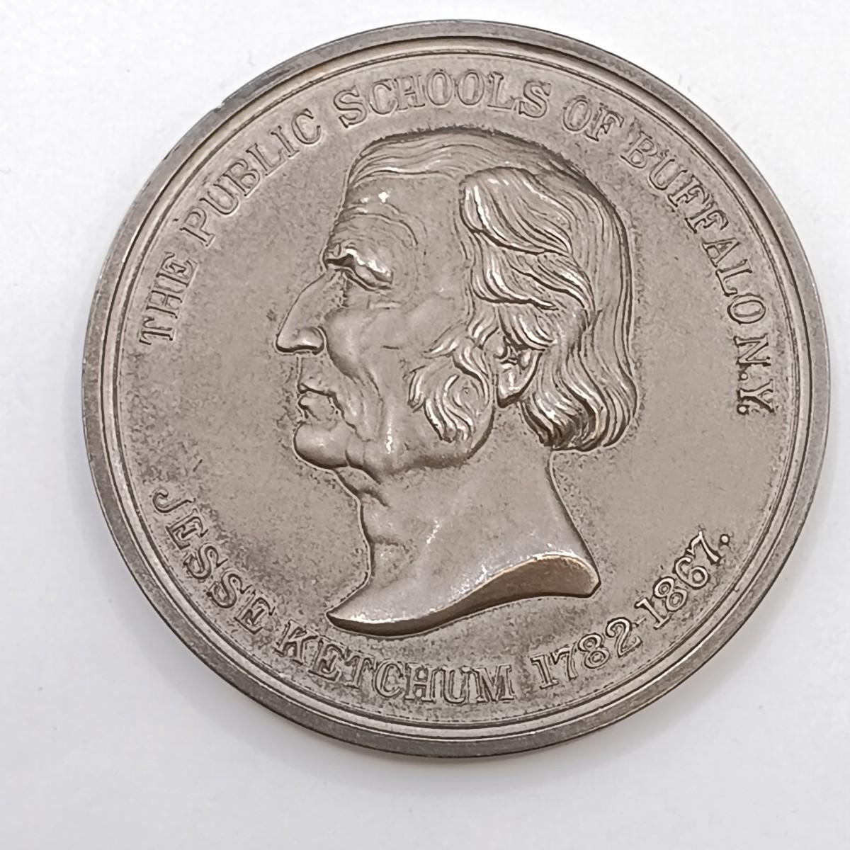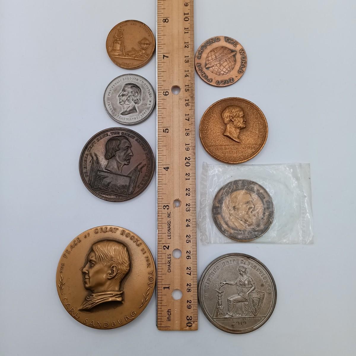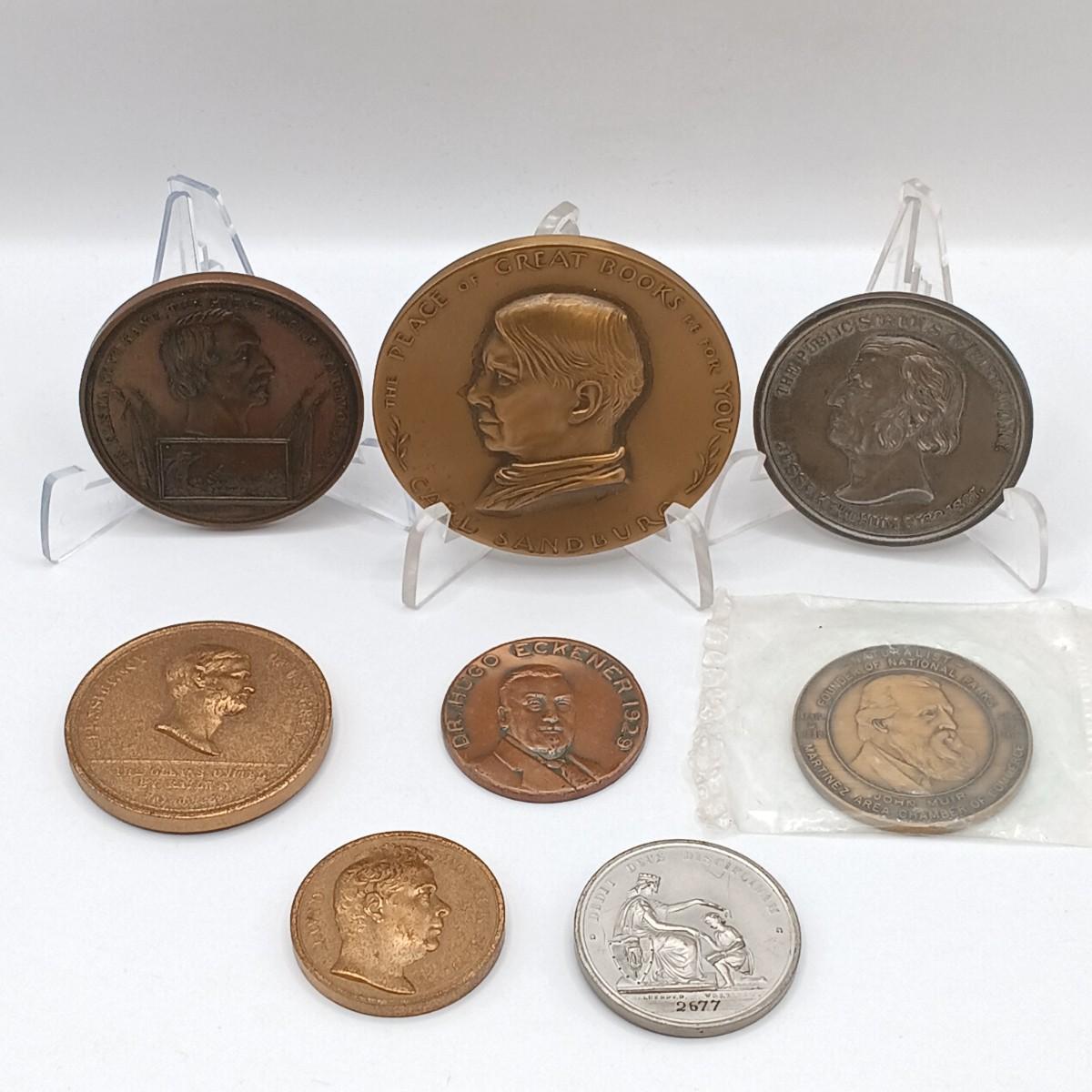 LOT 24: Set of 8 Metal Medallions- John Muir, Public Schools of Buffalo NY, Hugo Eckener & More