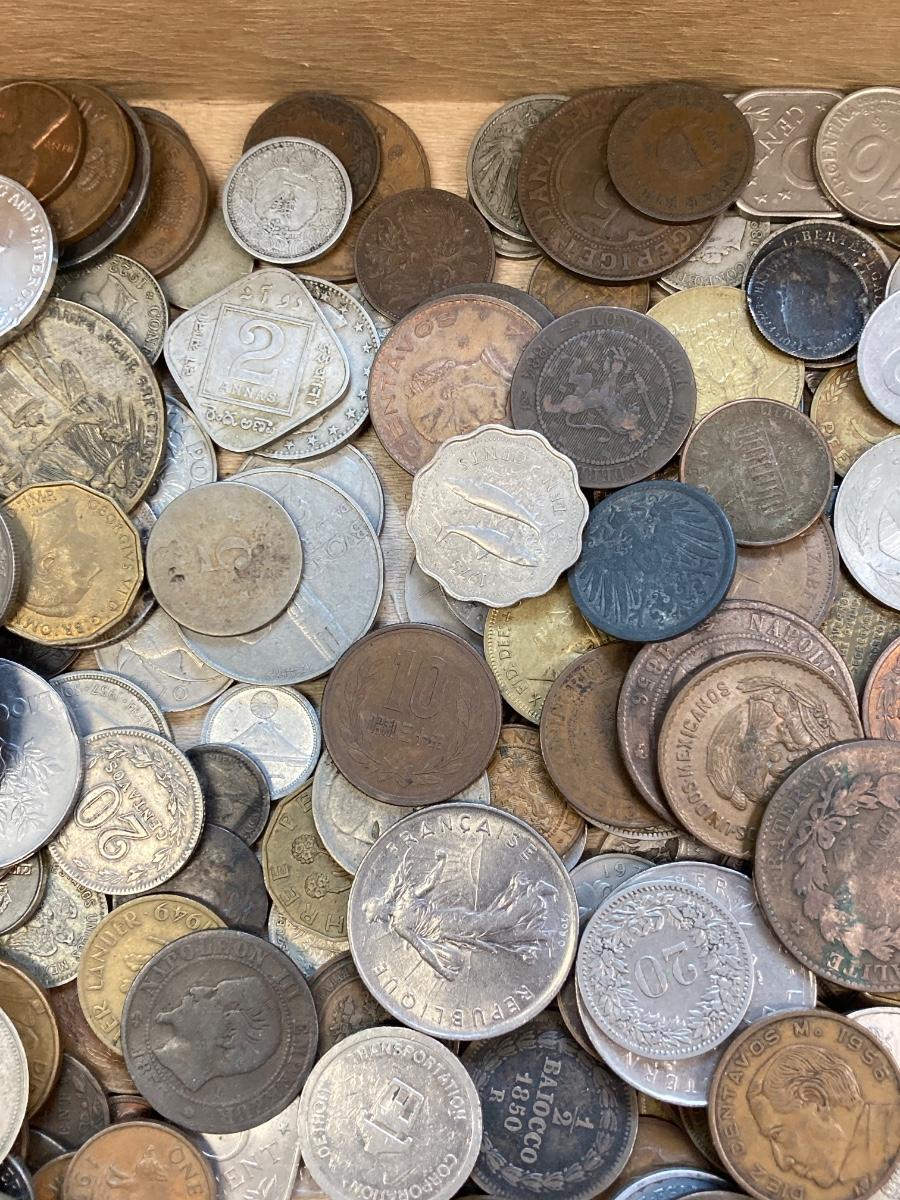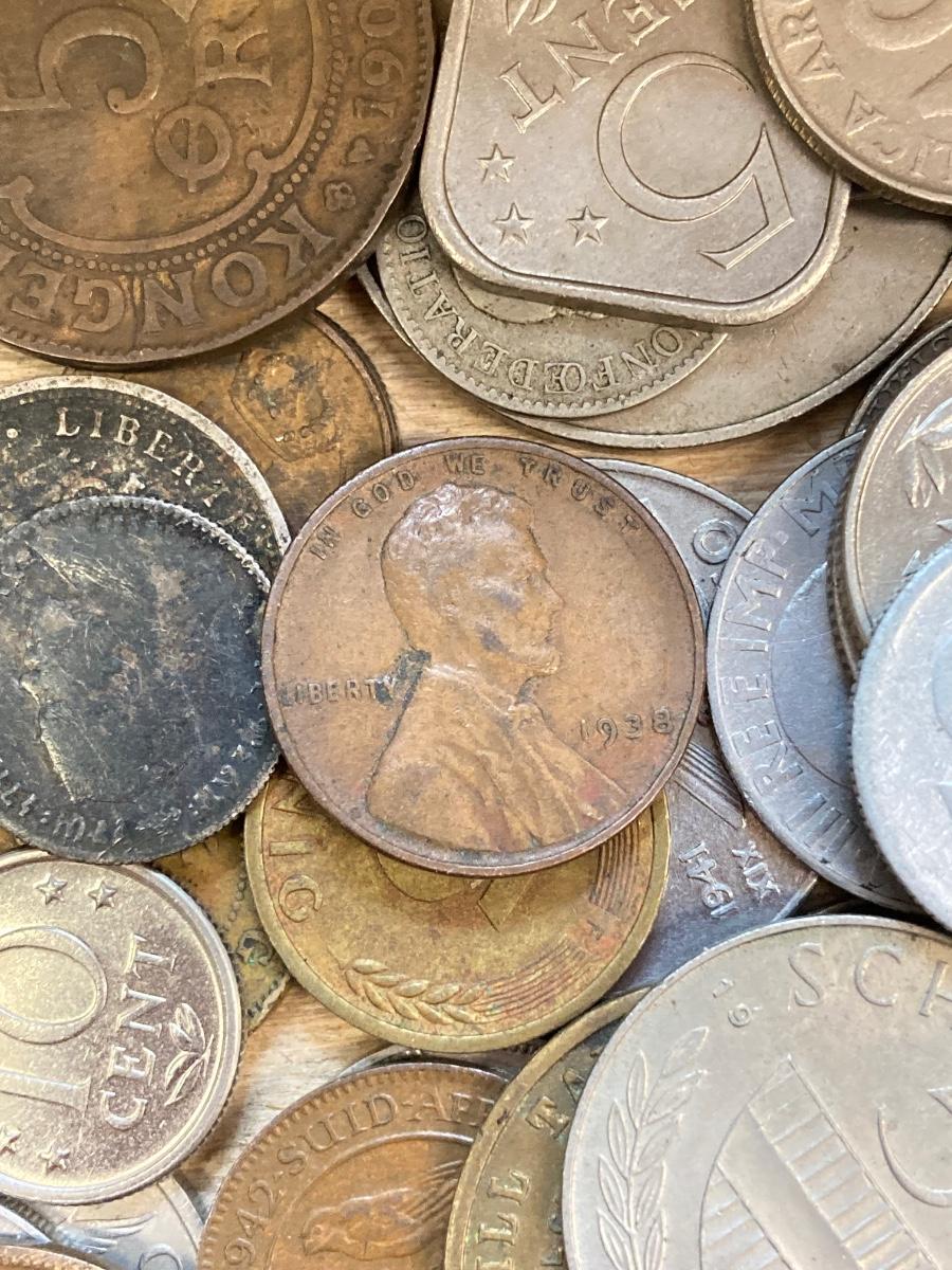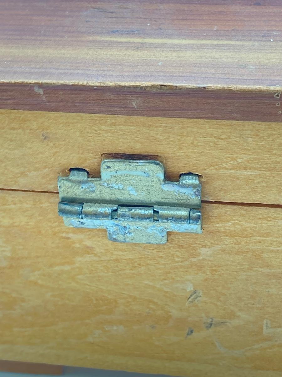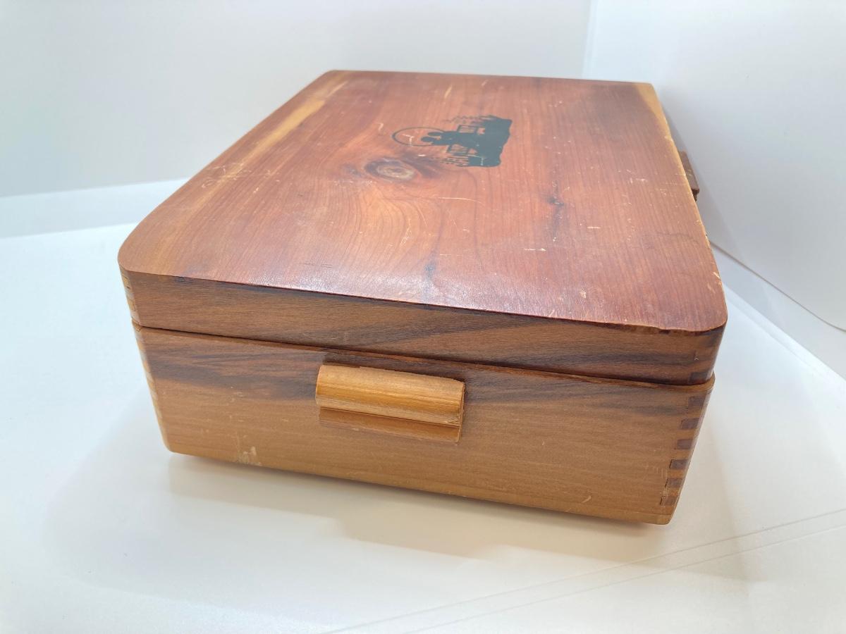 LOT 42: Vintage Cedar Box with Assorted Coins / Tokens