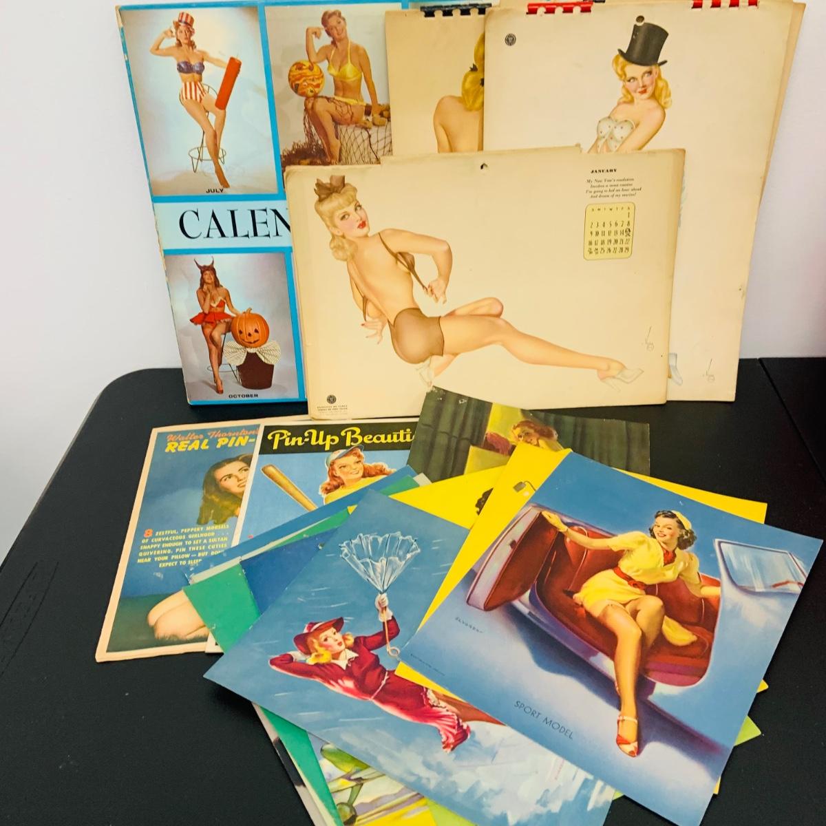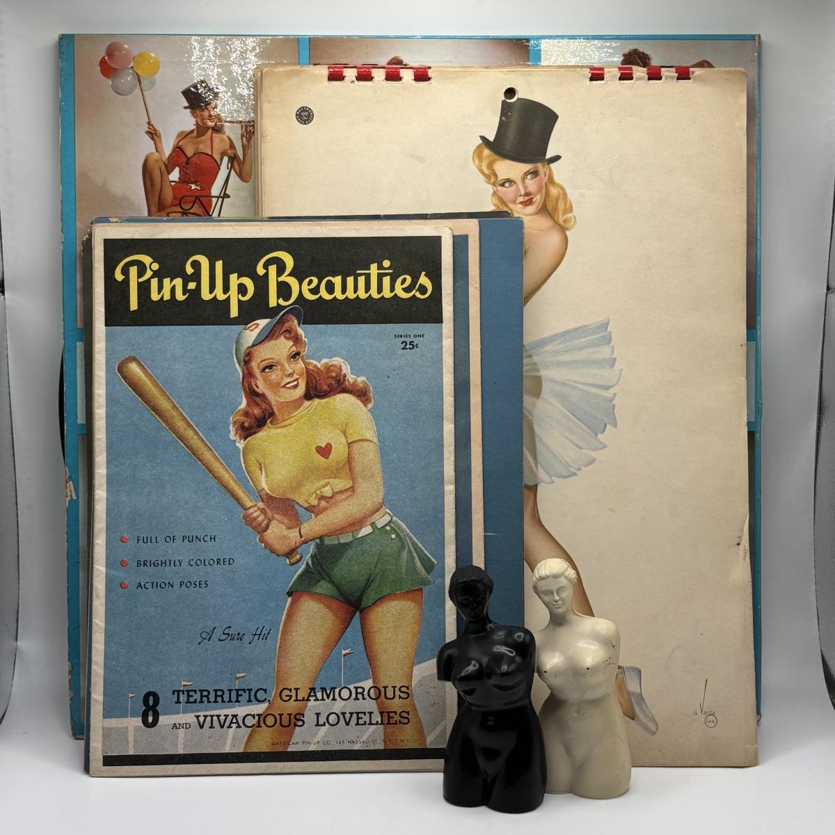 LOT 79: Collection of Vintage Pin-up Girl Posters, Julie London Calendar Girl 1956 Vinyl LP, and a Set of Venus De Milo Salt and Pepper Shakers