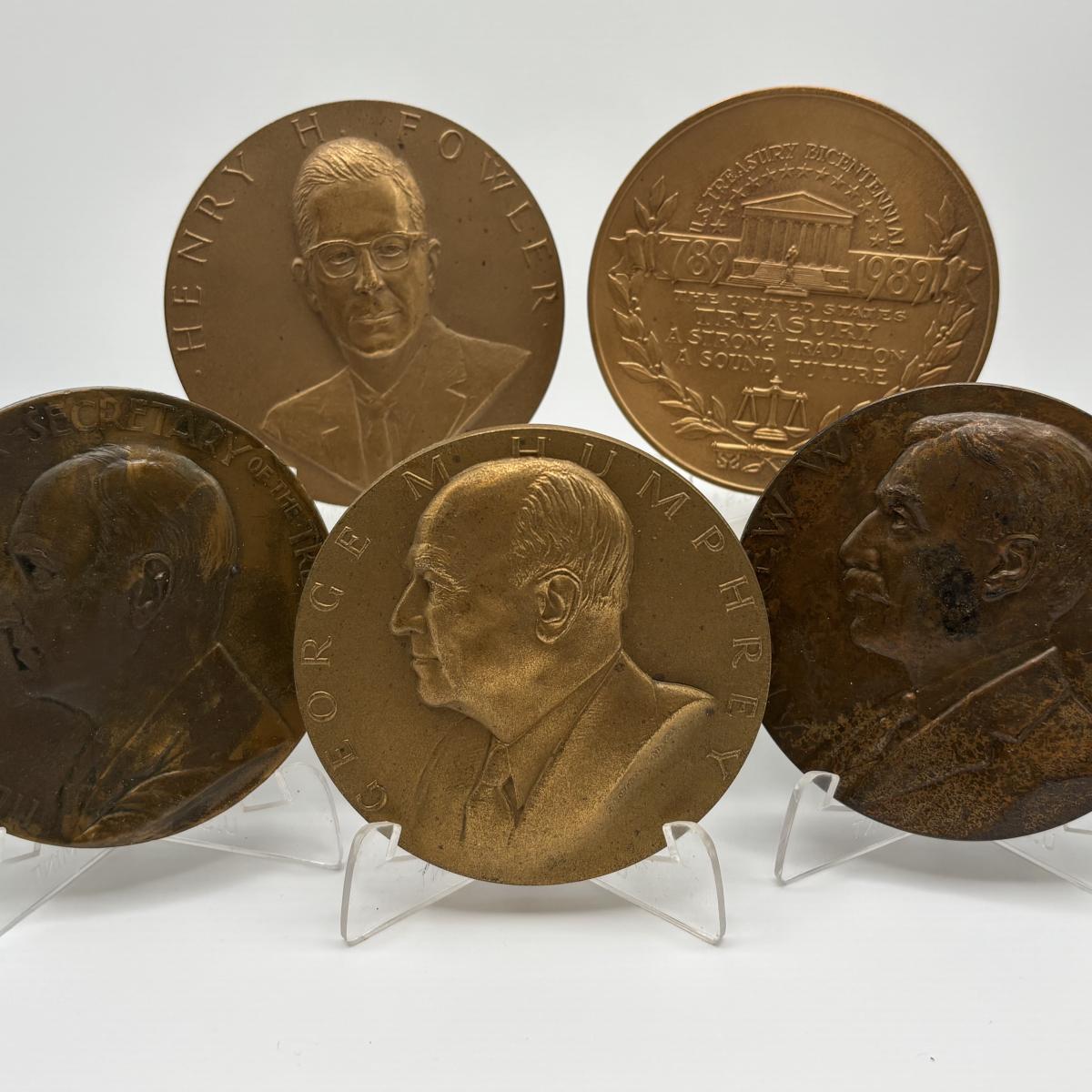 LOT 84: Collectible Bronze Metal Medallions: Henry H Fowler, US Treasury, Andrew W. Mellon, Henry Morgenthau Jr., George M Humphrey