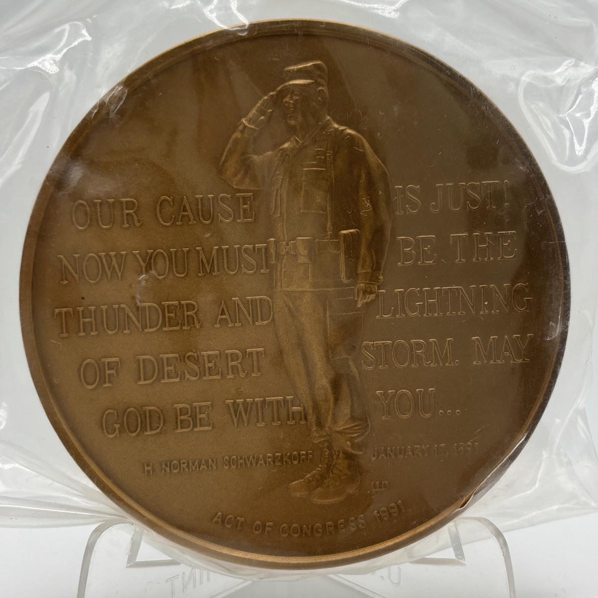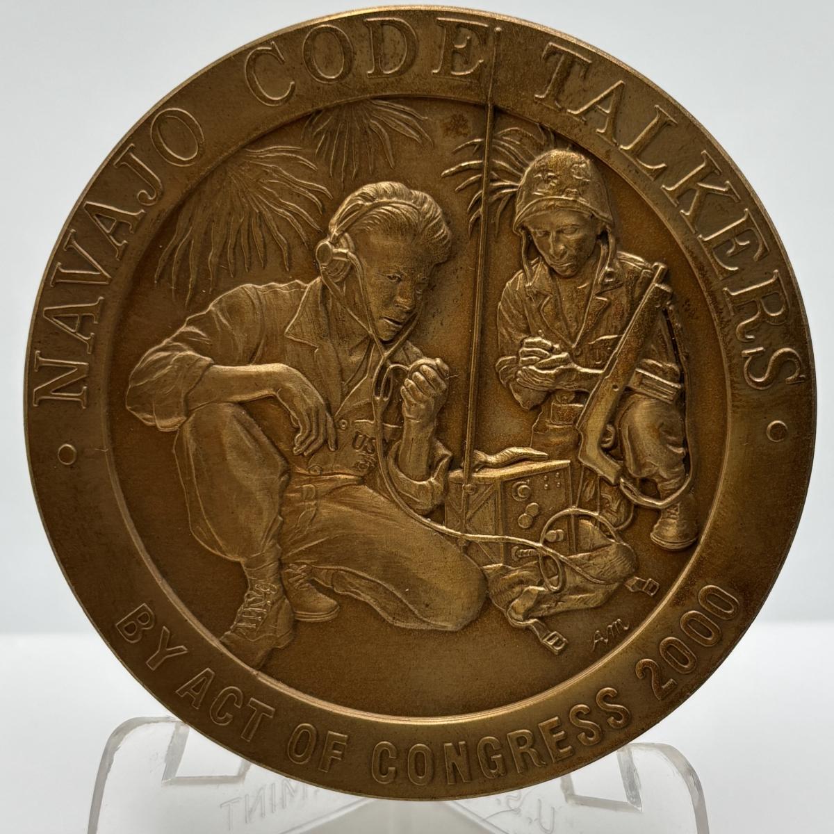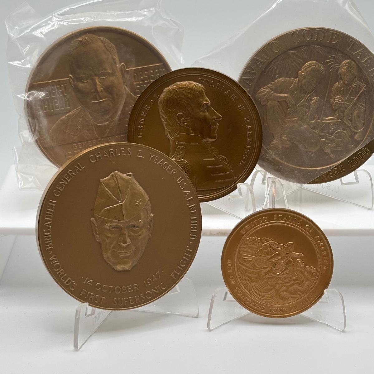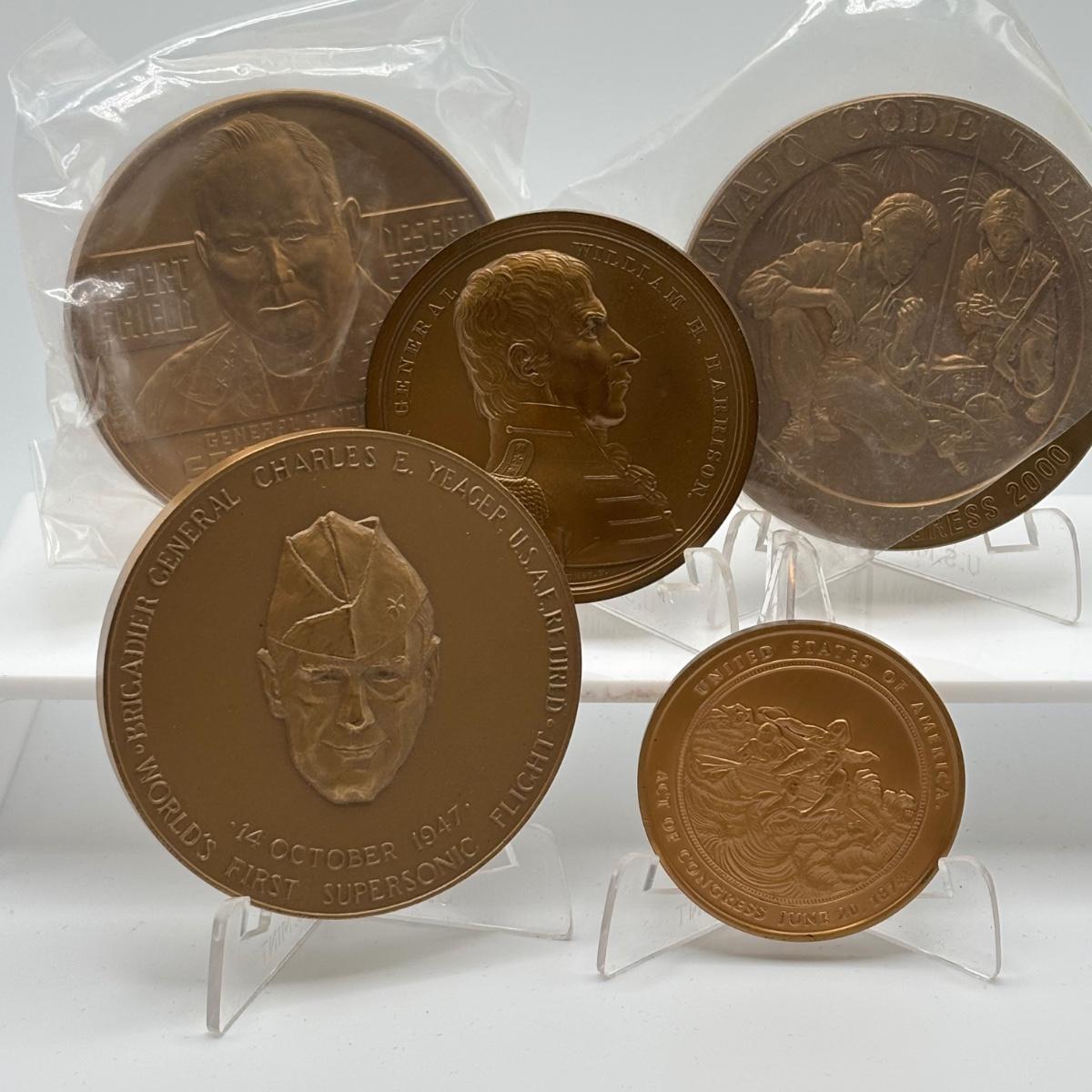 LOT 92: Collection of Five (5) Bronze Metal Medallions: Act of Congress, Worlds 1st Supersonic Flight, Navajo Code Talkers, General Schwarzhoff & Major Gerneral William H Harrison