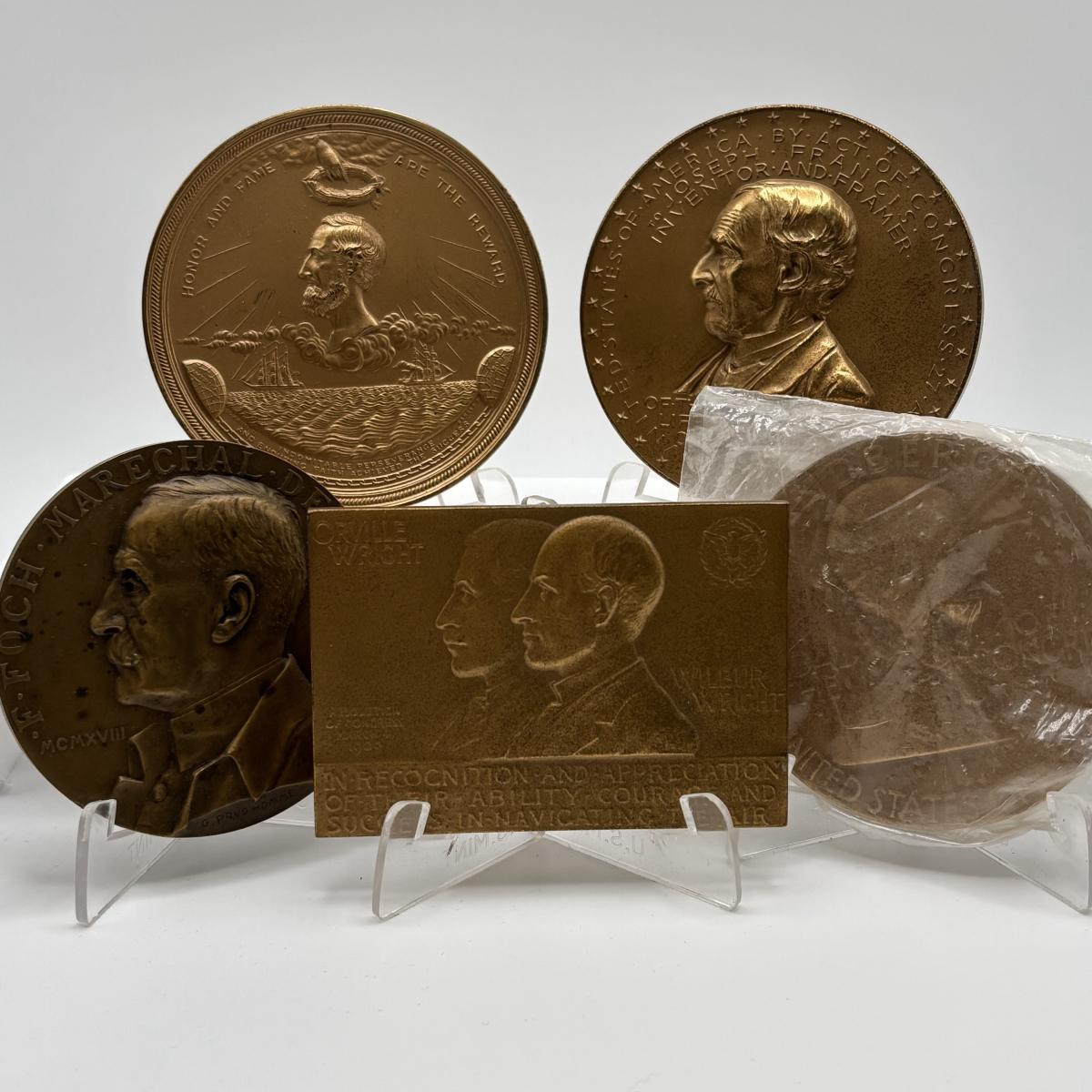 LOT 93: Collection of 5 Bronze Metal Medallions Orville & Wilbur Wright, Joseph Francis and Others