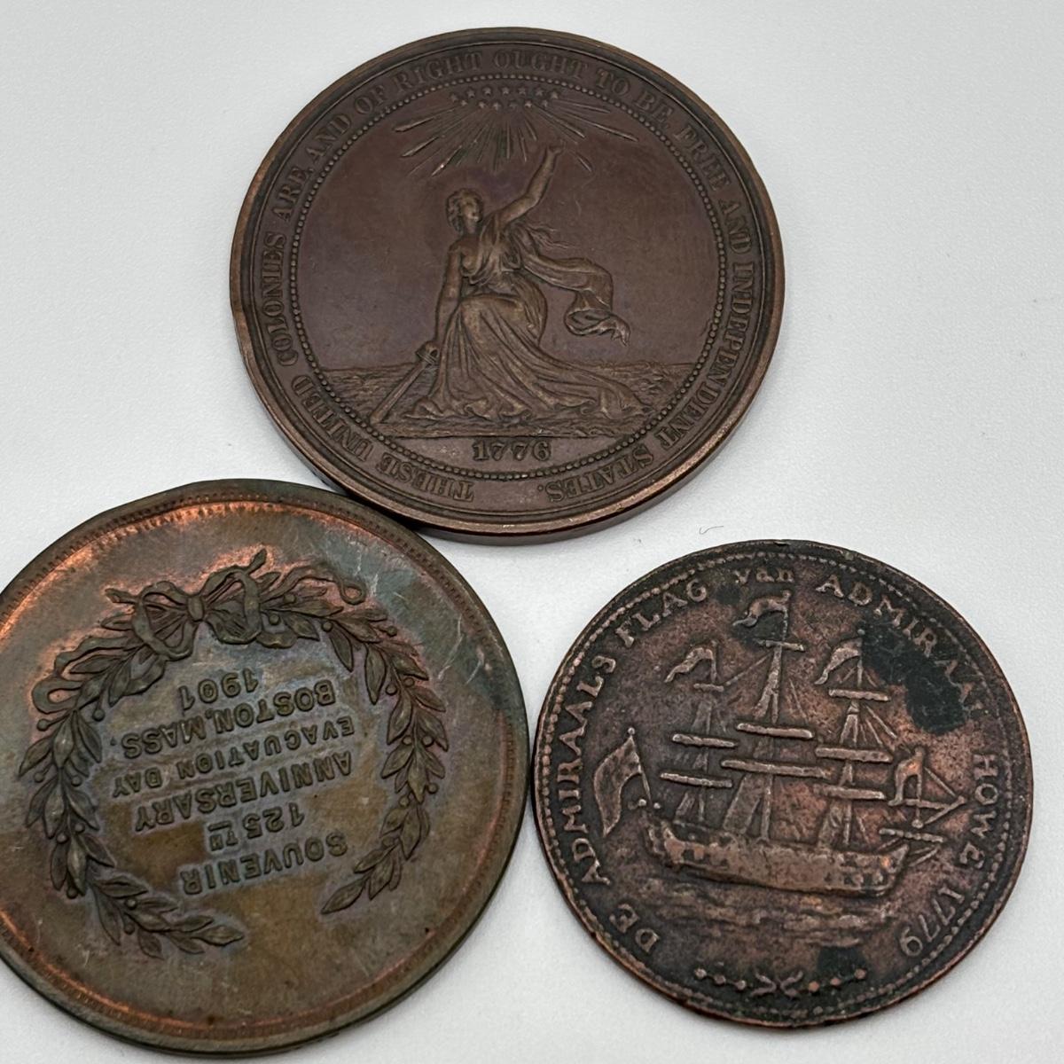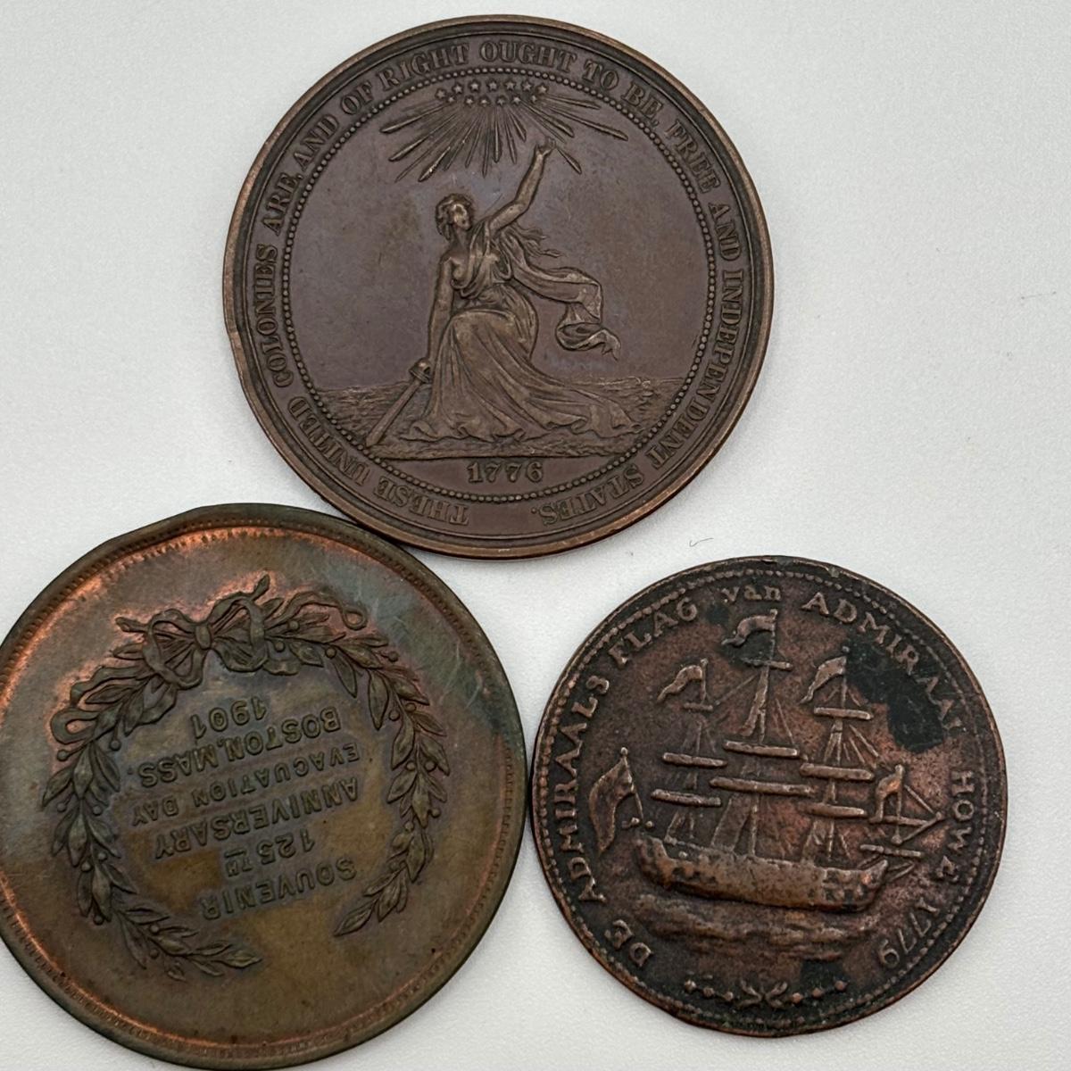 LOT 106: Collection of Metal Medallions/Tokens: 100th Anniversary of American, Rhode Island Ship Token, 125th Evacuation Day in Boston