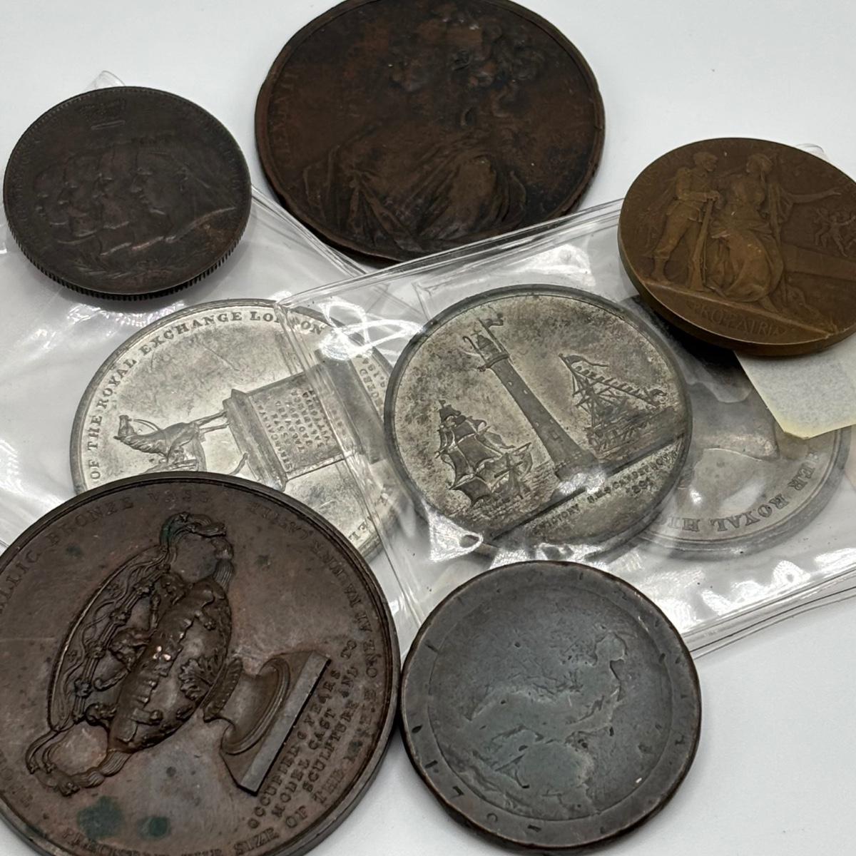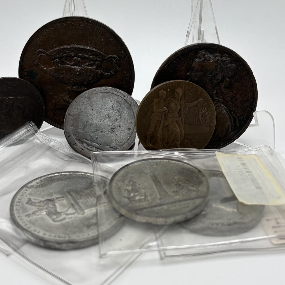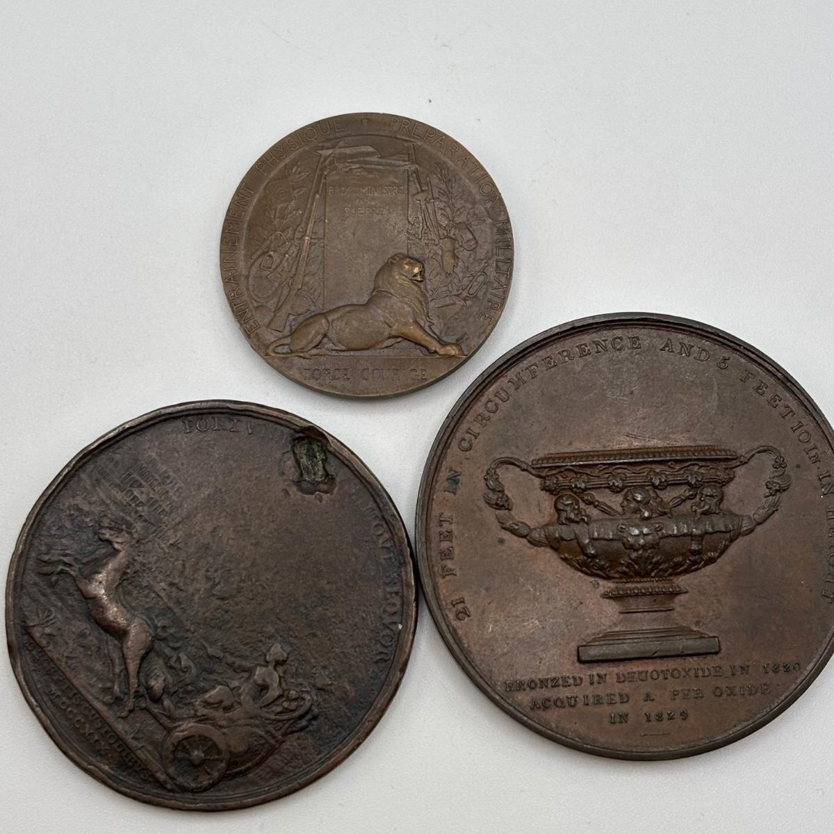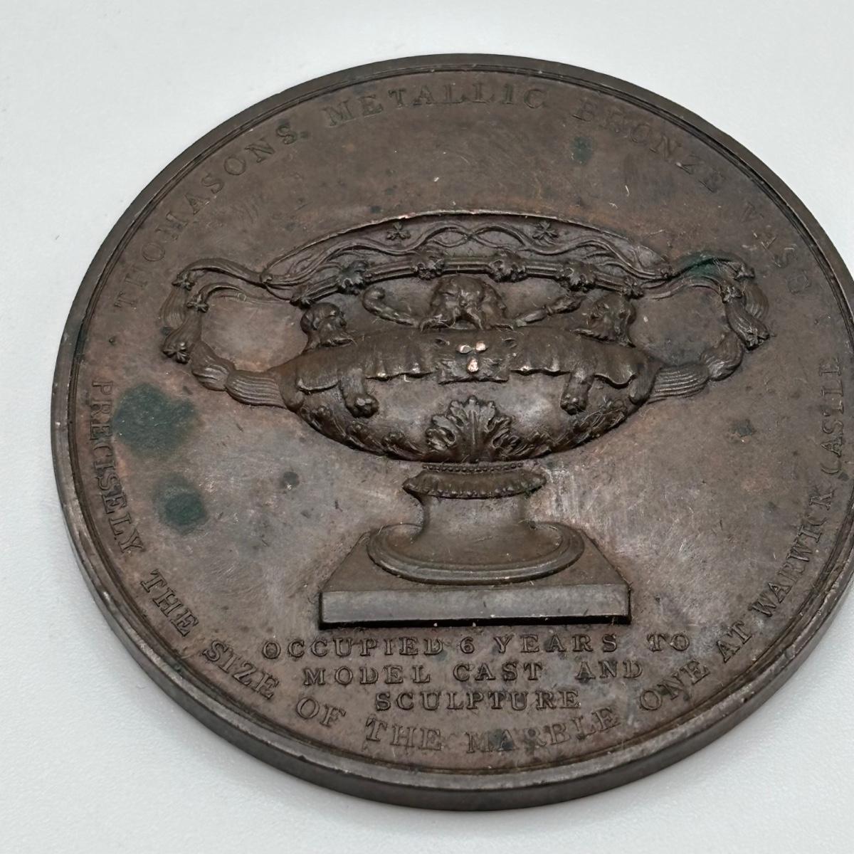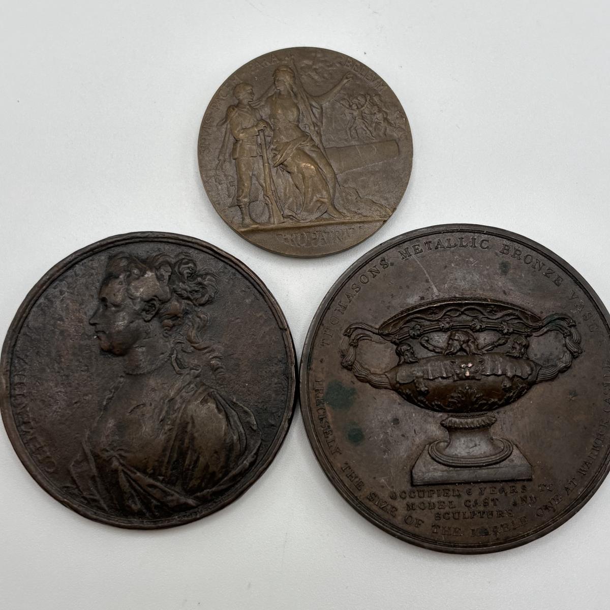LOT 108: Medal/Medallions: King George II, Peace, Sir Edward Tomasons Warwick Vase, French Military, Wellington Statue, Princess Charlotte of Wales, London Royal Naval Exhibition