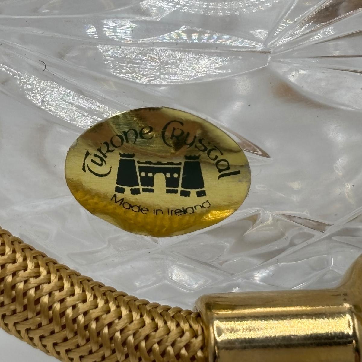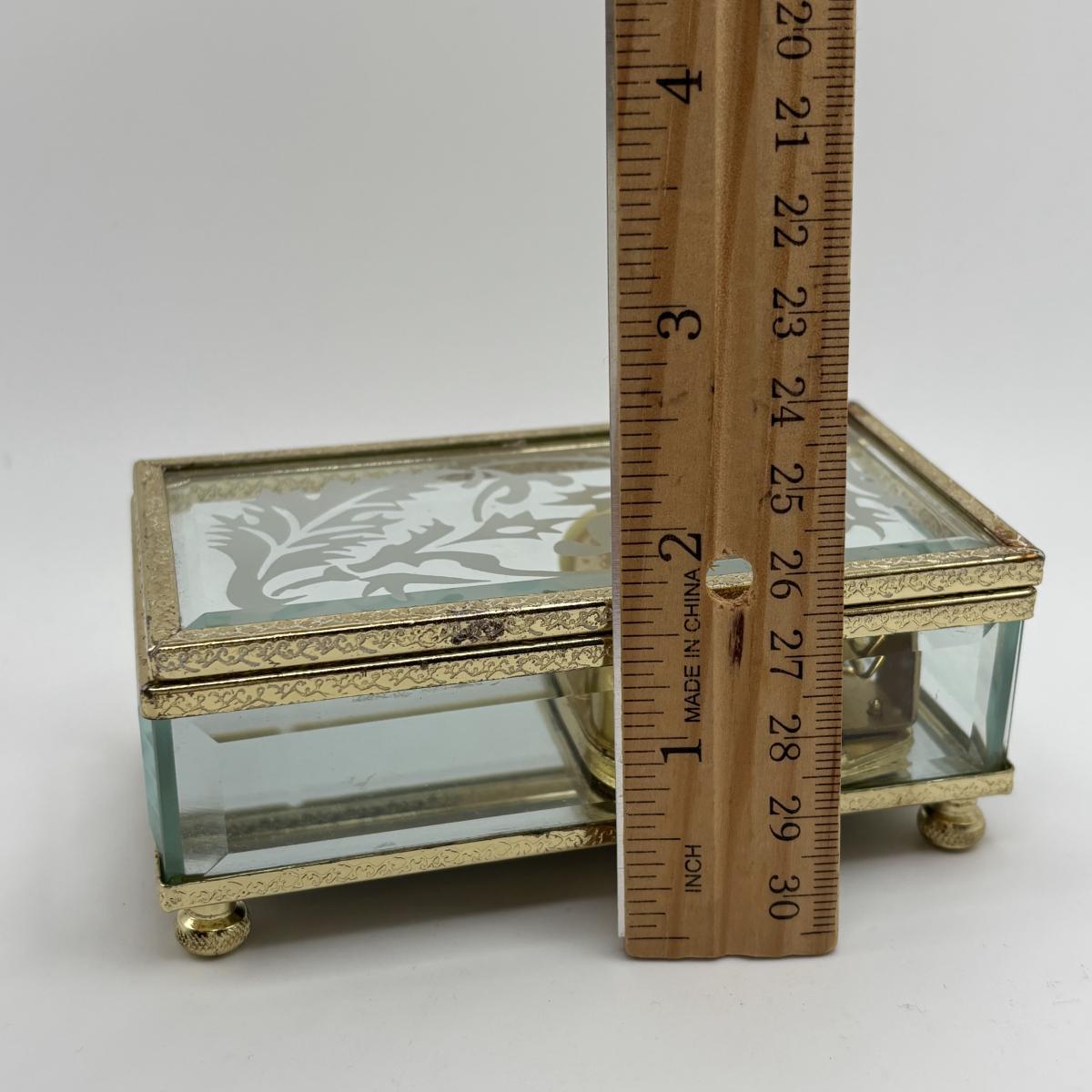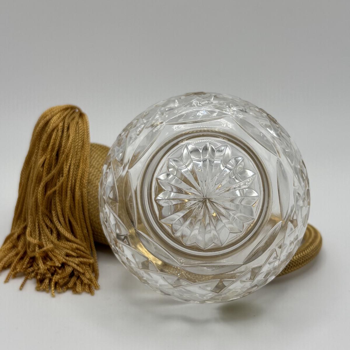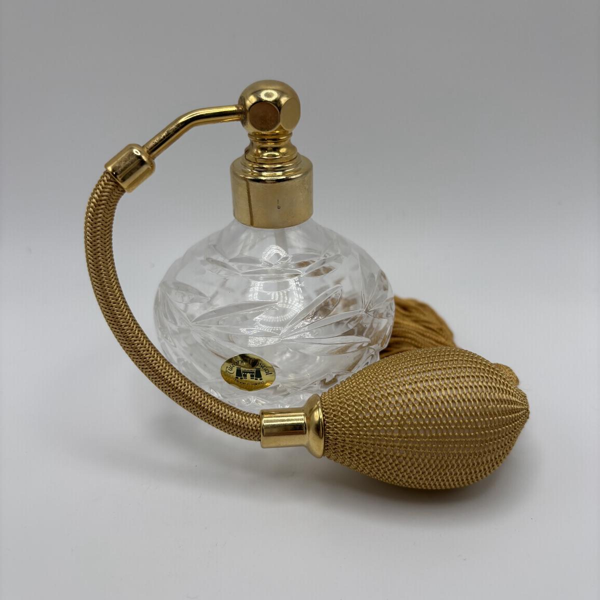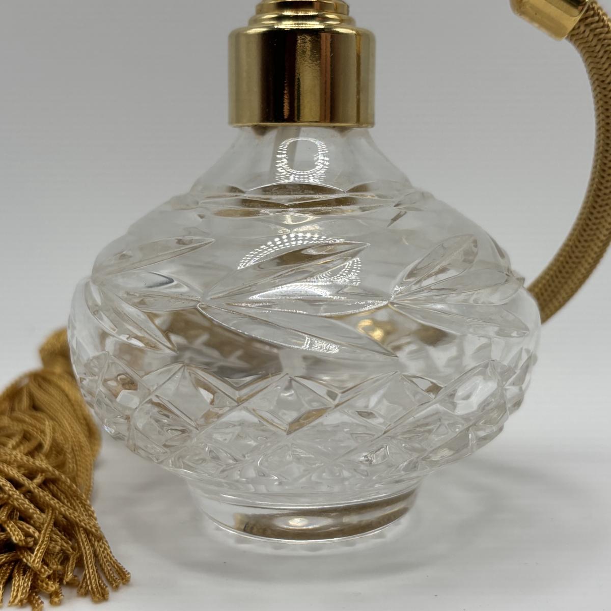 LOT 139: Lovely Ladies Dresser Collection: Vintage Tyrone Crystal Signed Cut Glass Tasseled Perfume Atomizer, Lenox Angel, Boxed Handkerchiefs, Music Box & Mirror