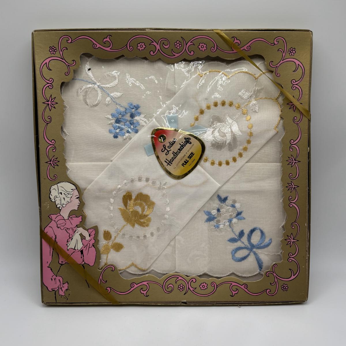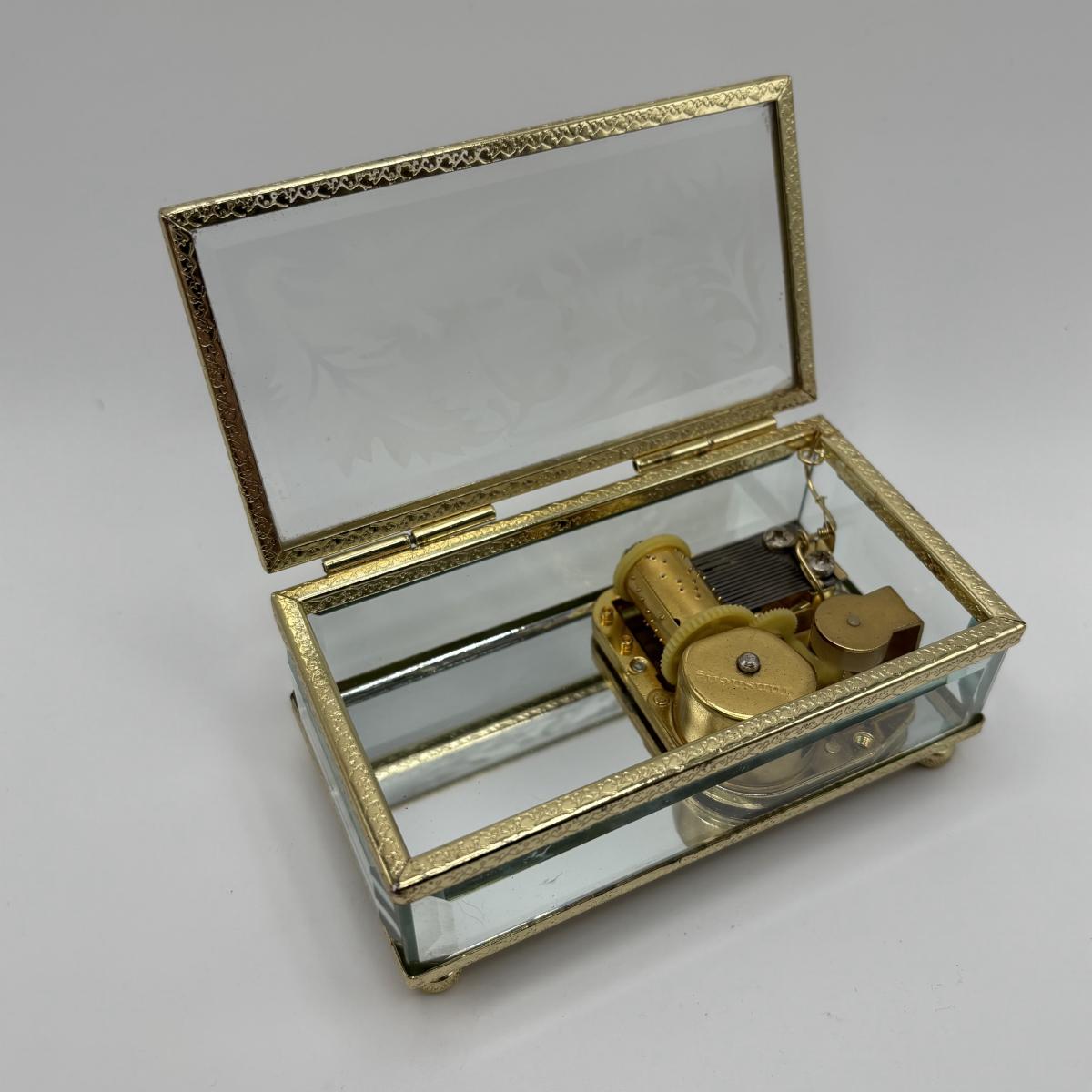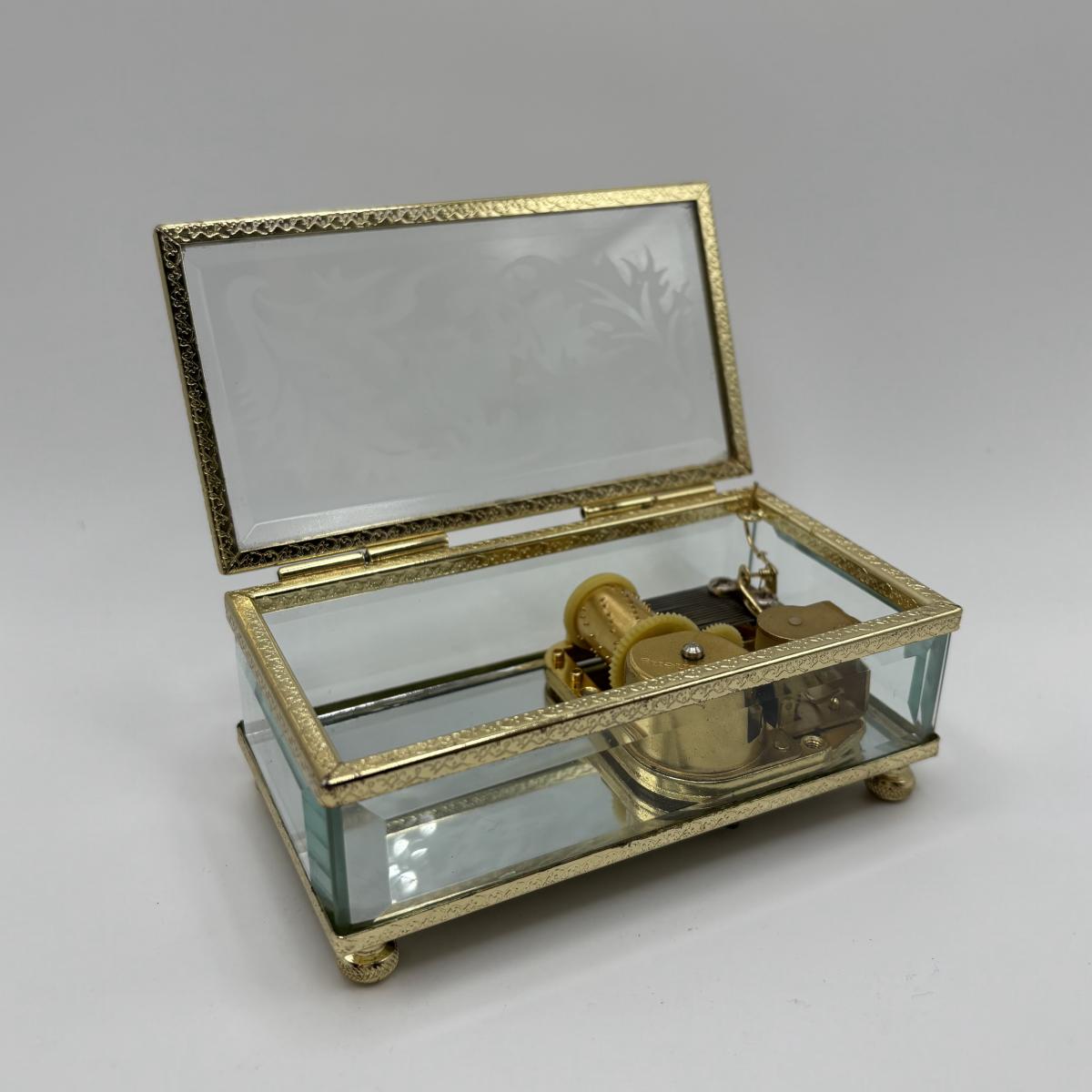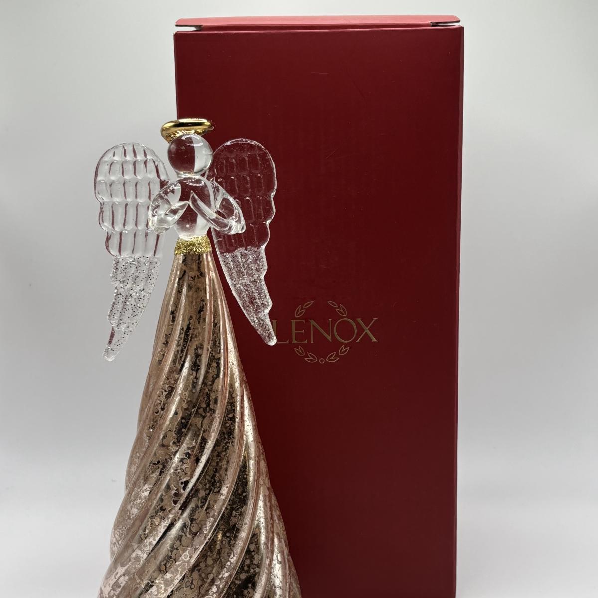 LOT 139: Lovely Ladies Dresser Collection: Vintage Tyrone Crystal Signed Cut Glass Tasseled Perfume Atomizer, Lenox Angel, Boxed Handkerchiefs, Music Box & Mirror