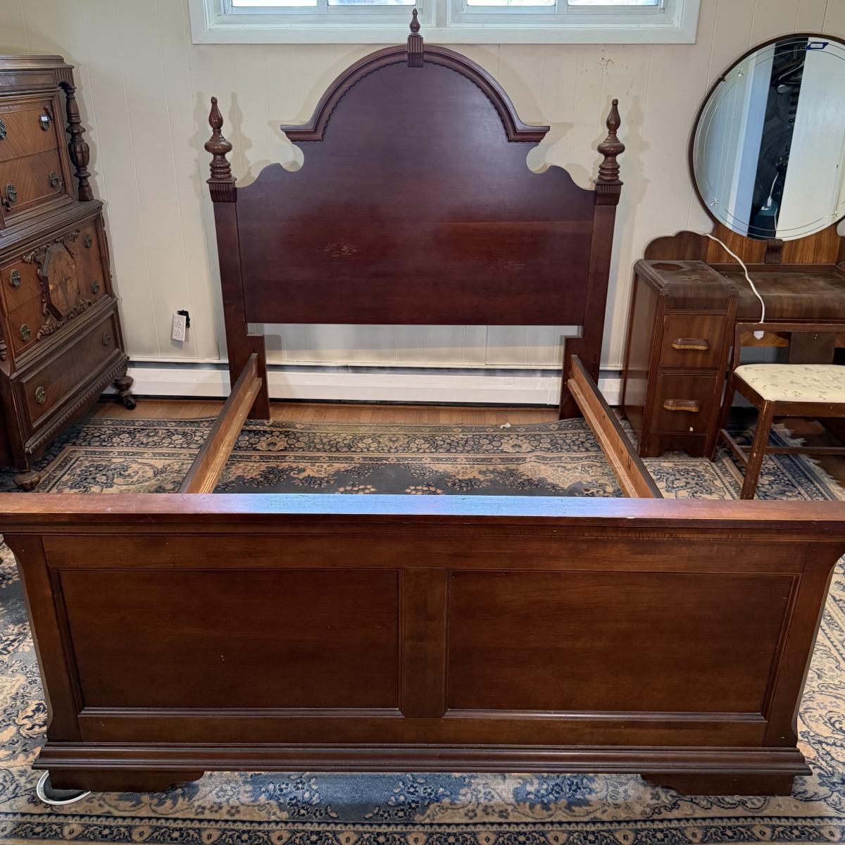 LOT 14X: Vintage Wooden Headboard, Footboard & Rails