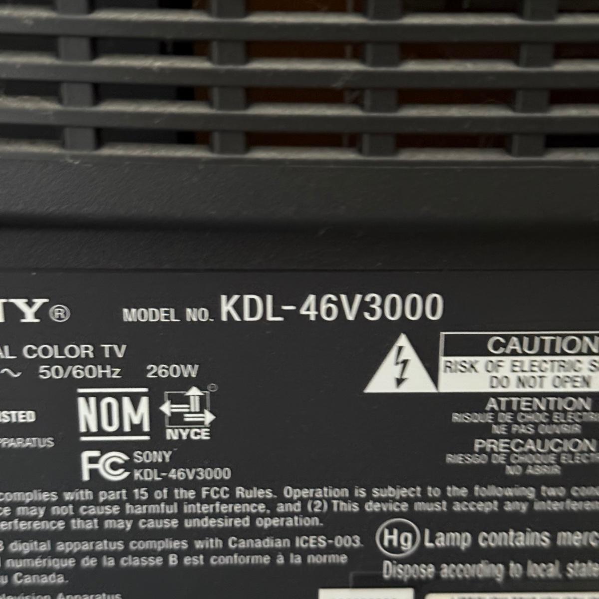 LOT 18Y: Sony Bravia TV Model KDL-46V3000