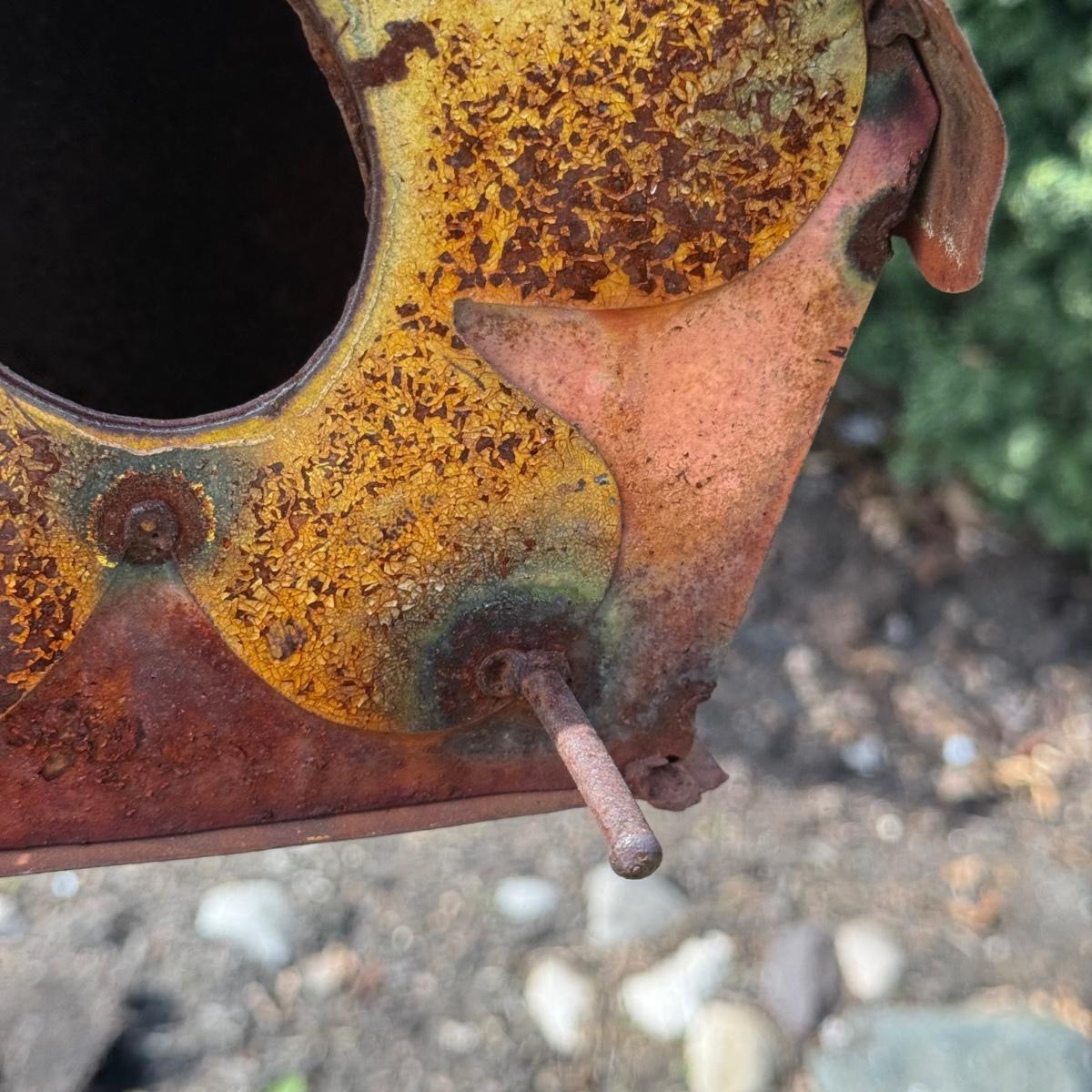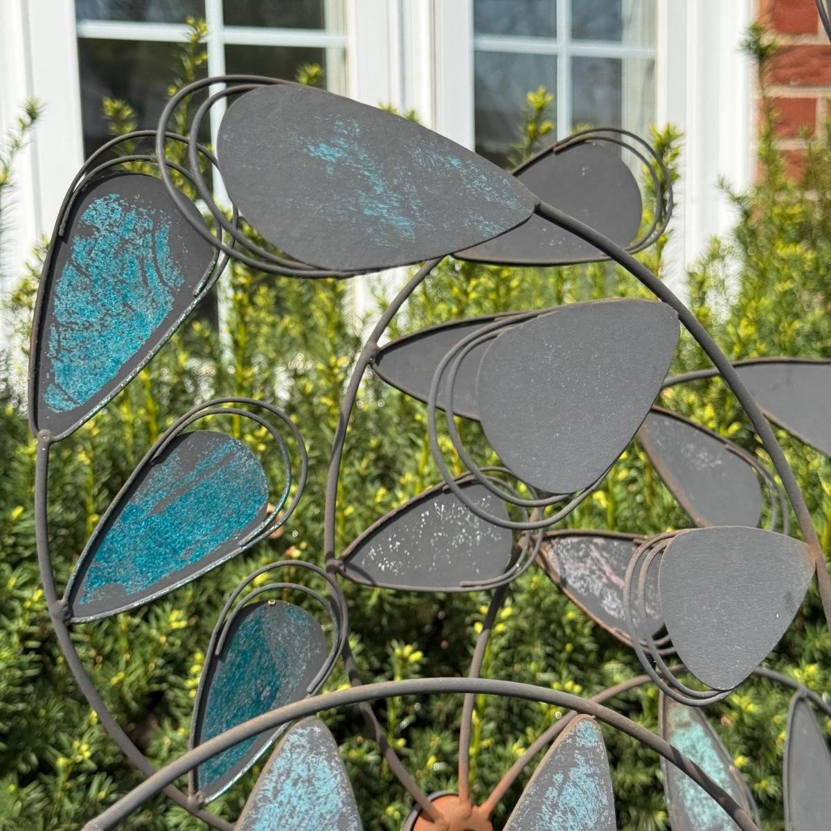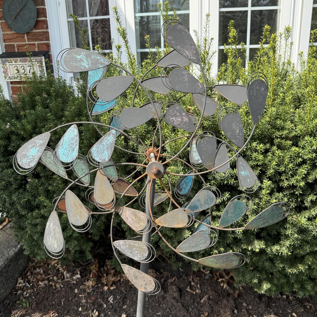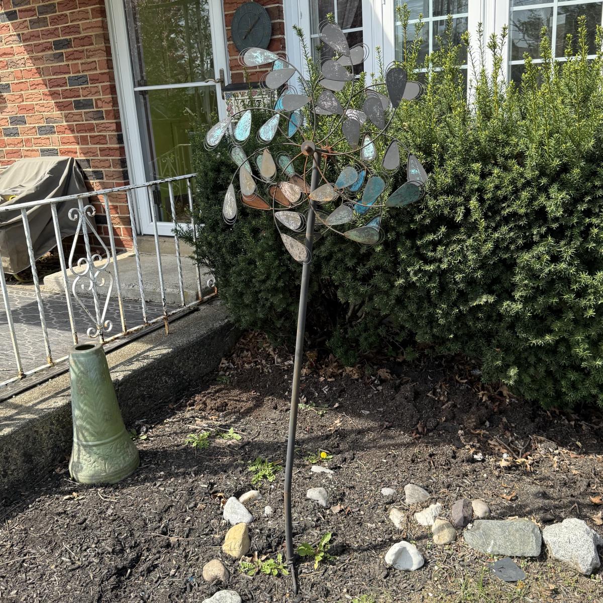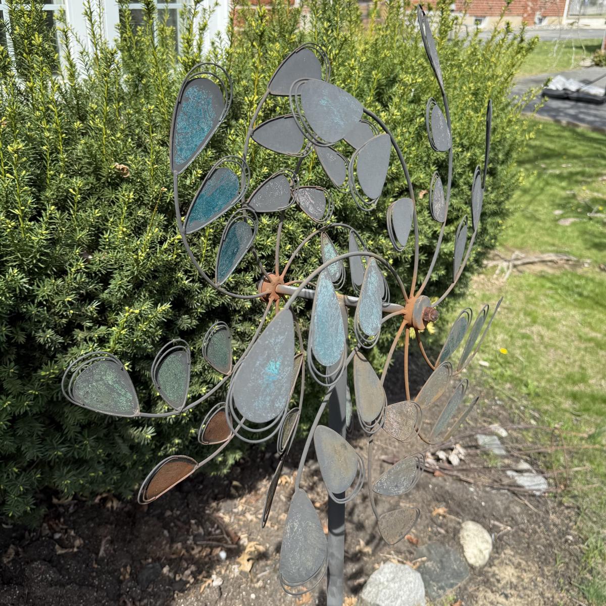 LOT 30: Garden Stake Metal Birdhouse w/ Shepherd's Hook, Wind Sculpture & Gazing Ball
