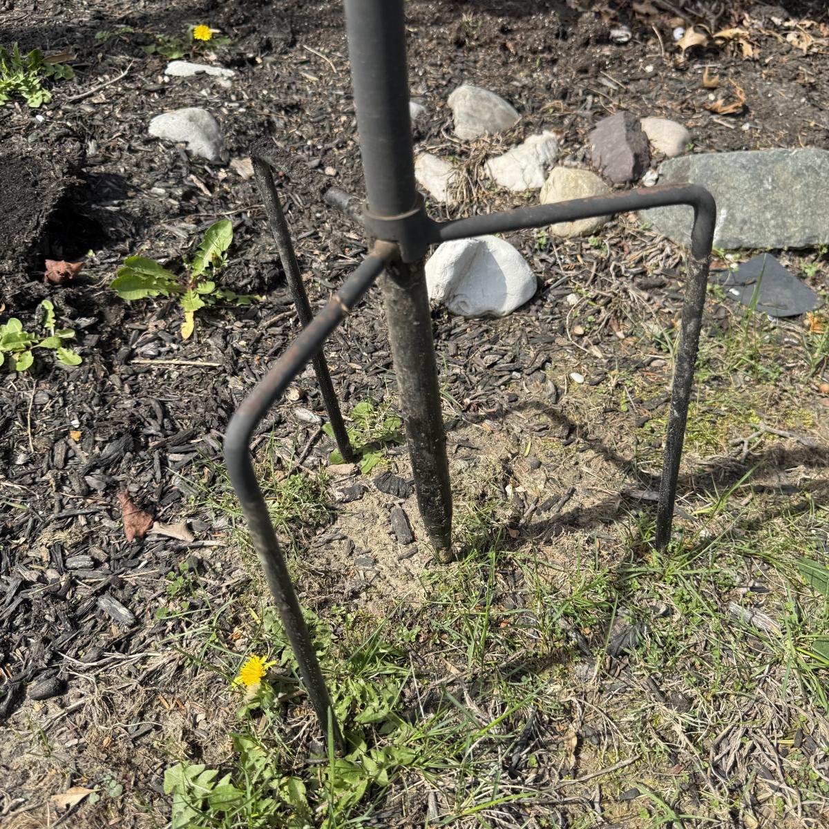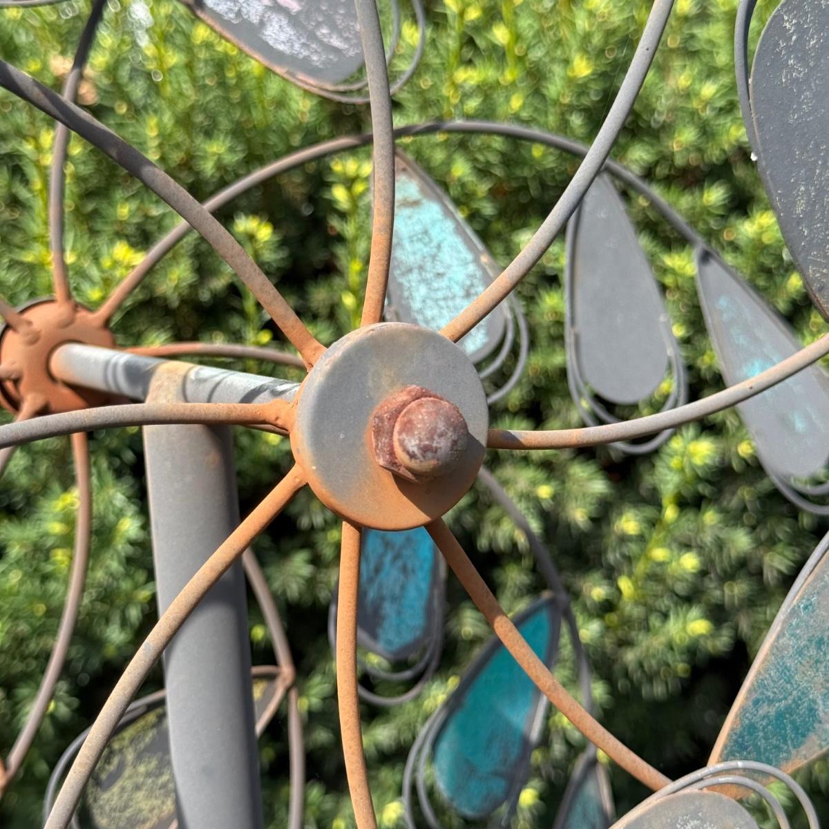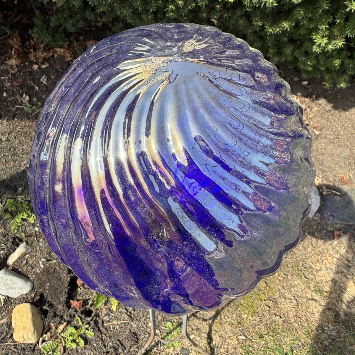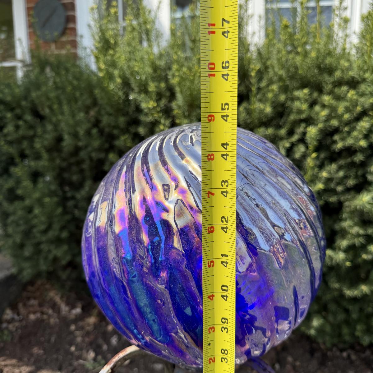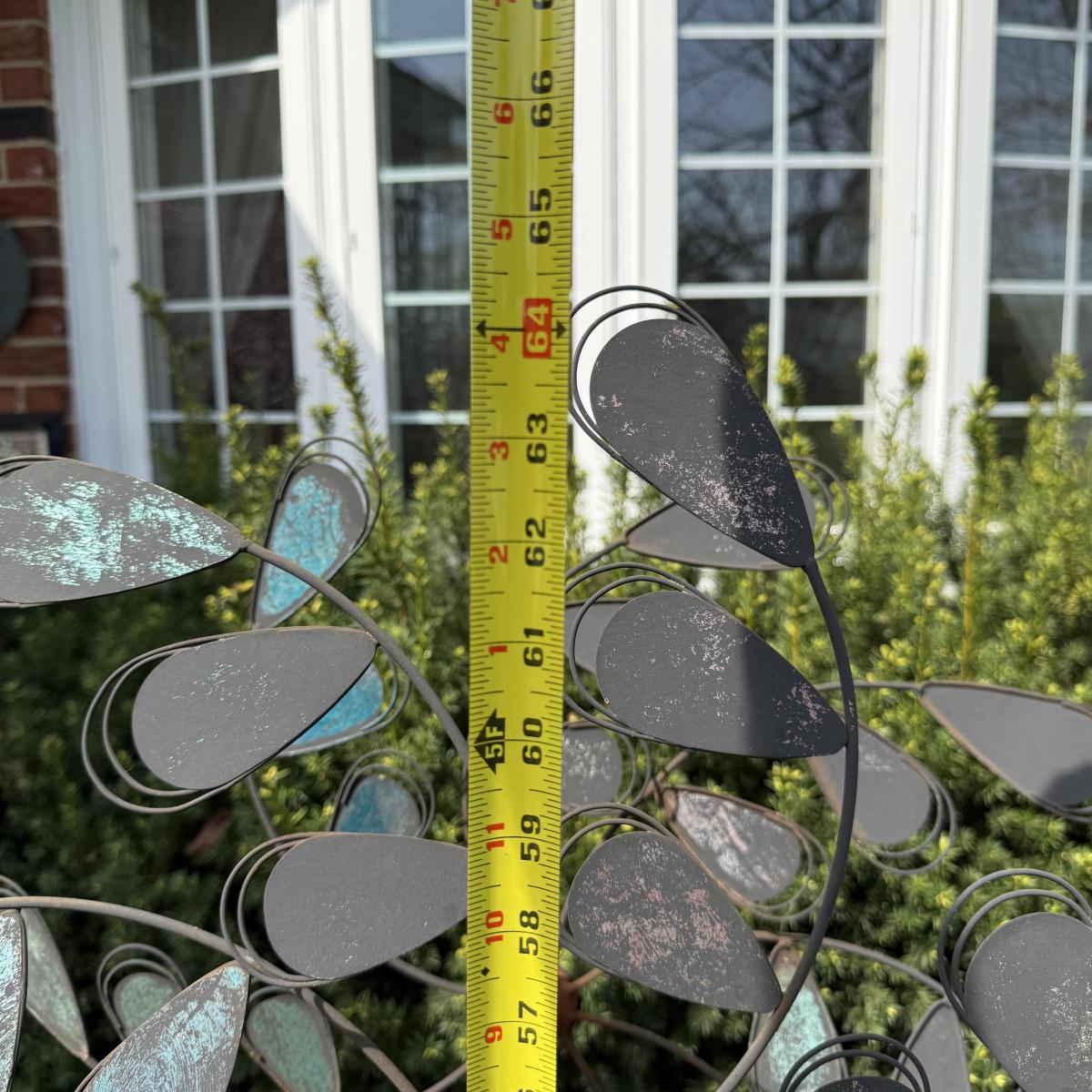 LOT 30: Garden Stake Metal Birdhouse w/ Shepherd's Hook, Wind Sculpture & Gazing Ball