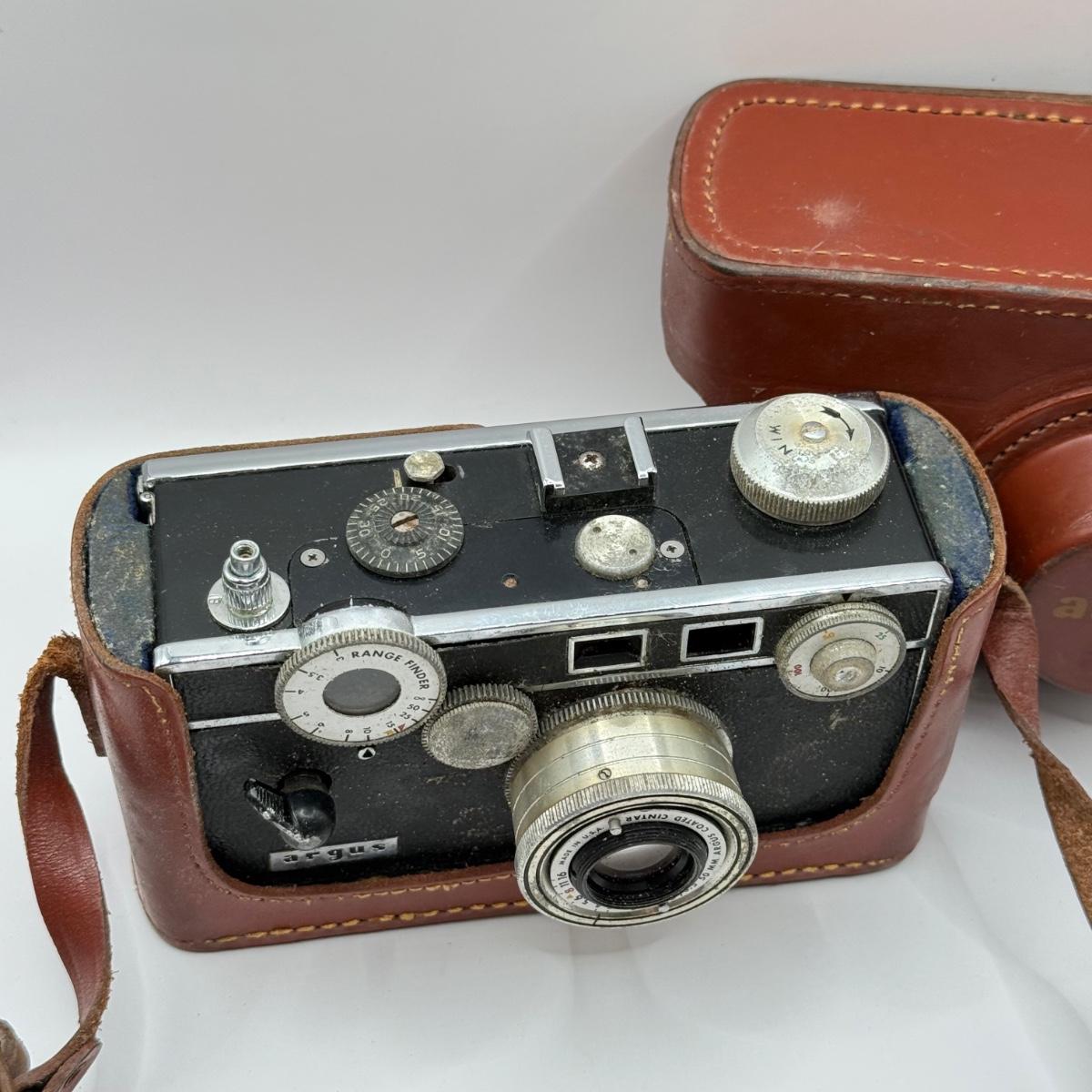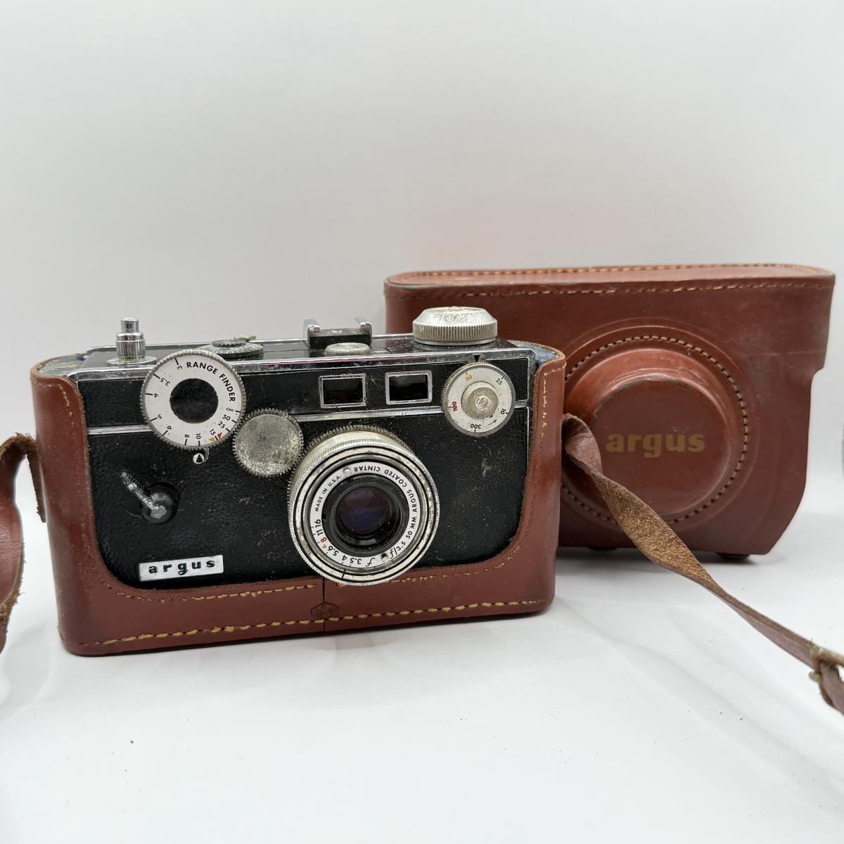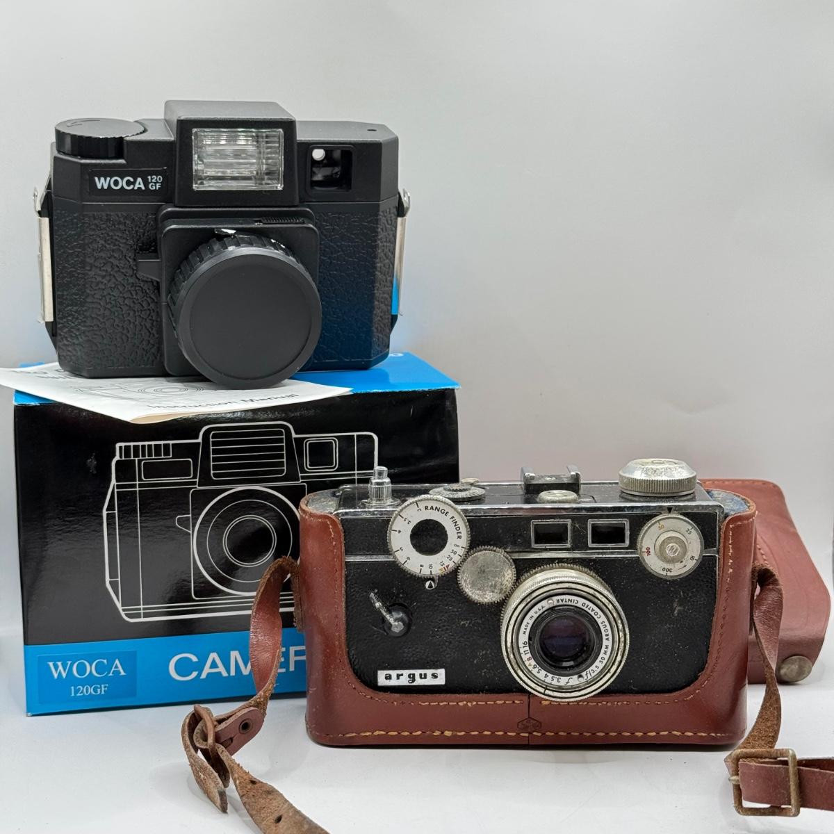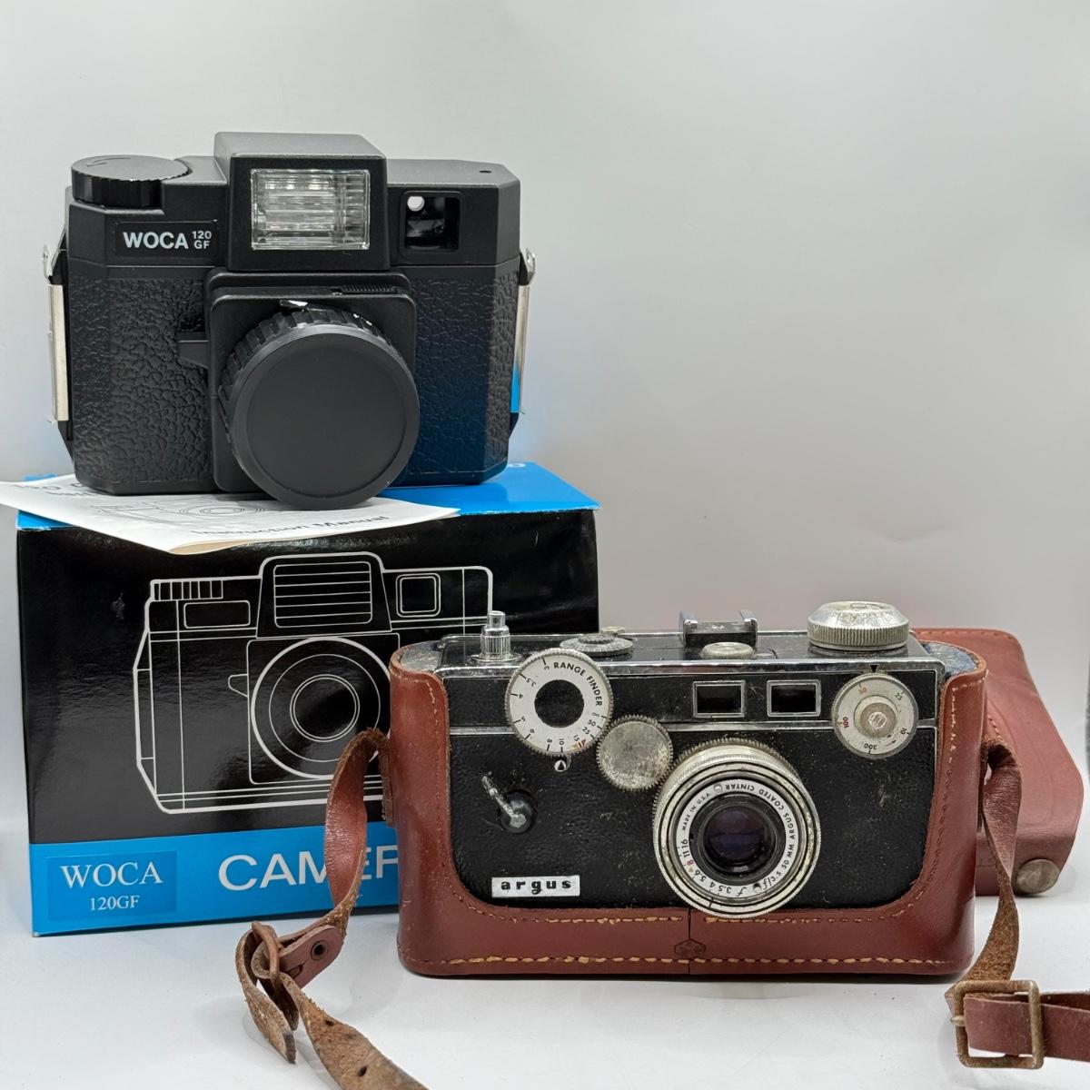 LOT 44K: Film Cameras: Argus Coated Cintar C3 Range Finder 35mm w/ Leather Case & Woca 120 GF w/ Box