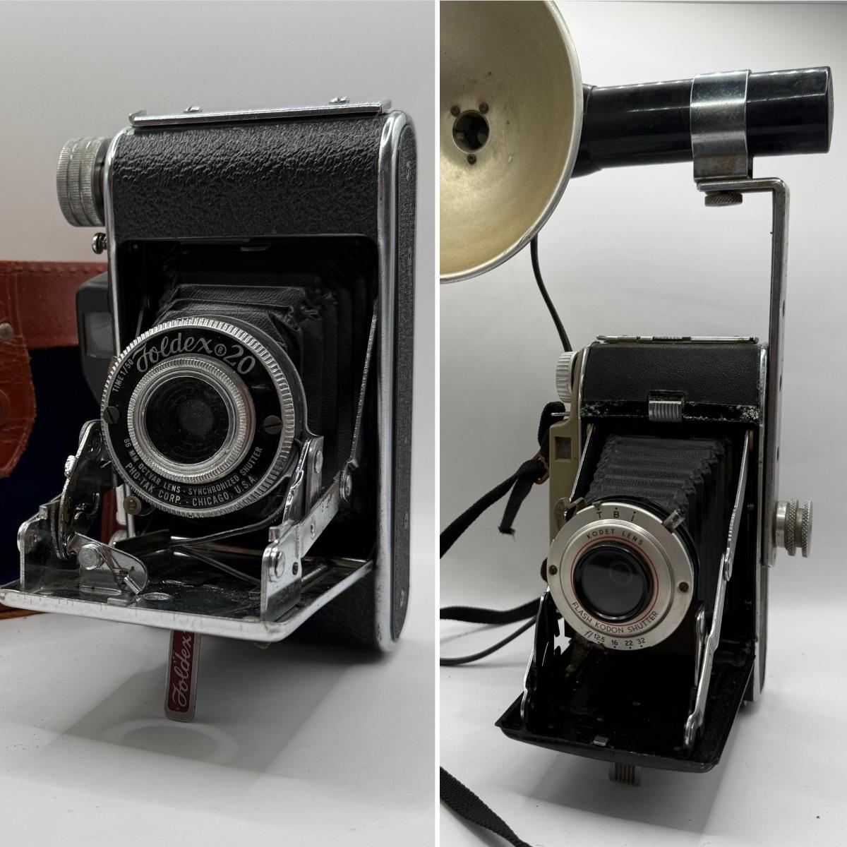 LOT 47K: Vintage Folding Cameras: Pho-tak Foldex 20 & Kodak Tourist II Camera