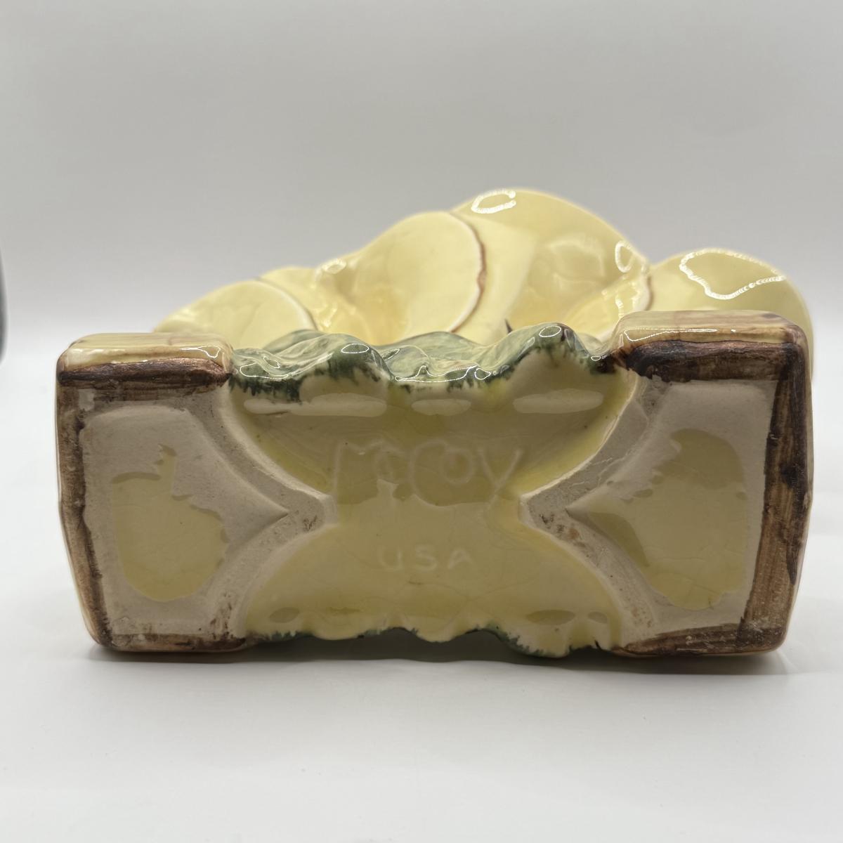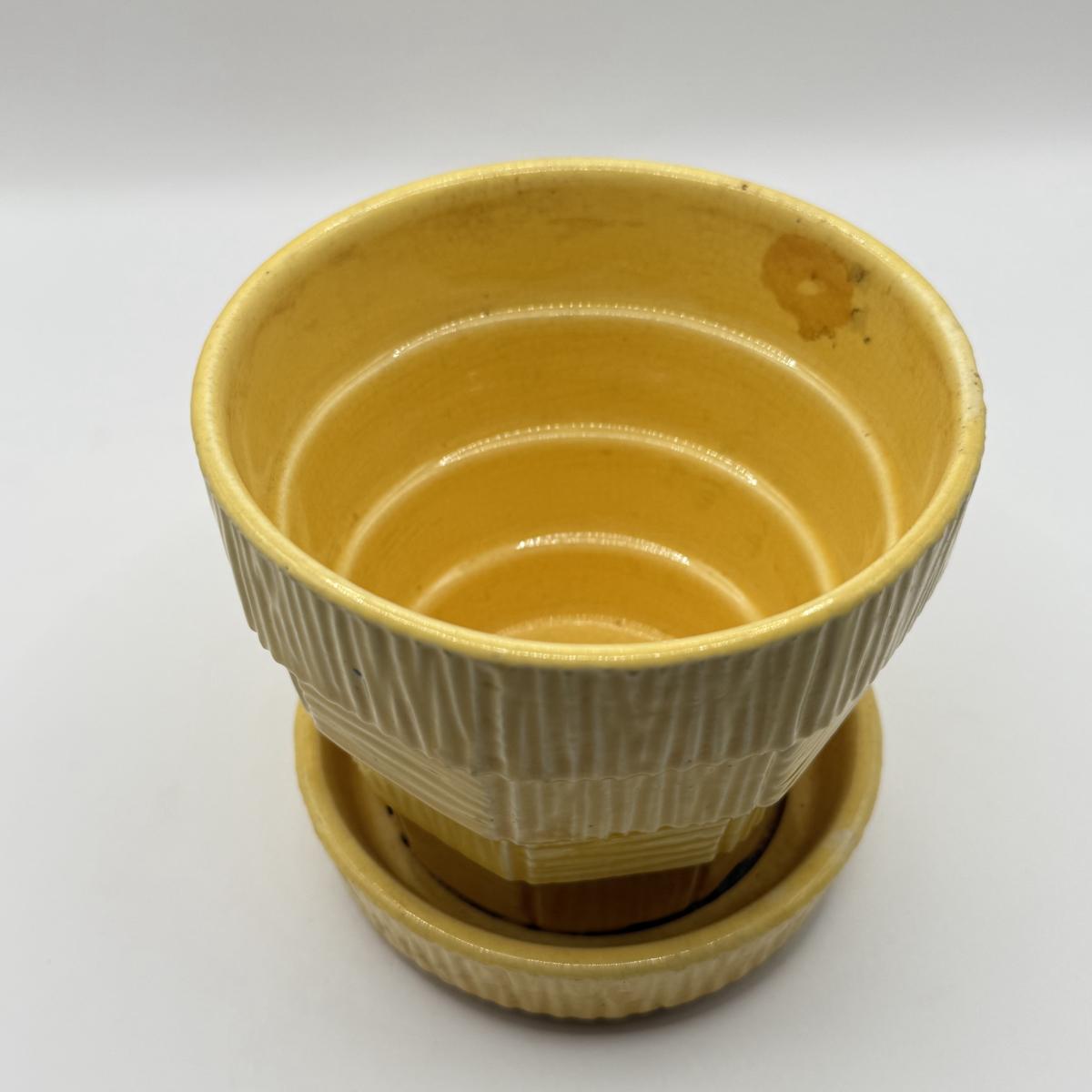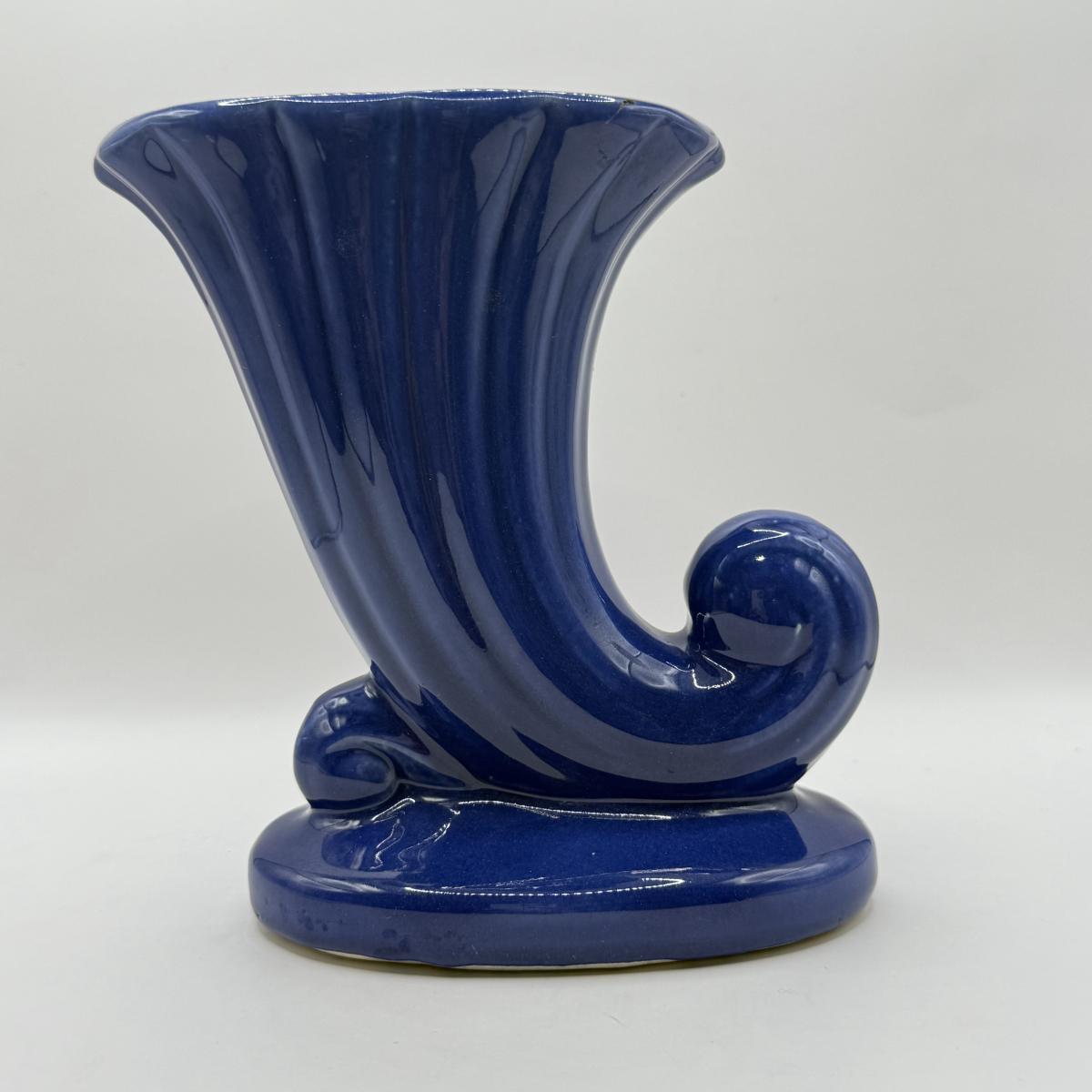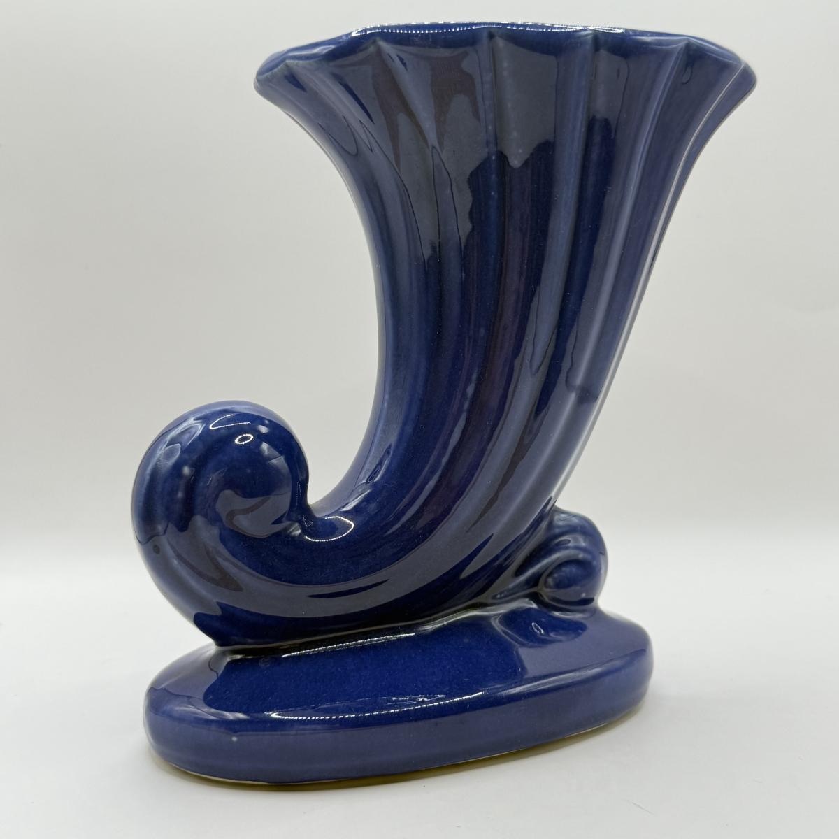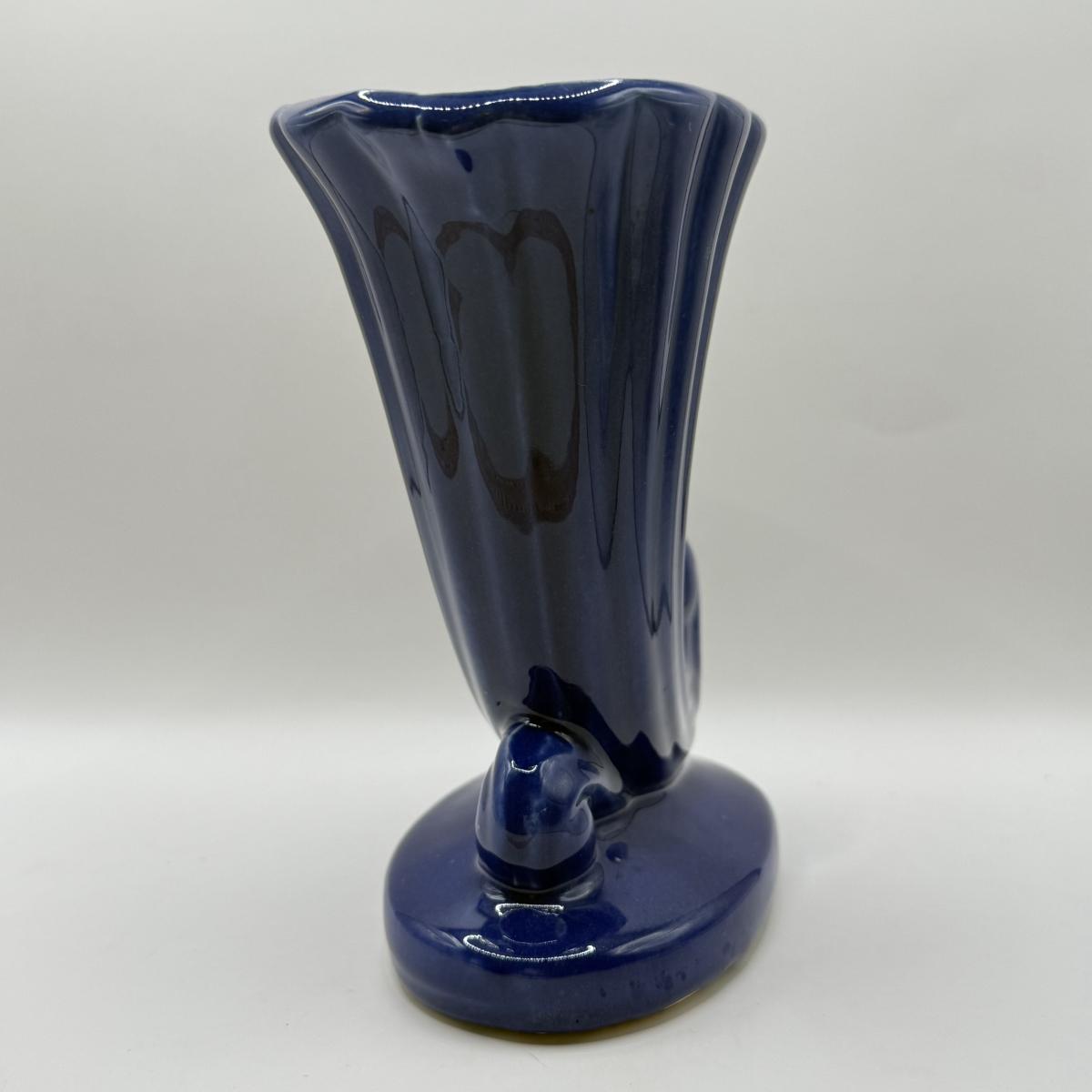 LOT 50K: Collection of Colorful Pottery: 1960s McCoy USA Triple Lily Vase, USA Pottery Cobalt Art Nouveau Vase, McCoy Yellow Pot& Wall Mounted Light Blue Bird Vase