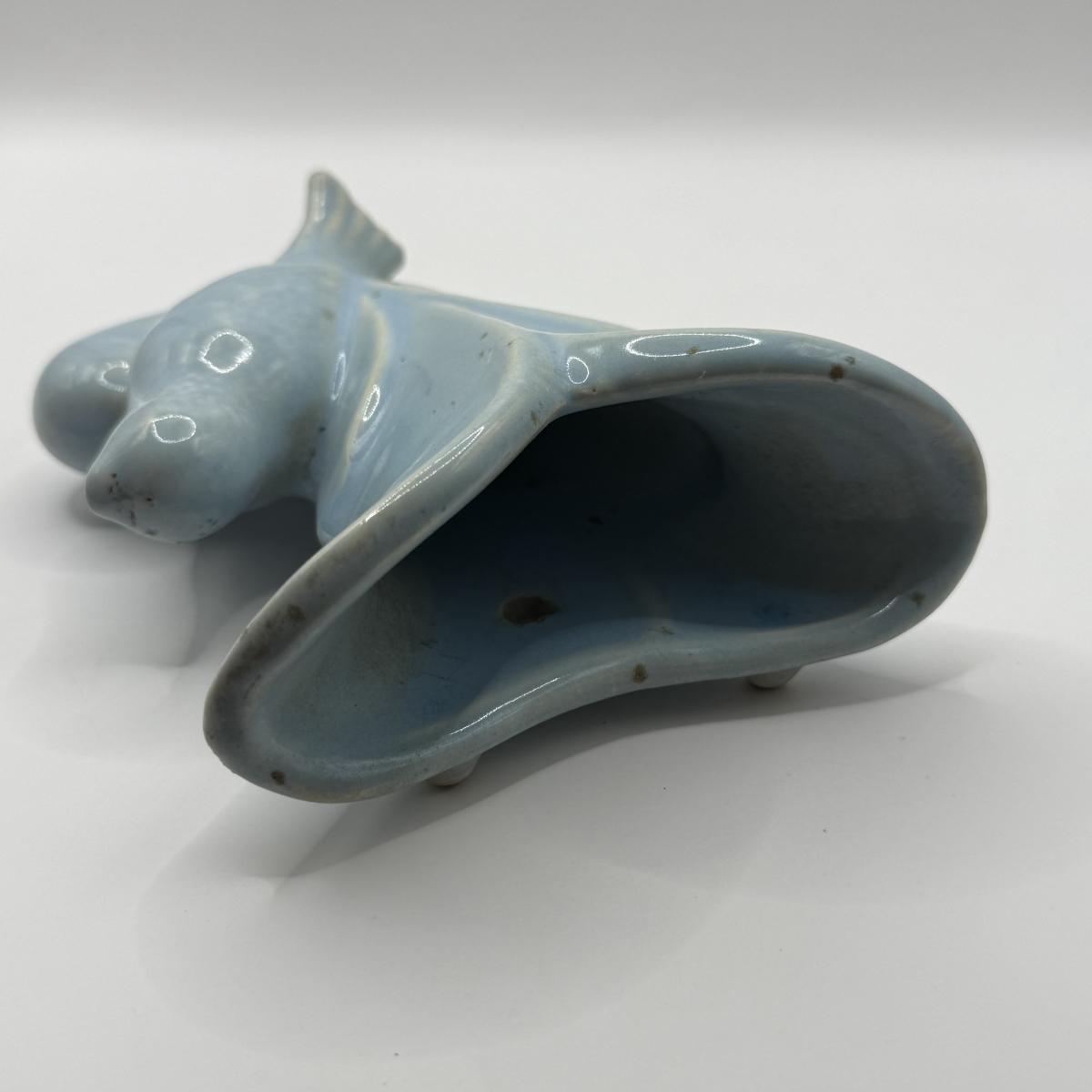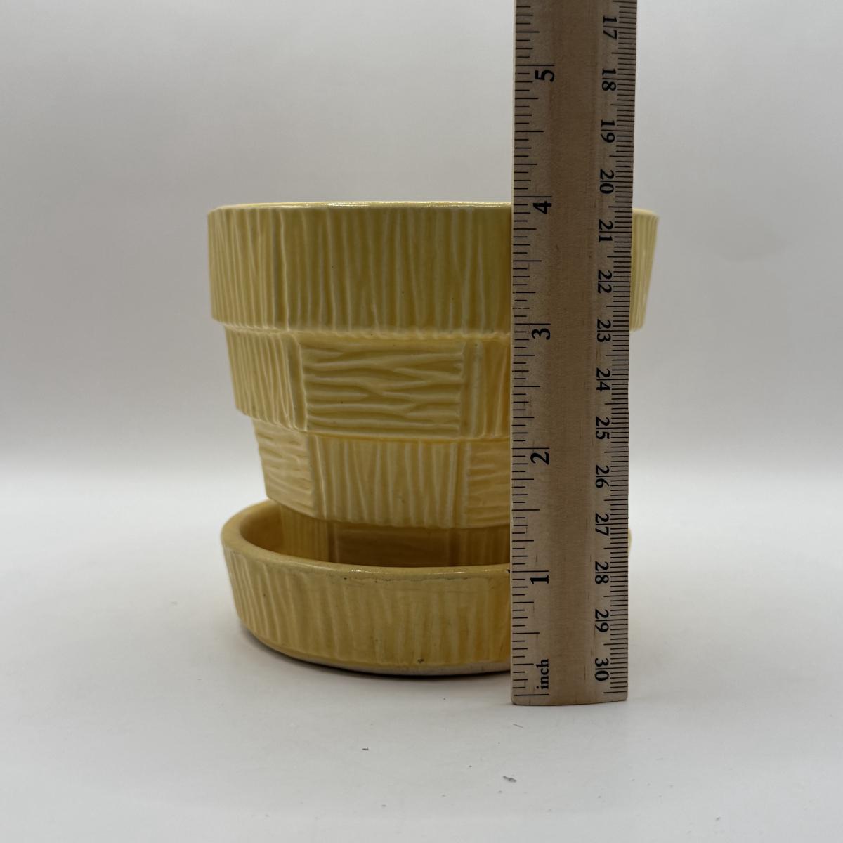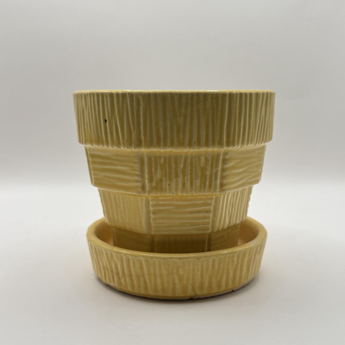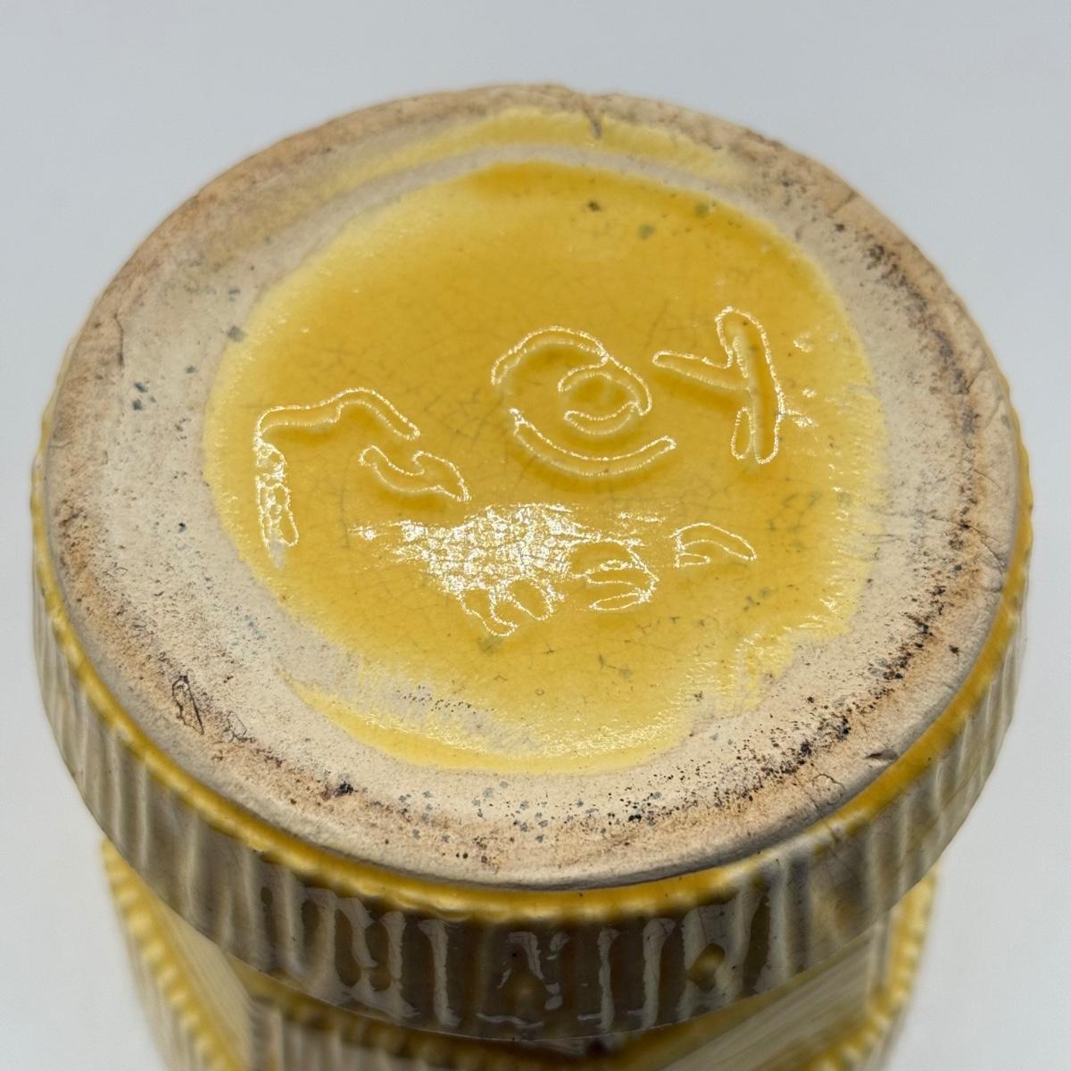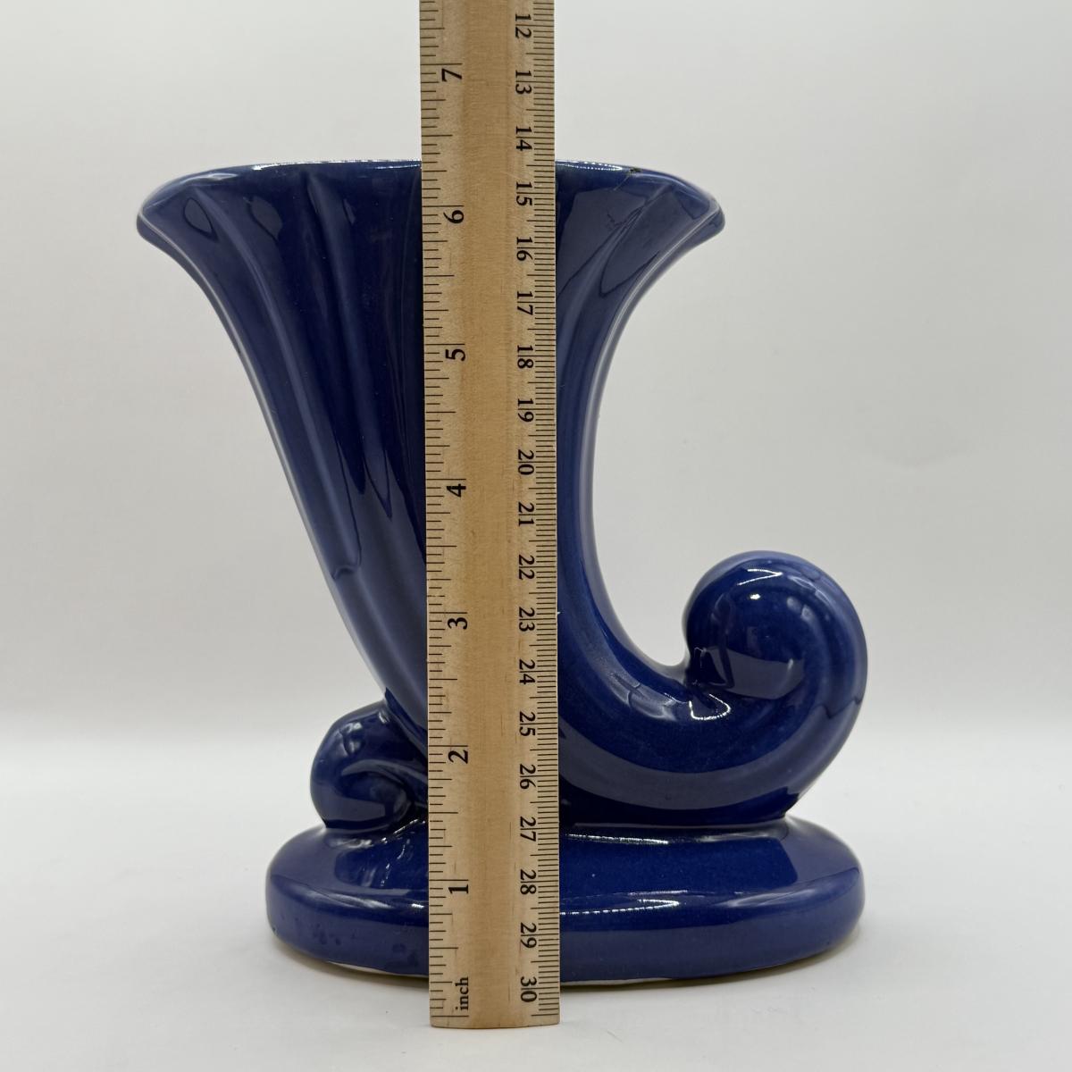 LOT 50K: Collection of Colorful Pottery: 1960s McCoy USA Triple Lily Vase, USA Pottery Cobalt Art Nouveau Vase, McCoy Yellow Pot& Wall Mounted Light Blue Bird Vase