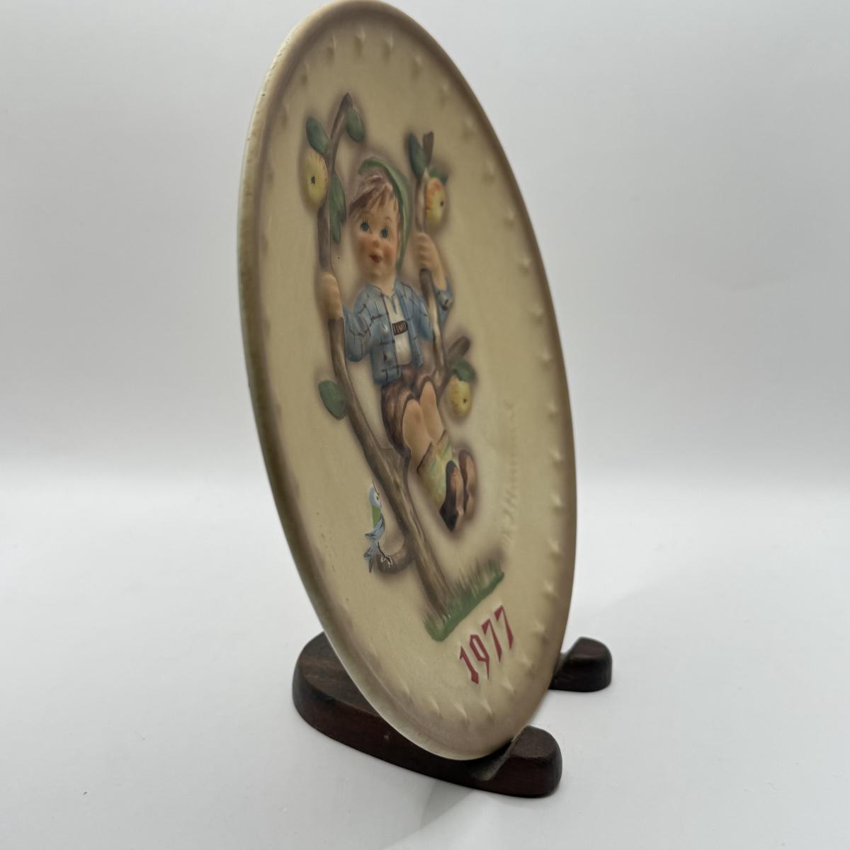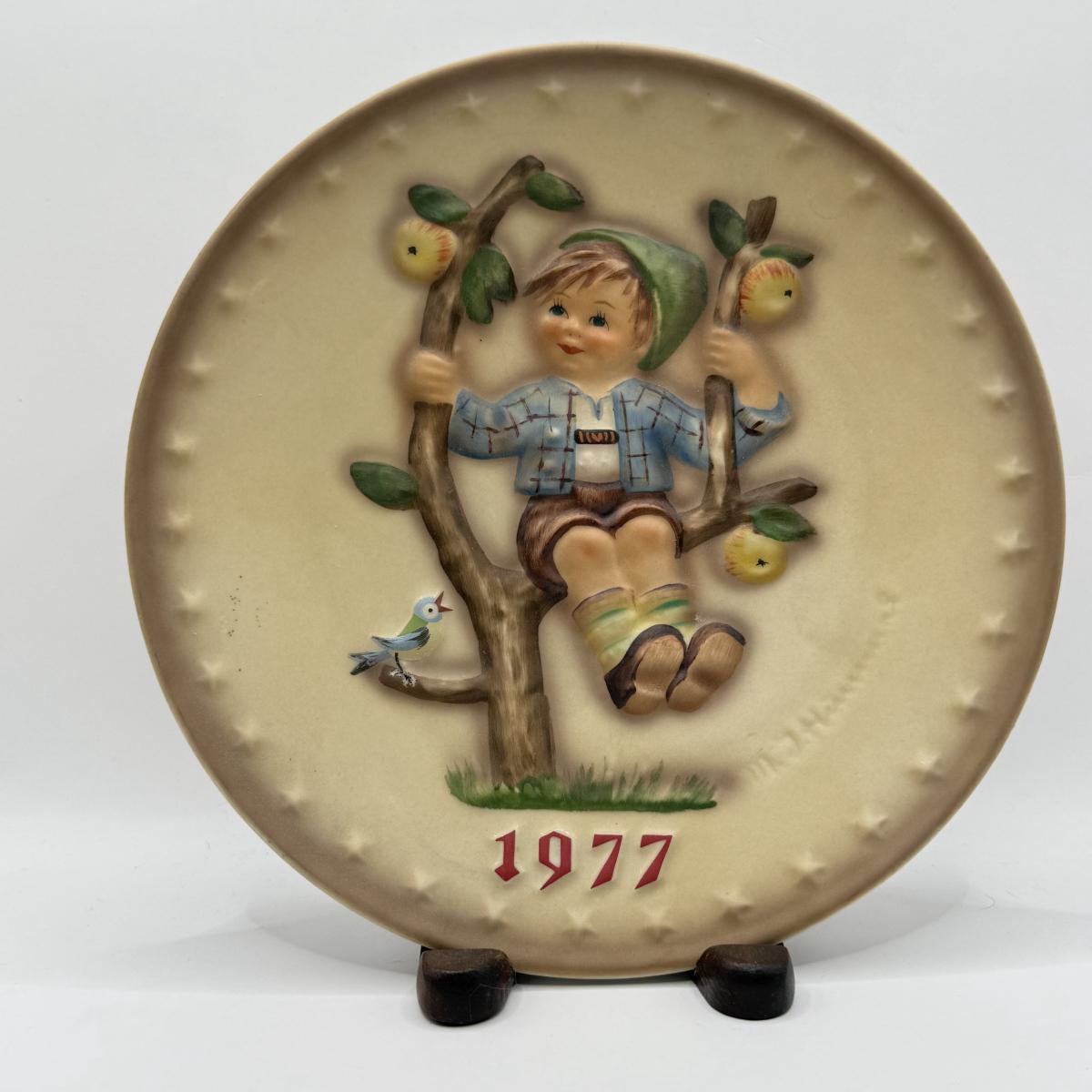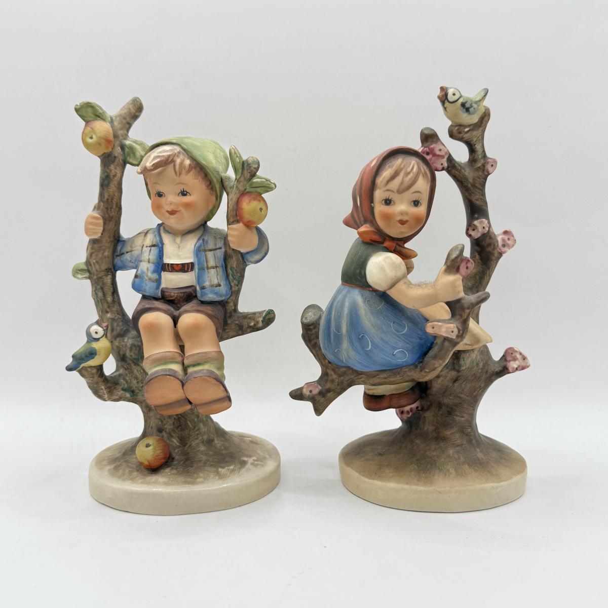 LOT 60K: Vintage Goebel M.I. Hummel Collection: Apple Girl and Apple Boy Figurines w/ 1977 Apple Boy Decorative Plate