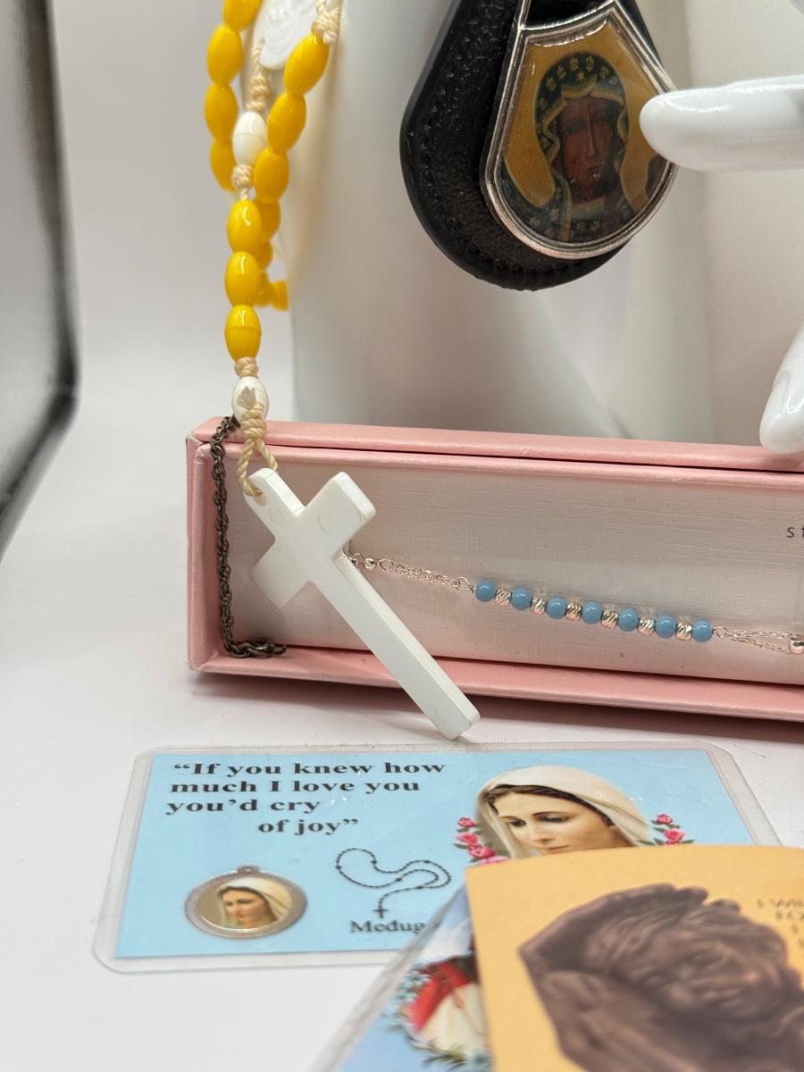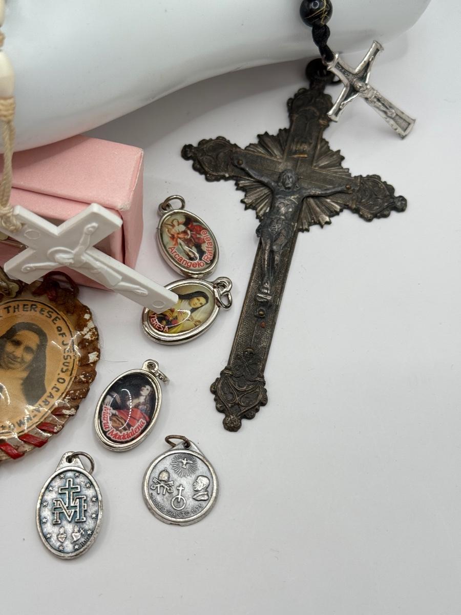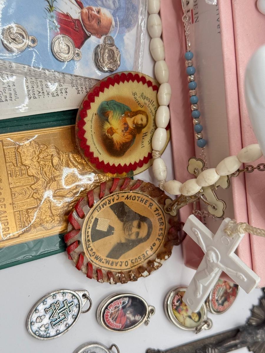 LOT 62J: 925 Italy Sterling Silver Mary Bracelet & Collection of Religious Charms, Rosaries & More