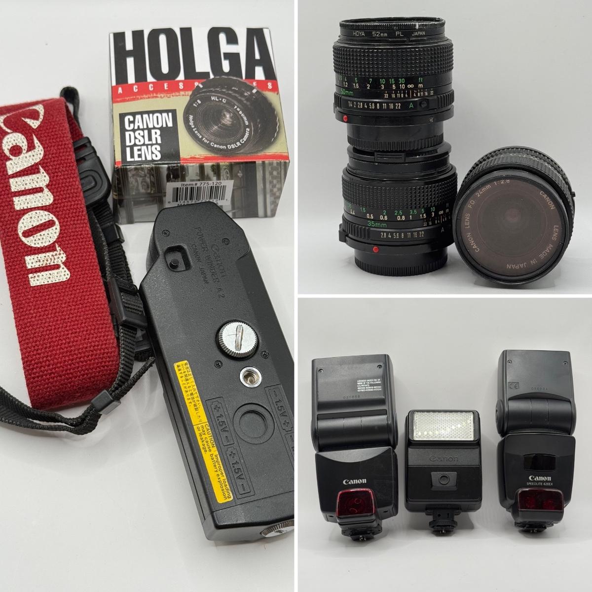 LOT 65K: Vintage & Modern Canon Collection: 24mm f/2.8 Lens, 50mm f/1.4 Lens, 35mm f/2.8 Lens, Power Winder A2, Speedlite Flashes: 420ex, 380ex & 177A