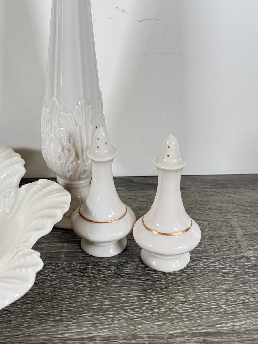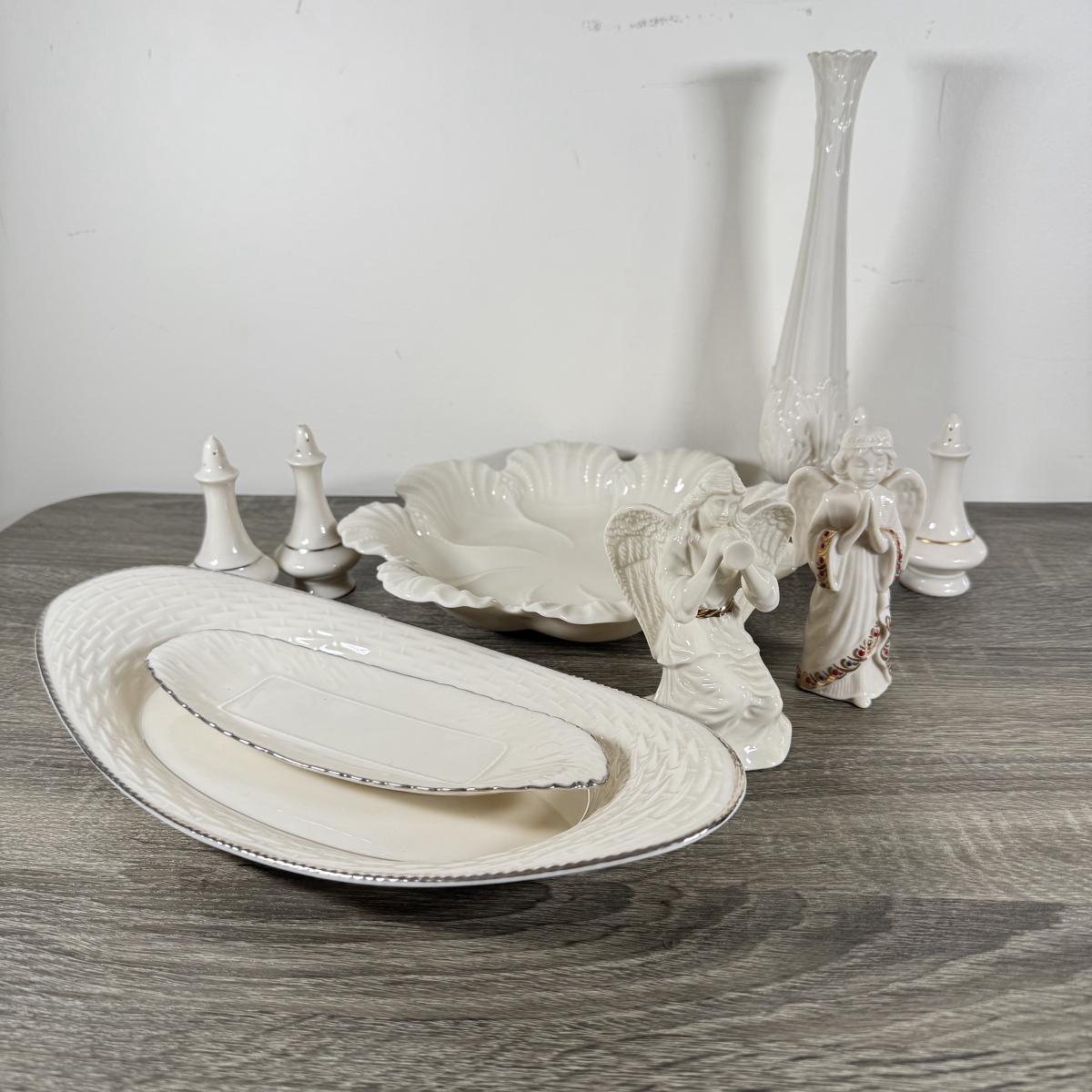 LOT 69K: Lenox Collection: China Jewels Angel, Trumpeting Angel, Woodland Bowl & Vase, Salt and Pepper Shaker Sets & More