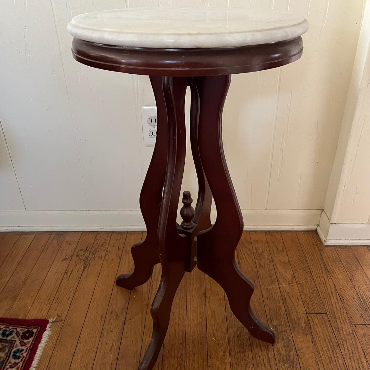 LOT 88L: Marble Top Vintage Wooden Side Table